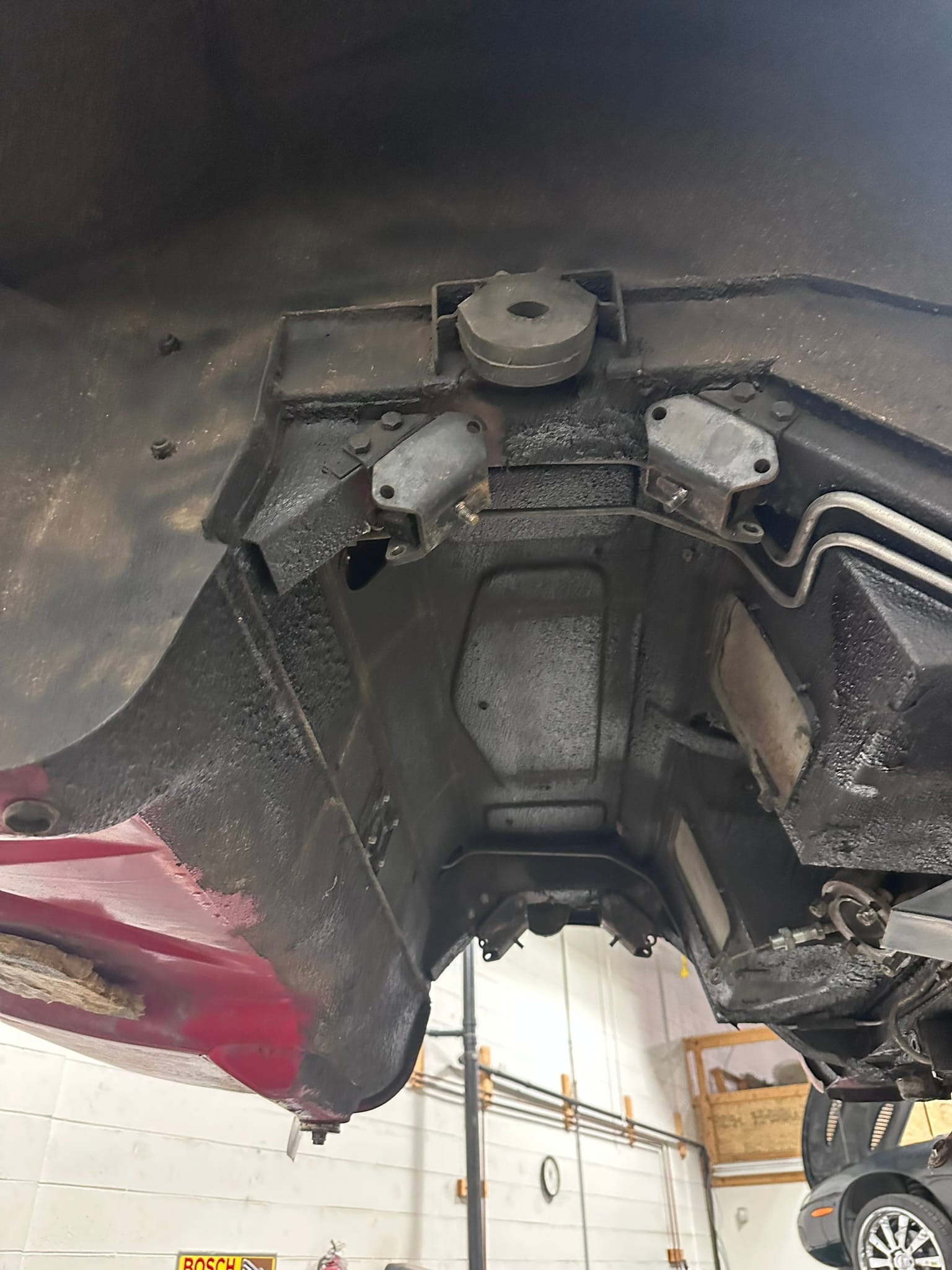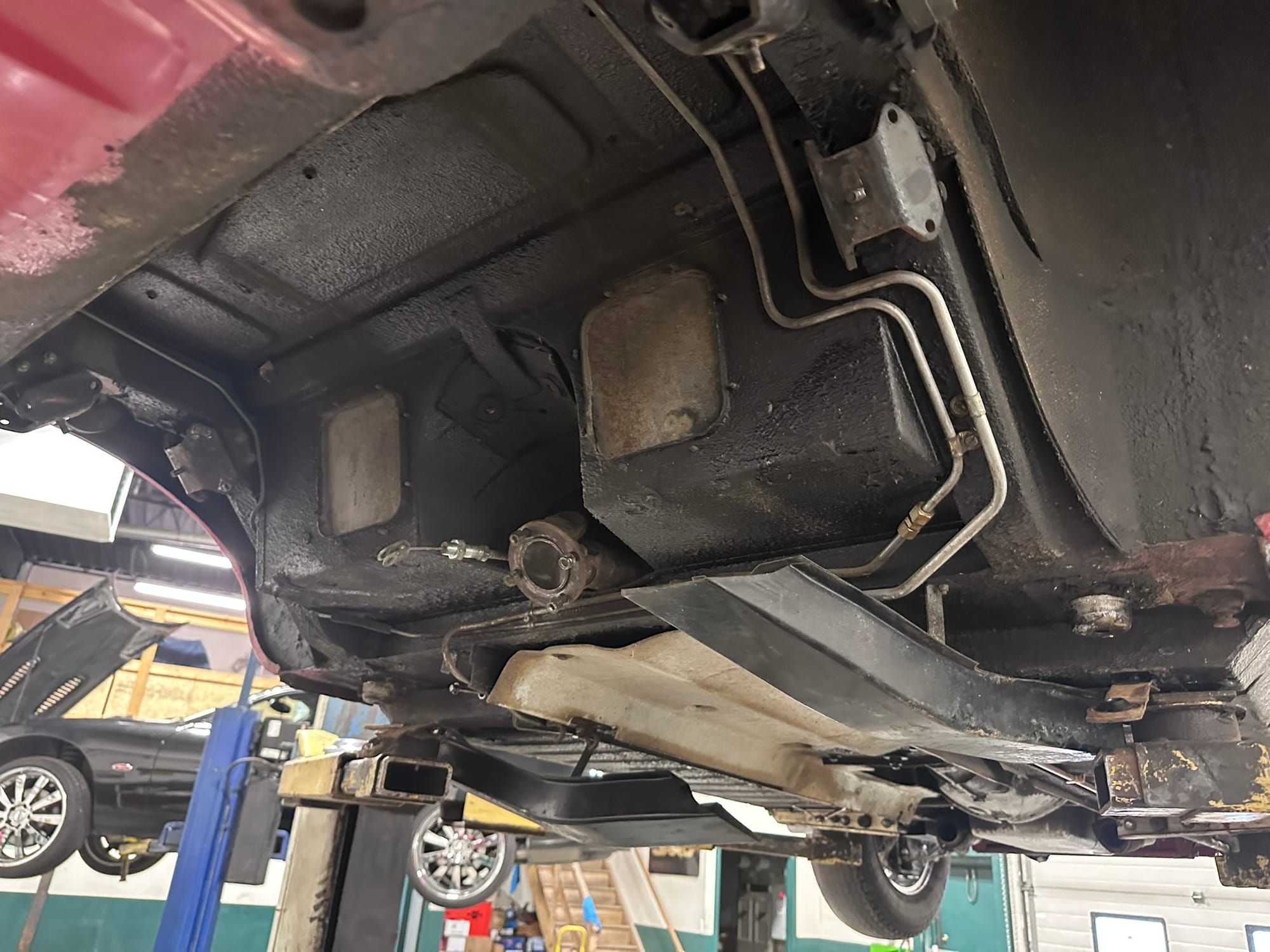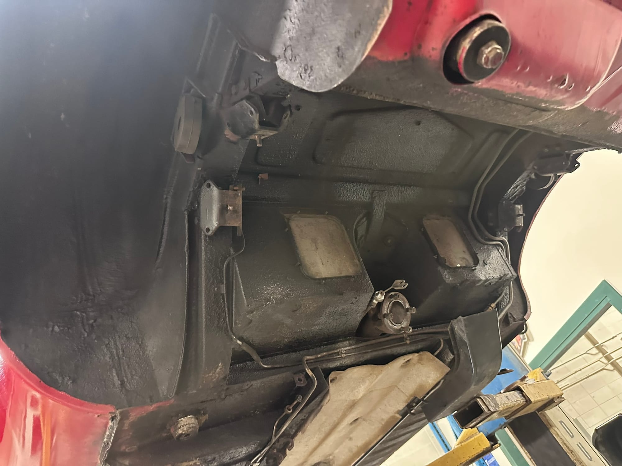 The fuel tank was dropped and send out for boiling and re-coating to Calgary Radiator. The Brakes callipers were rebuilt/replaced as necessary along with the master cylinder and brake lines. Front ball joints, tie rod ends and bushes were replaced. The IRS rear end was dropped and re-bushed.