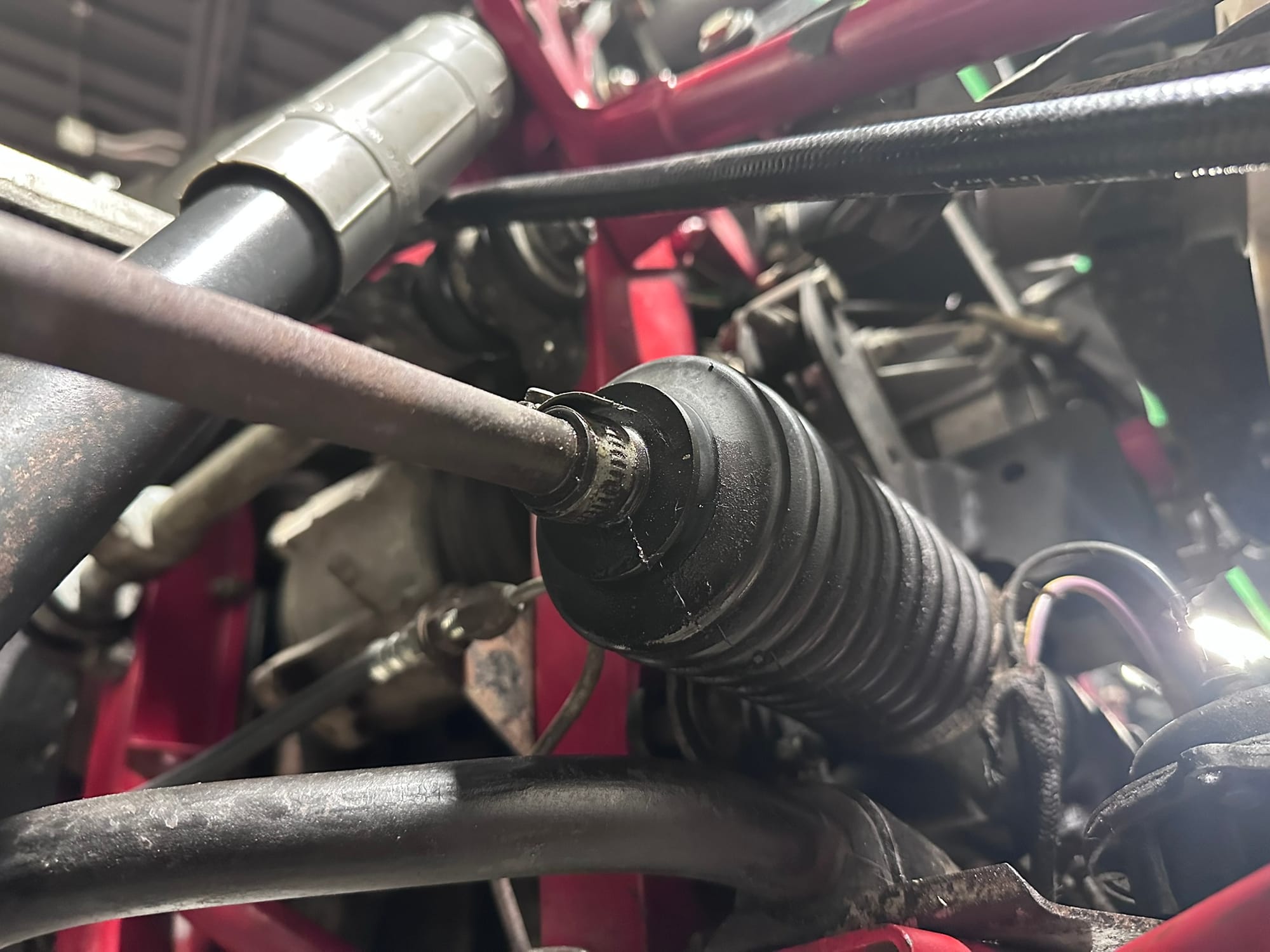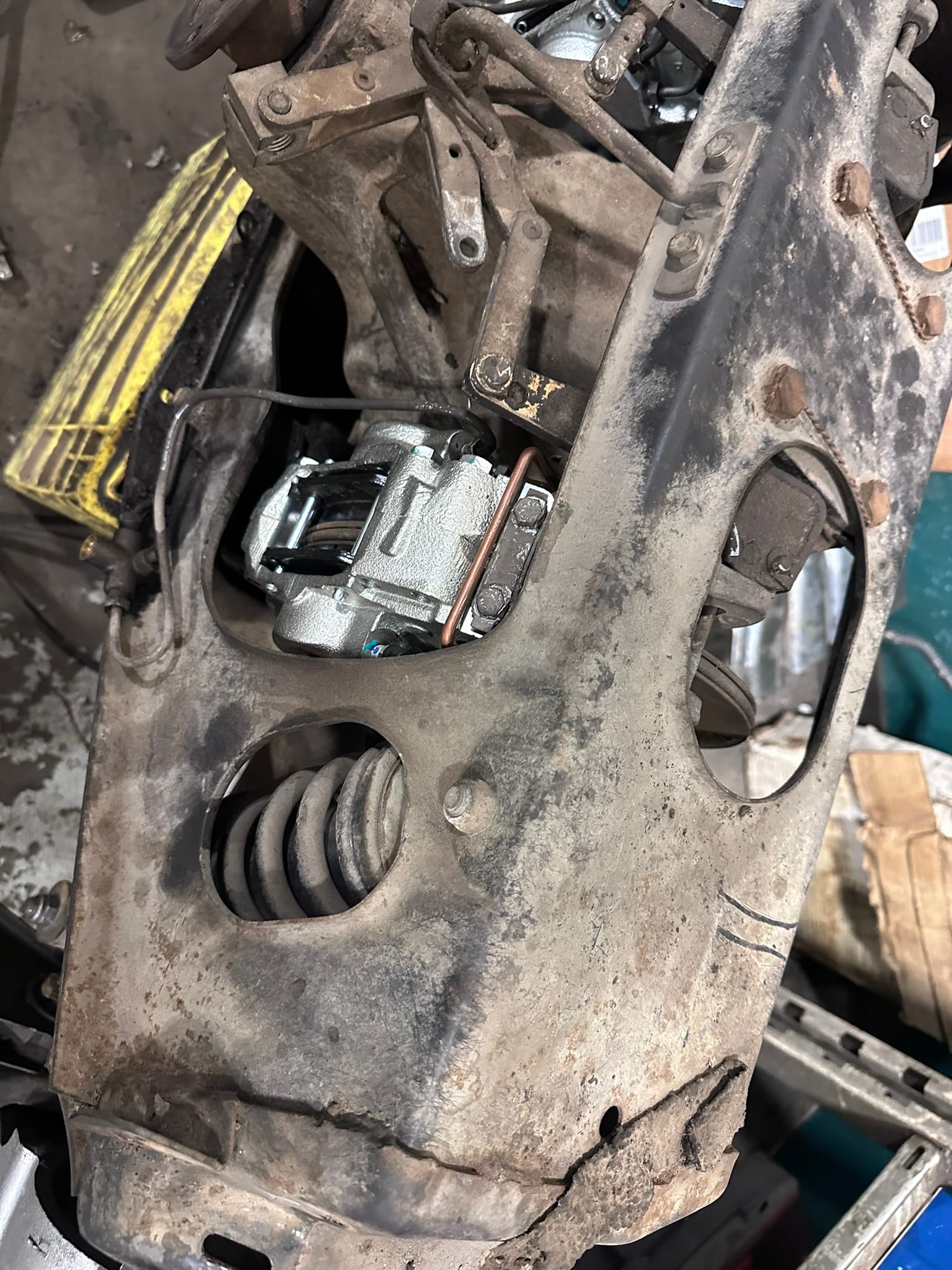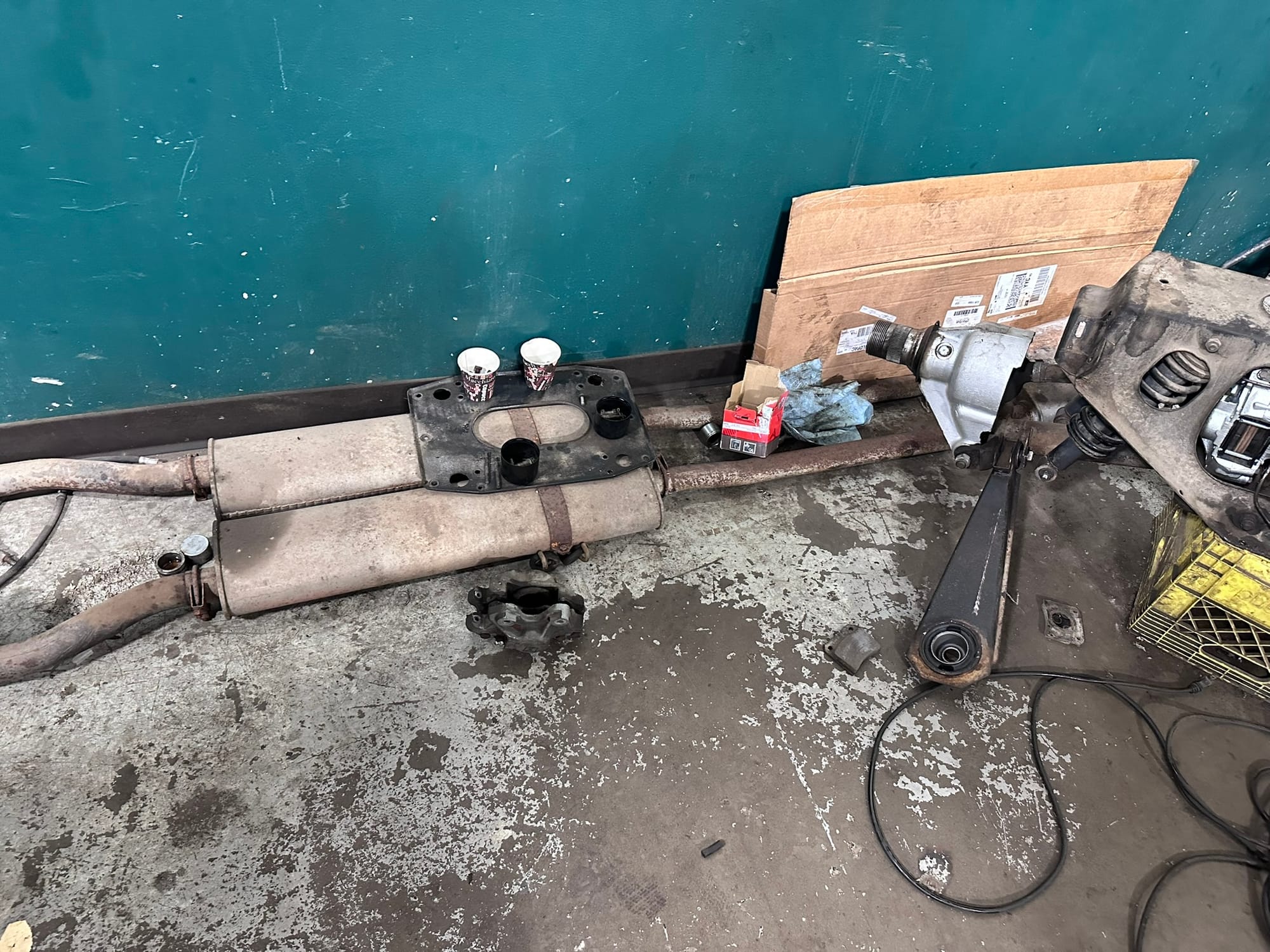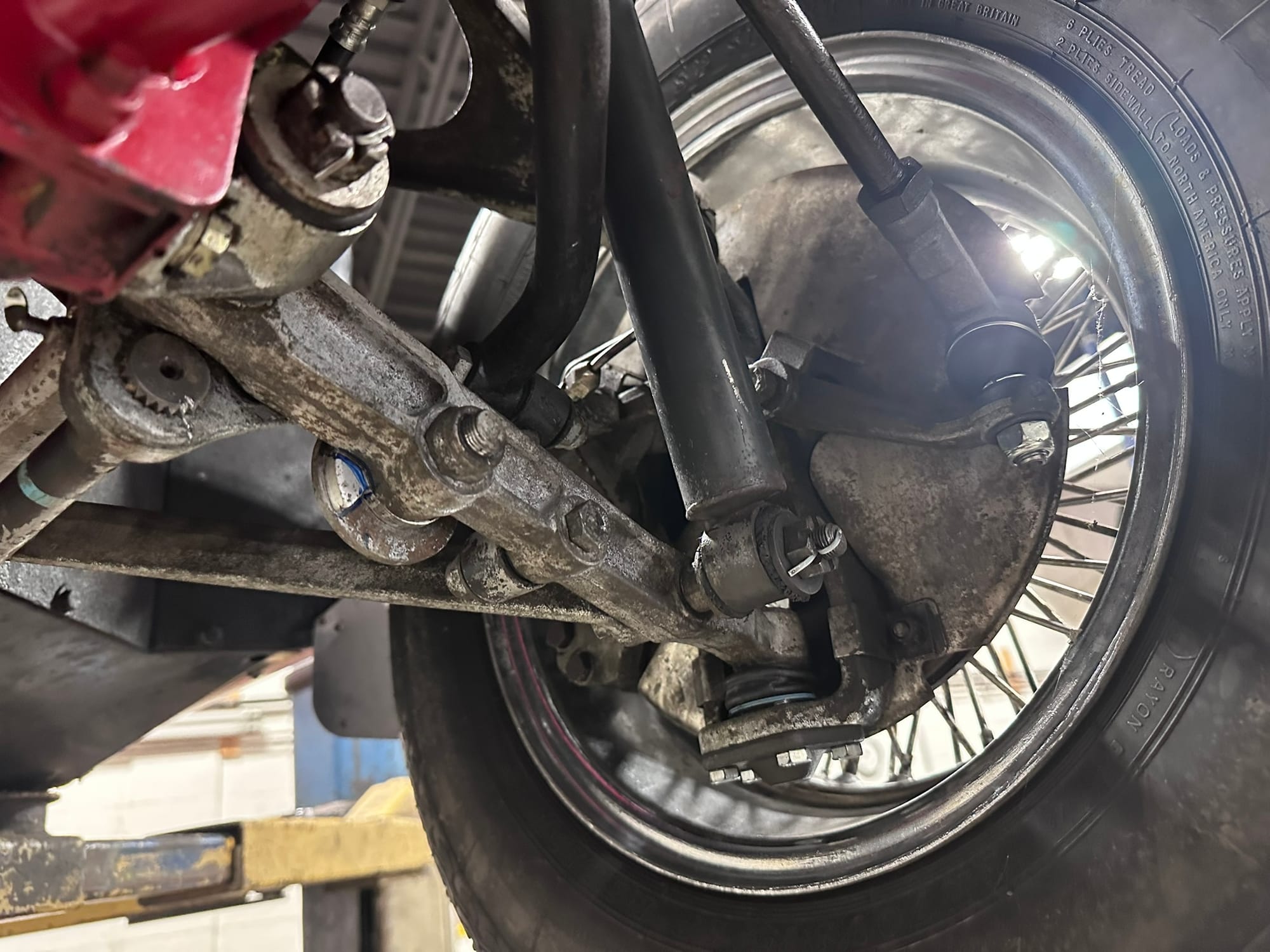 The fuel tank was dropped and send out for boiling and re-coating to Calgary Radiator. The Brakes callipers were rebuilt/replaced as necessary along with the master cylinder and brake lines. Front ball joints, tie rod ends and bushes were replaced. The IRS rear end was dropped and re-bushed.