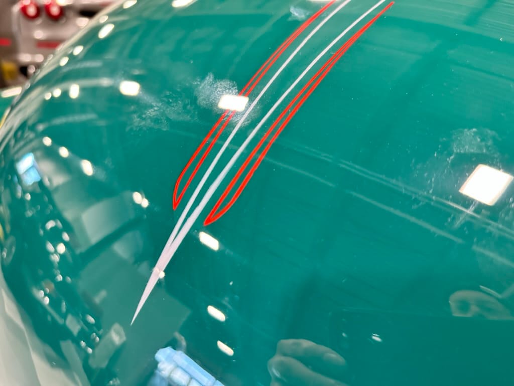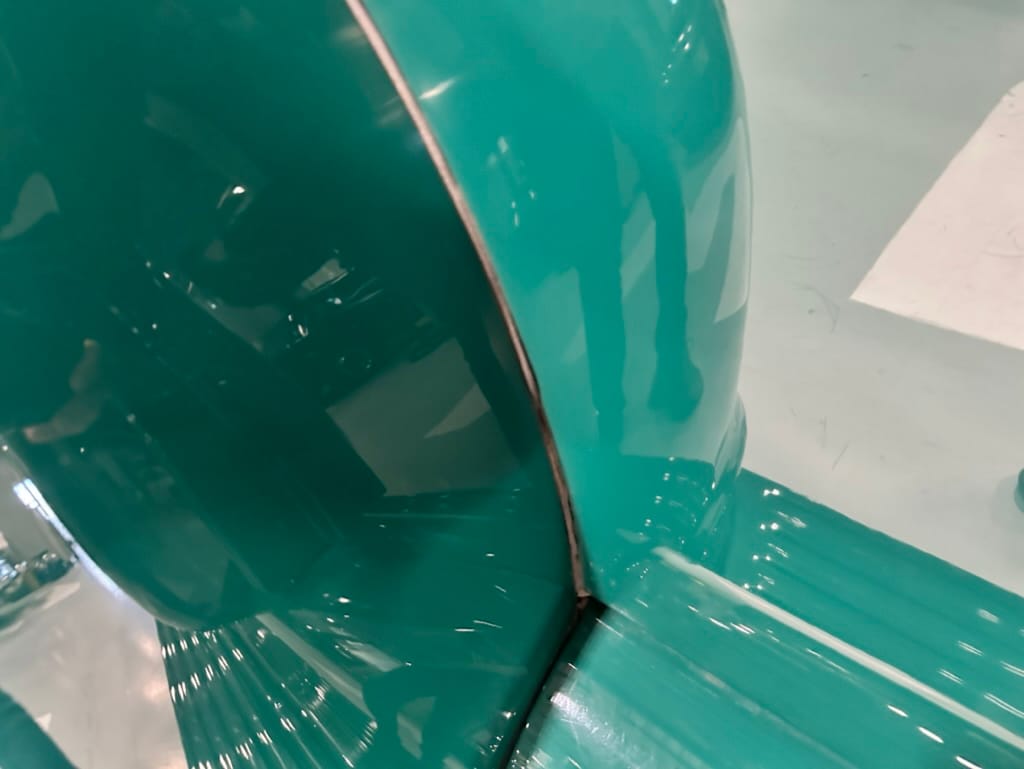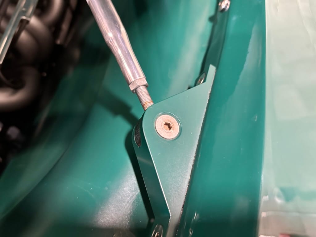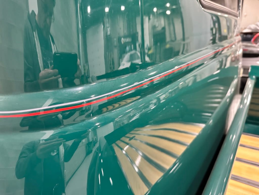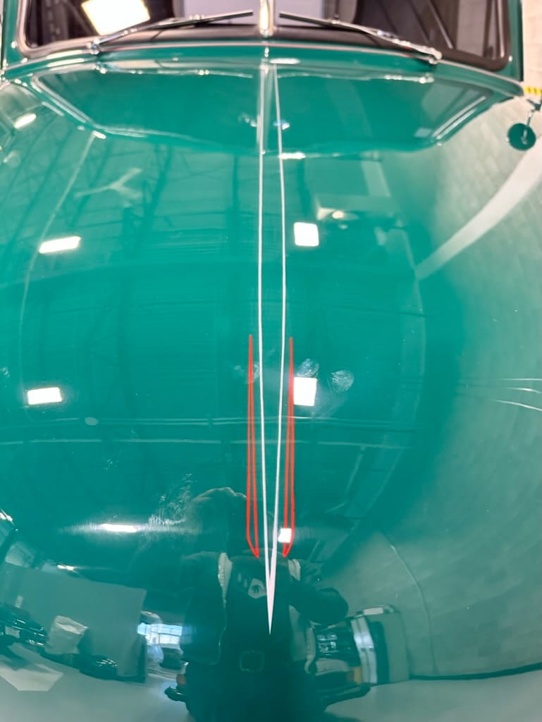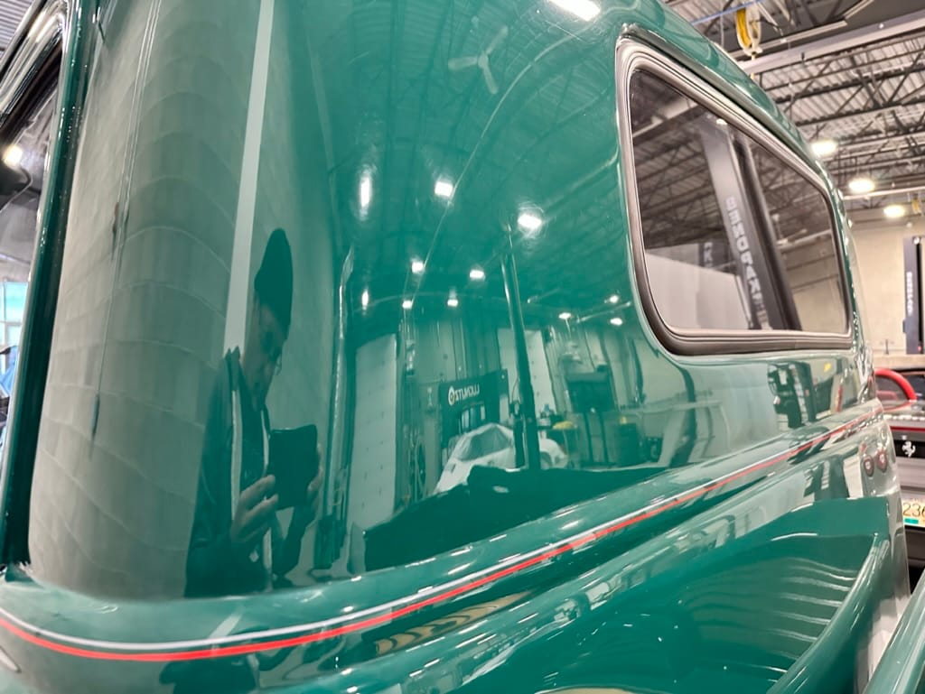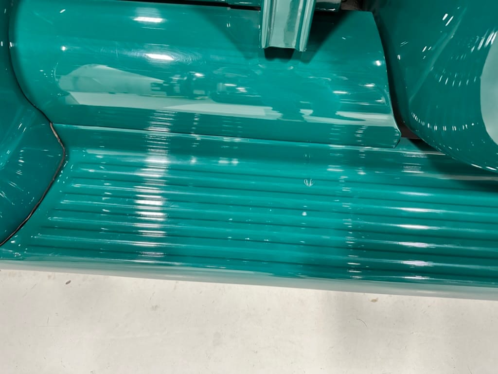 Custom rear roll pan, shaved doors with electro-mechanical opening, one-piece welded bonnet, smoothed tailgate, rear bed tubbed, ‘Bitchin’ Products’ firewall, Axalta Woodland Green paint with hand painted pin striping.