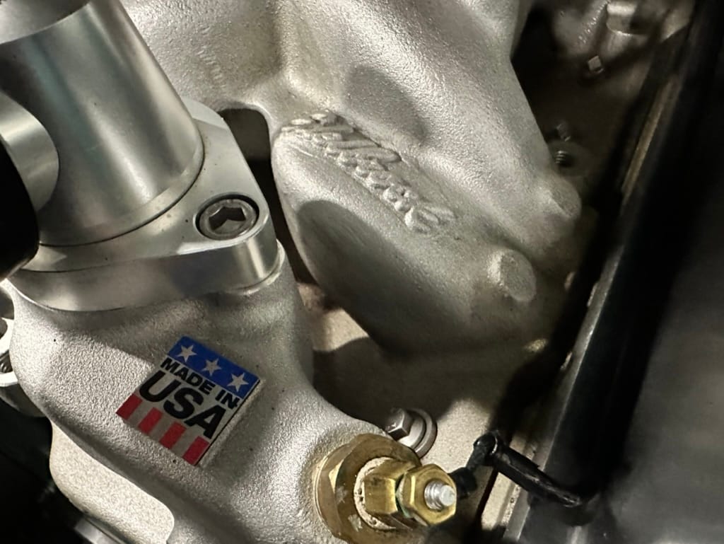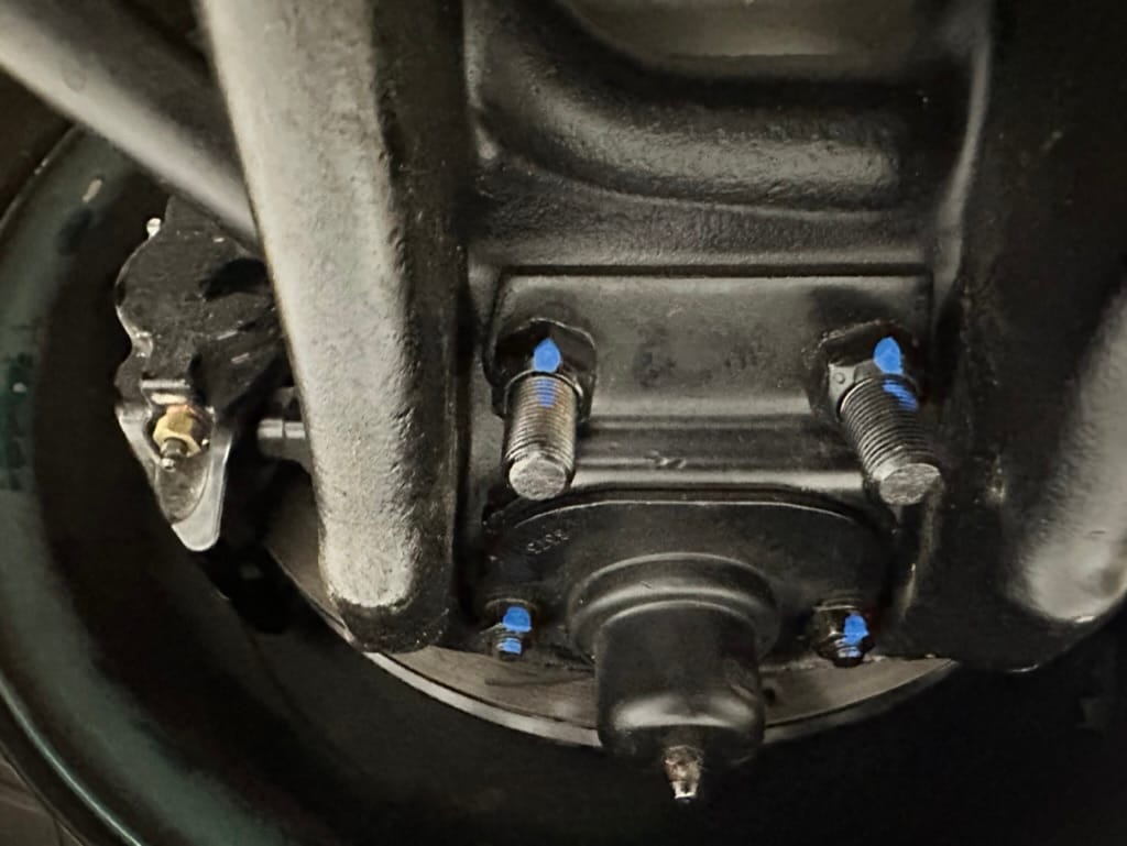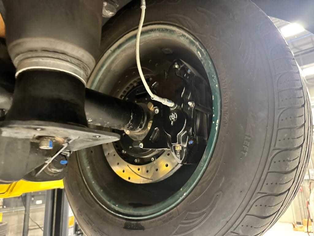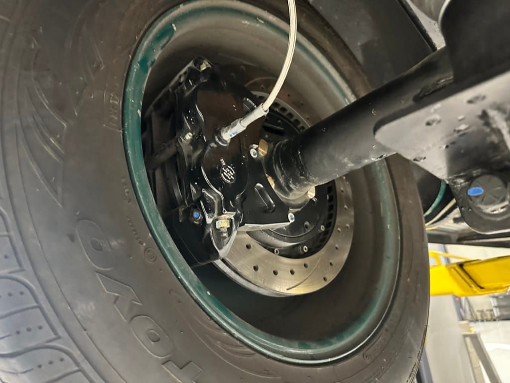 Brakes: 11 inch GM vented disks with 4 piston callipers, rear Ford drum, Corvette dual mater cylinder