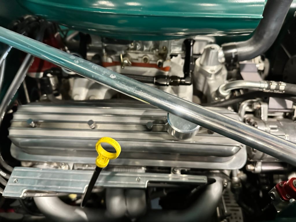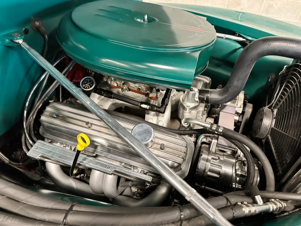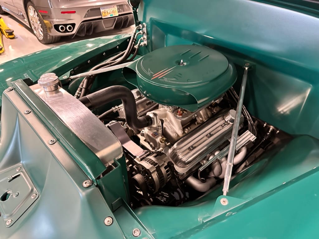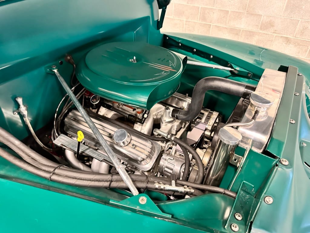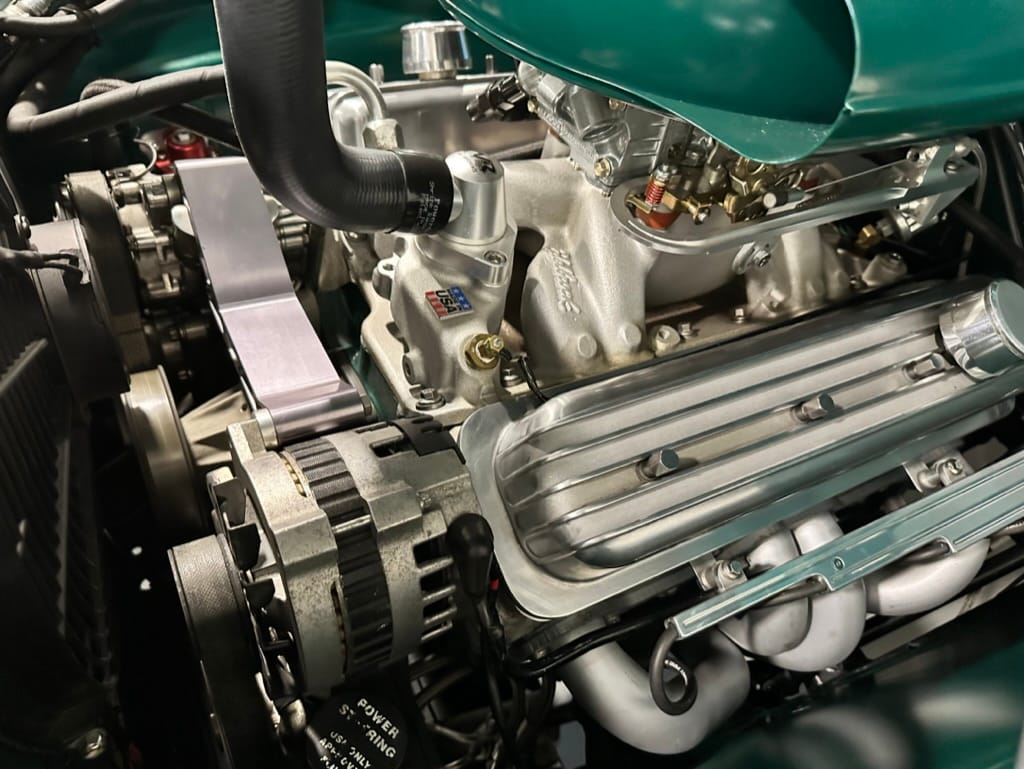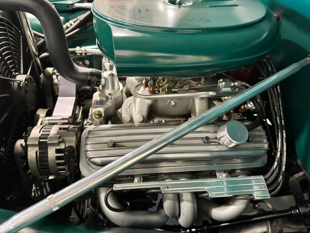 Engine: Chevrolet ZZ4 350ci V8 Crate engine with GM Performance aluminium heads and valve covers, Edelbrock Performer intake manifold and 650cfm carburetor, MSD ignition, S&S headers, custom Summit Racing 2.5” exhaust