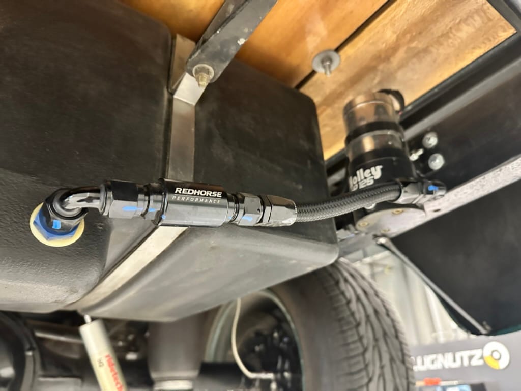 Frame: Stock Chevrolet with reinforced boxed sections, narrowed rear rails and custom driveshaft loop