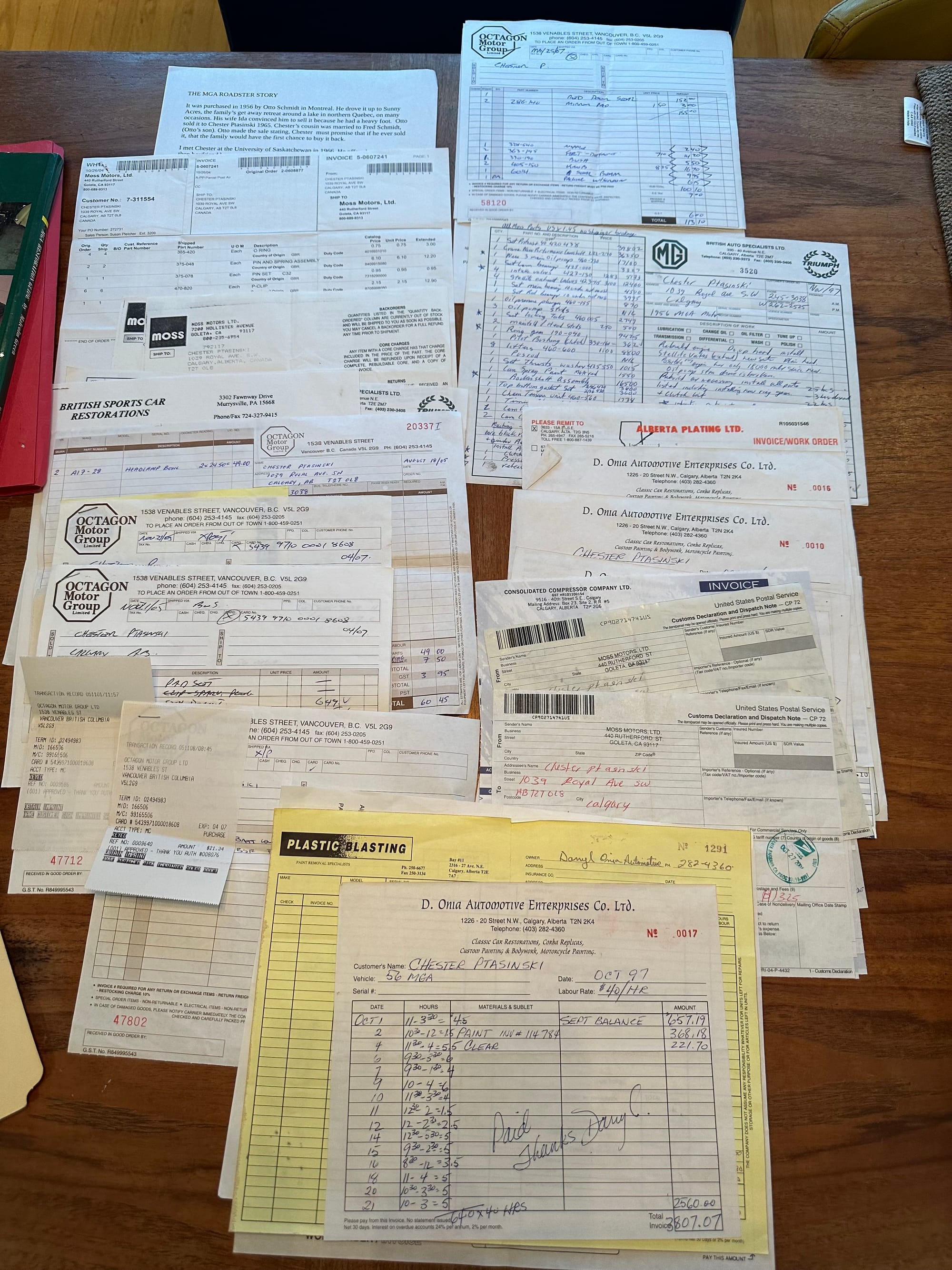 The MGA received a well deserved and well documented restoration in 2005/2006 as a collaborative effort between Chester and his son Chad, and local Calgary specialists who rebuilt the engine and did the body and paint work. The father and son team disassembled the car to the bare shell, carefully documenting it with diagrams and photos, and had each piece media blasted and coated. They reassembled the car after the paint and body work was completed by British Auto Specialists, who also rebuilt the engine. The car has seen only minimal mileage since.