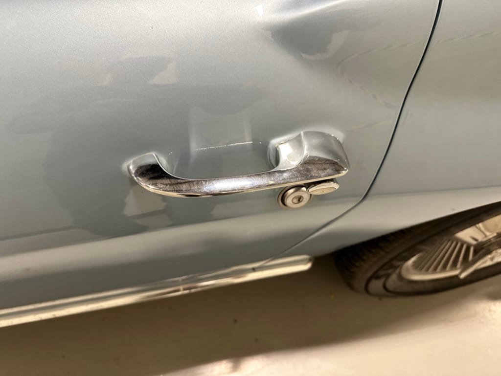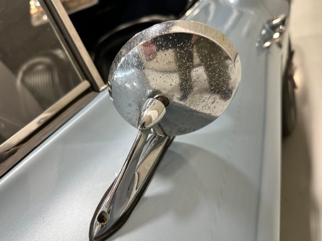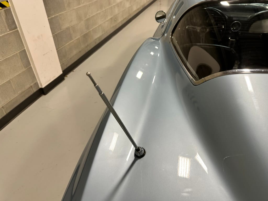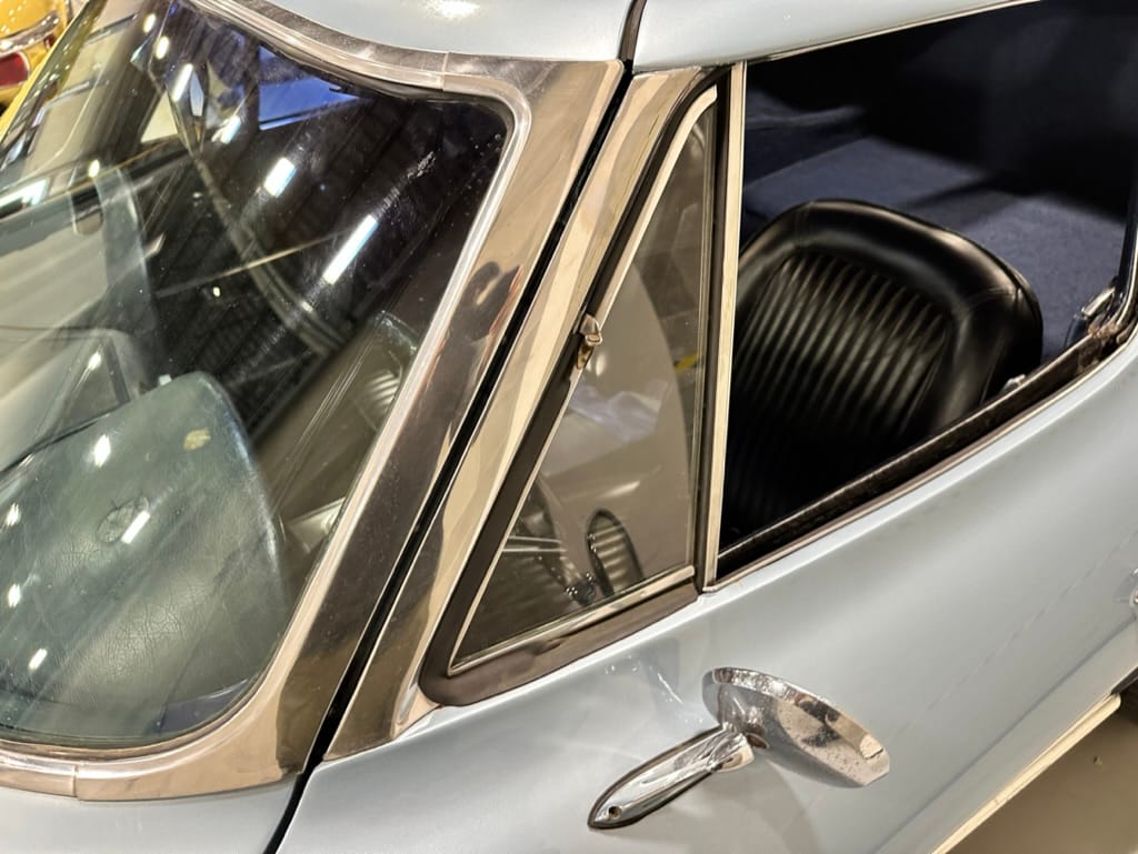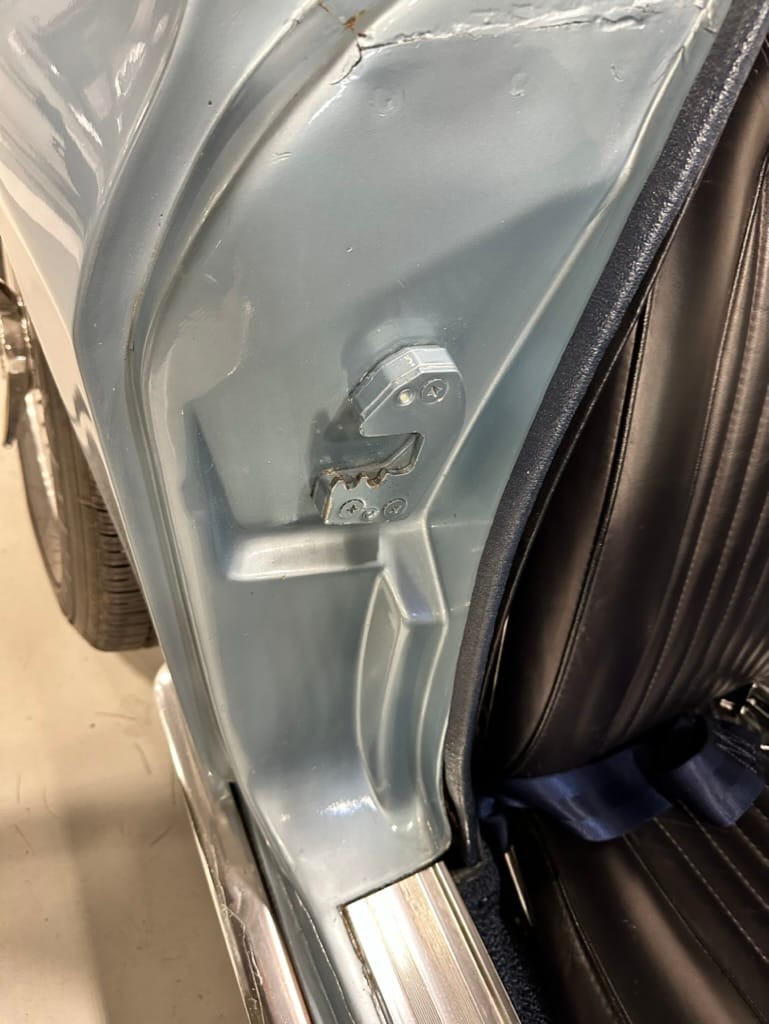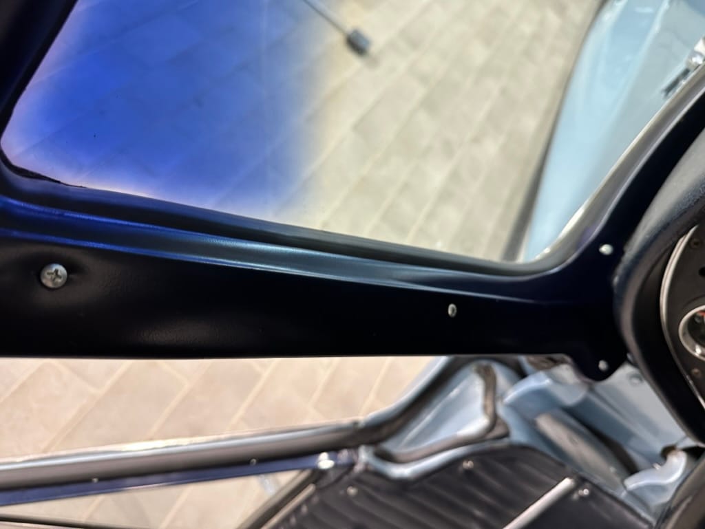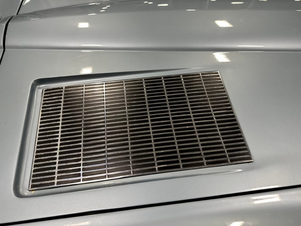 The fiberglass body was refinished in silver blue in 2000, and seller tells us that evidence of past repair was discovered on the rear quarter panel during the process, which is believed to have resulted from some body damage that occurred prior to the owner’s purchase in 1971. The bodywork was then redone as part of the refurbishment. The chrome and rubber components were also replaced at this time. Features include flip-up headlamps, fender vents, quad tail lamps, chrome bumperettes, and dual exhaust tips that exit through the rear valance. The seller notes some paint chips, bubbles, and stress cracks.