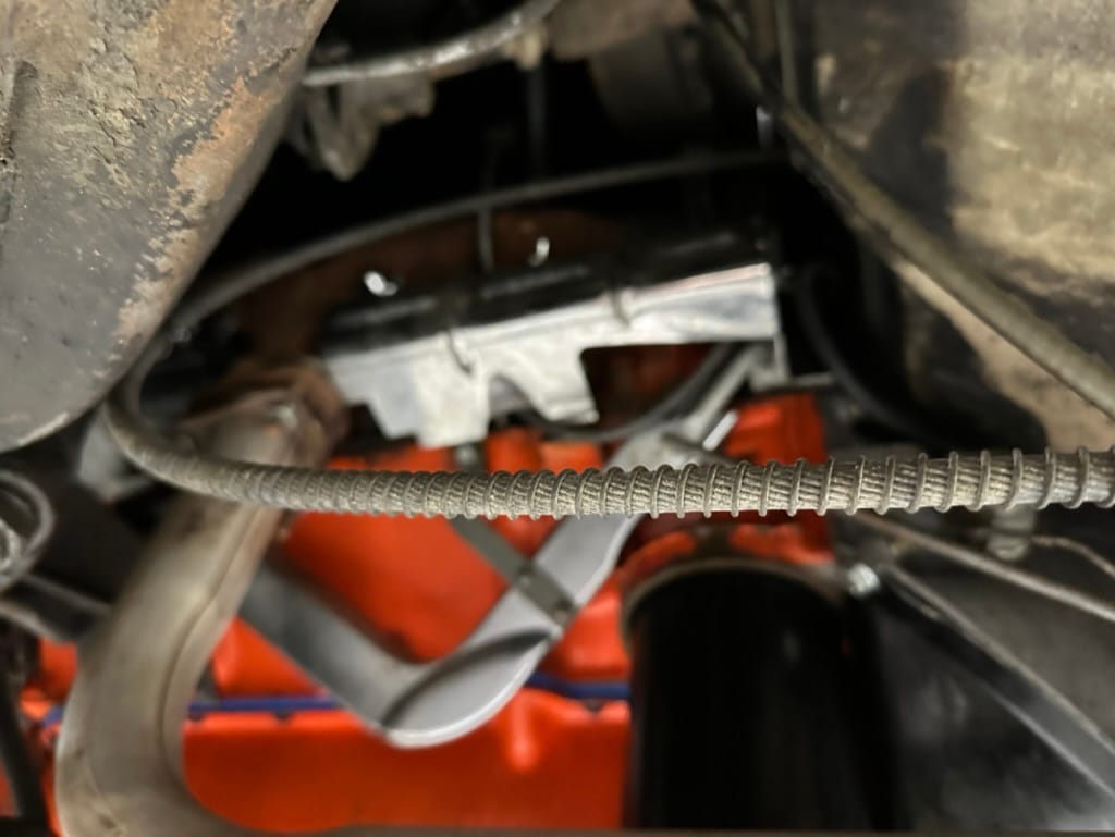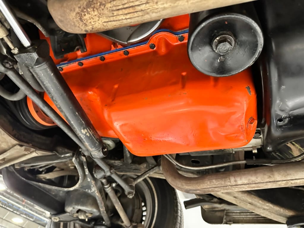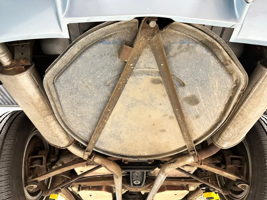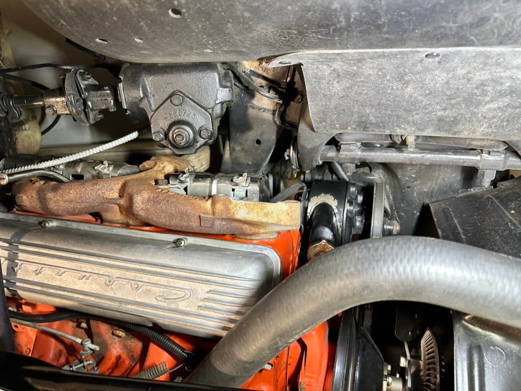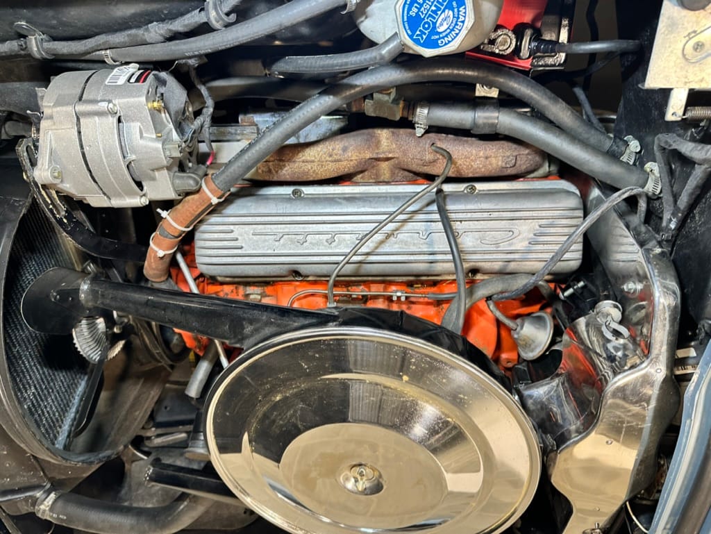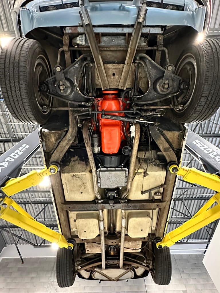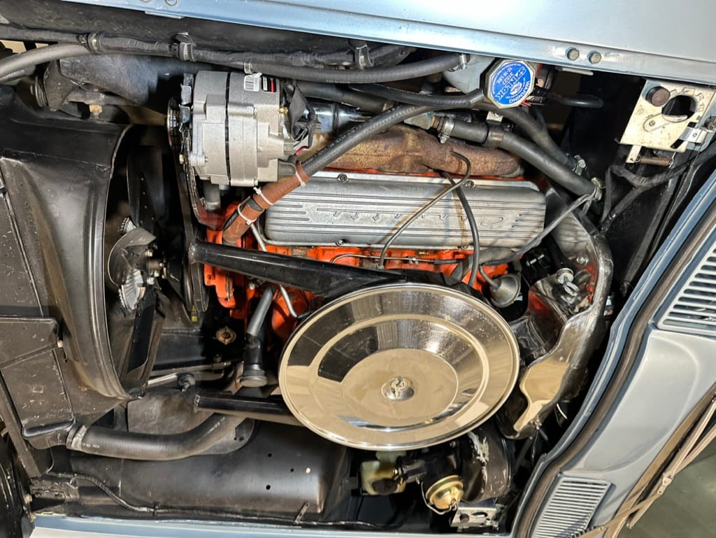 Power is sent to the rear wheels through a two-speed Powerglide automatic transmission that was rebuilt in 2024. Additional work at this time included resealing the engine oil pan and installing a helicoil in the shifter actuator.
