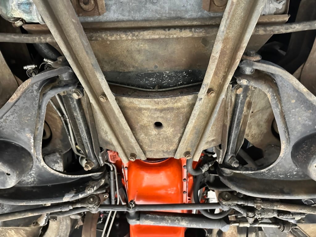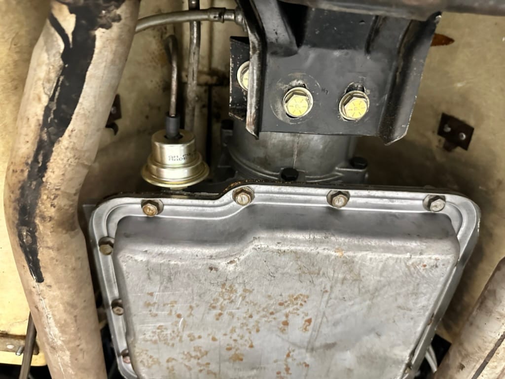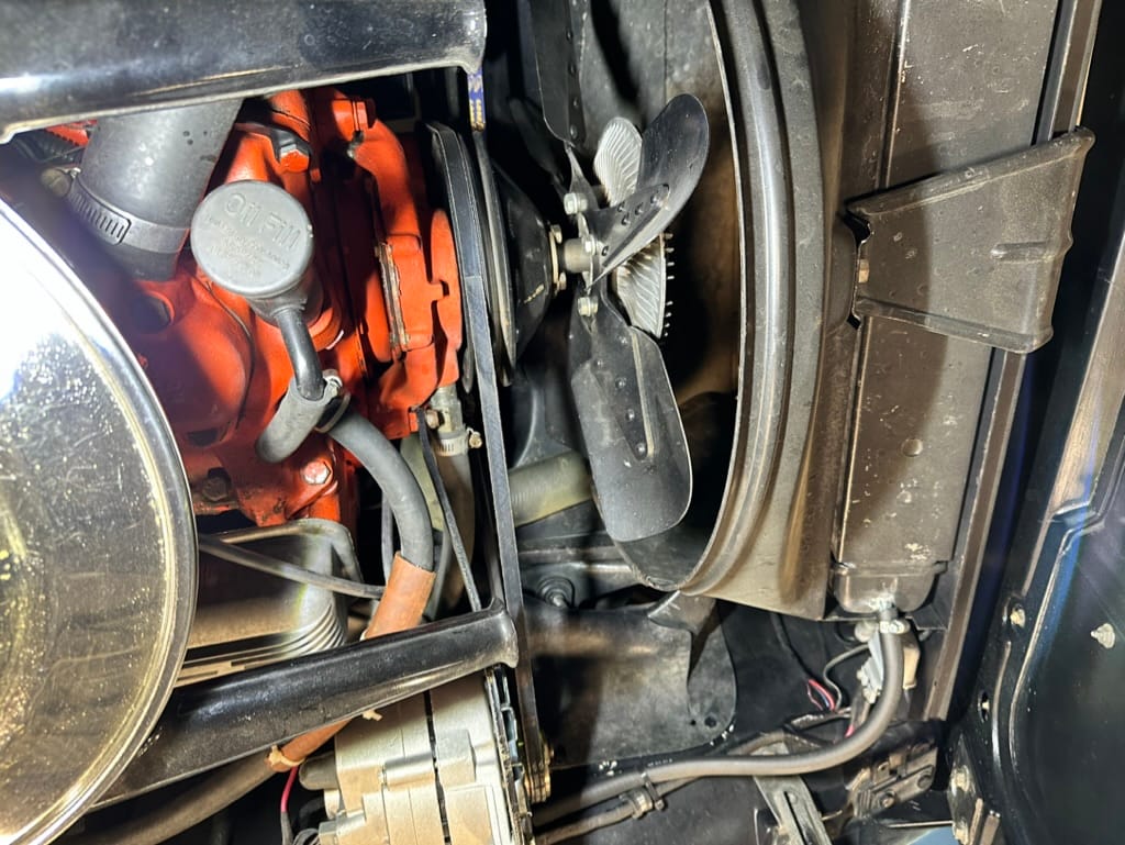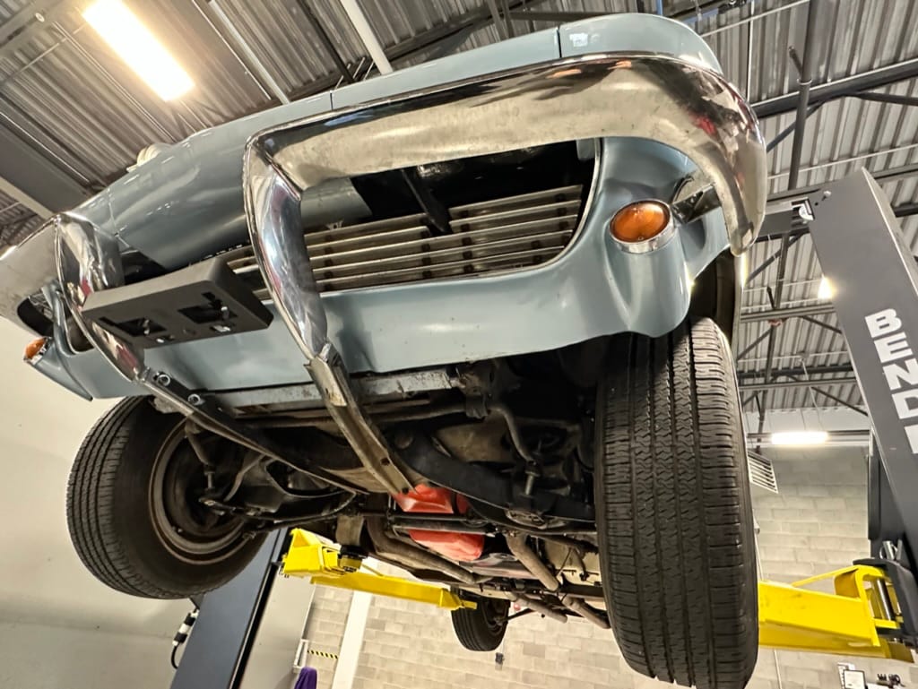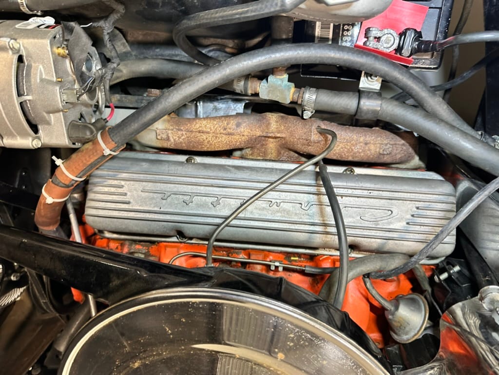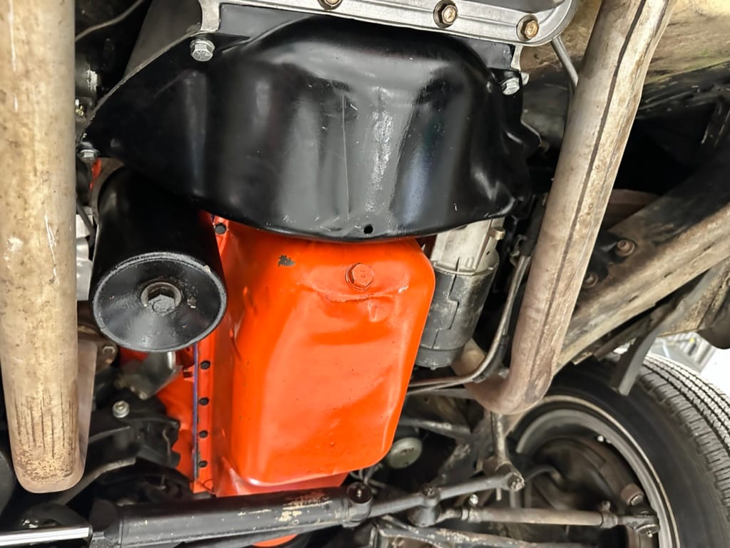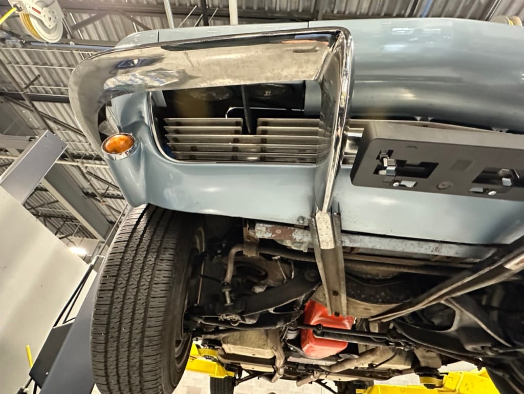 Power is sent to the rear wheels through a two-speed Powerglide automatic transmission that was rebuilt in 2024. Additional work at this time included resealing the engine oil pan and installing a helicoil in the shifter actuator.