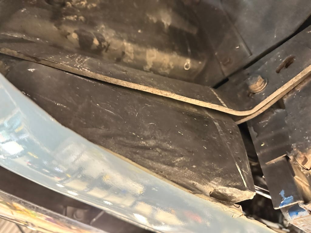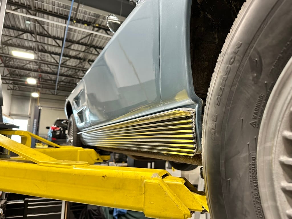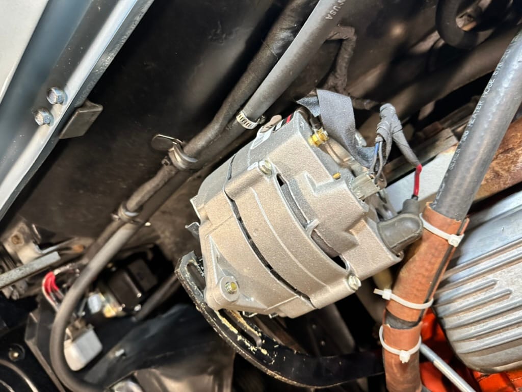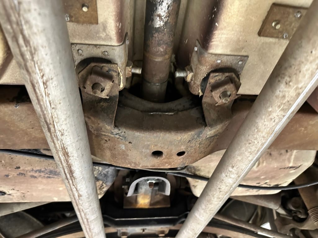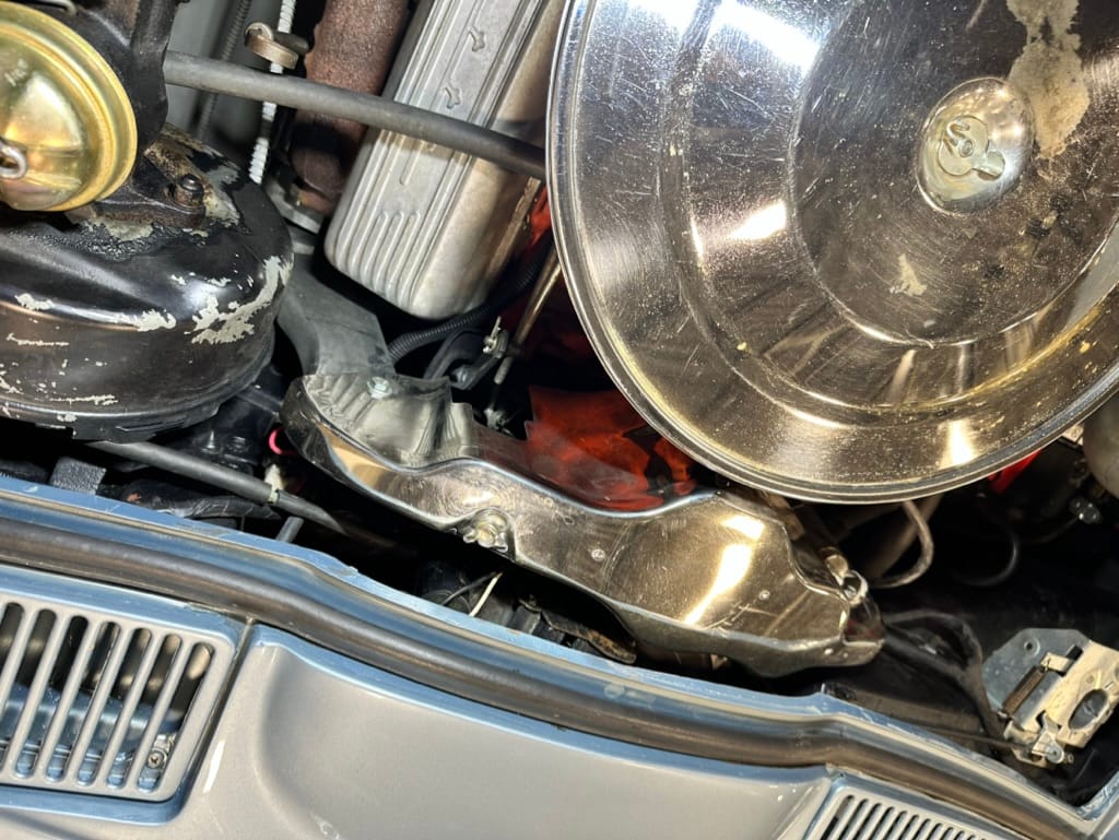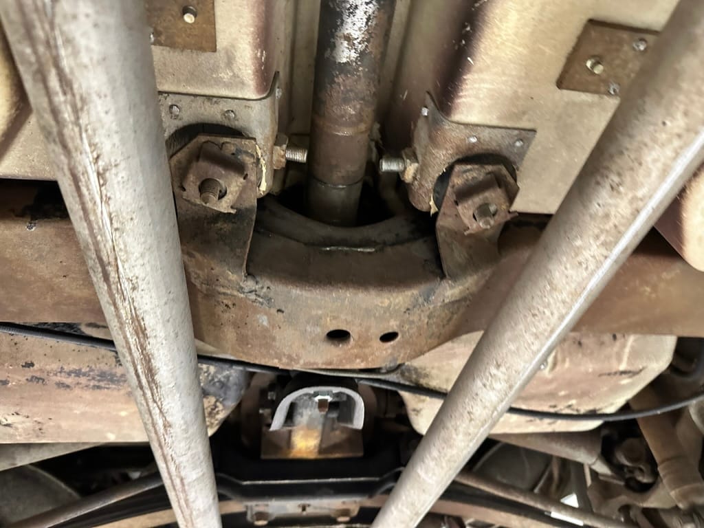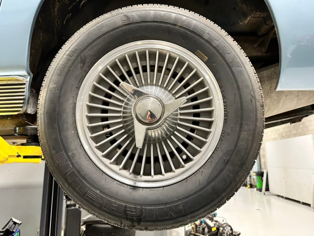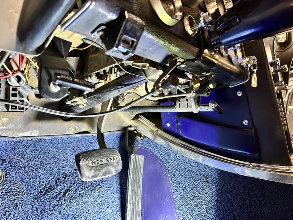 Power is sent to the rear wheels through a two-speed Powerglide automatic transmission that was rebuilt in 2024. Additional work at this time included resealing the engine oil pan and installing a helicoil in the shifter actuator.