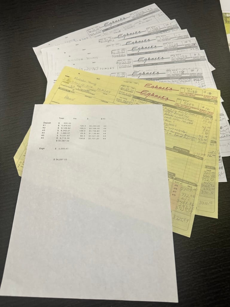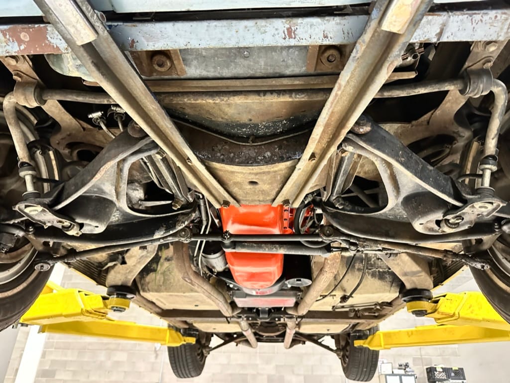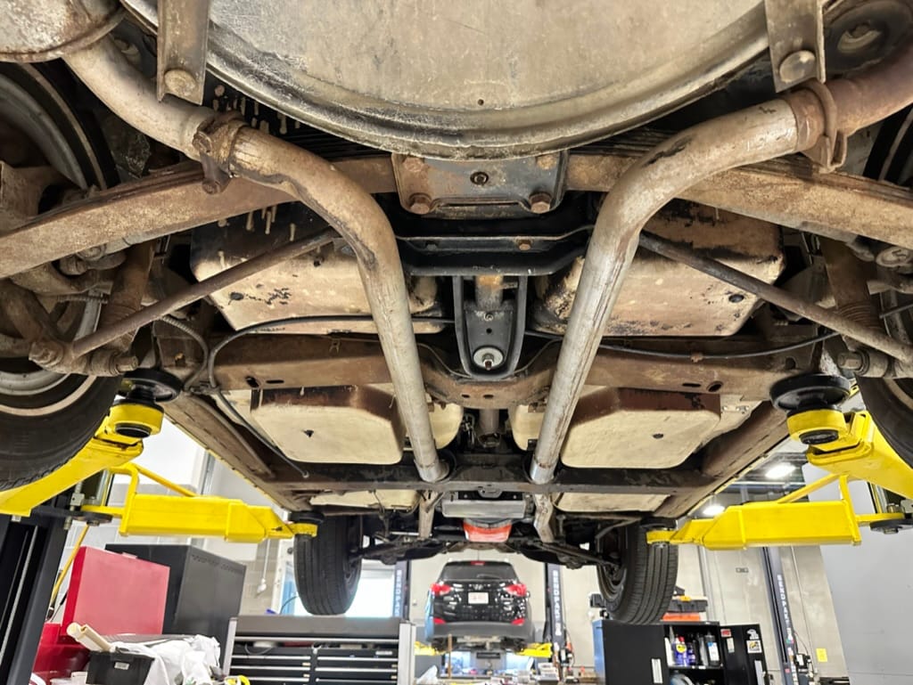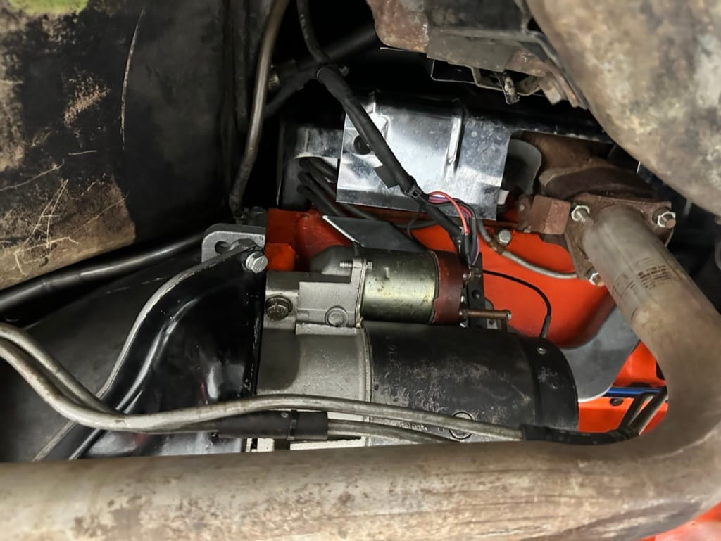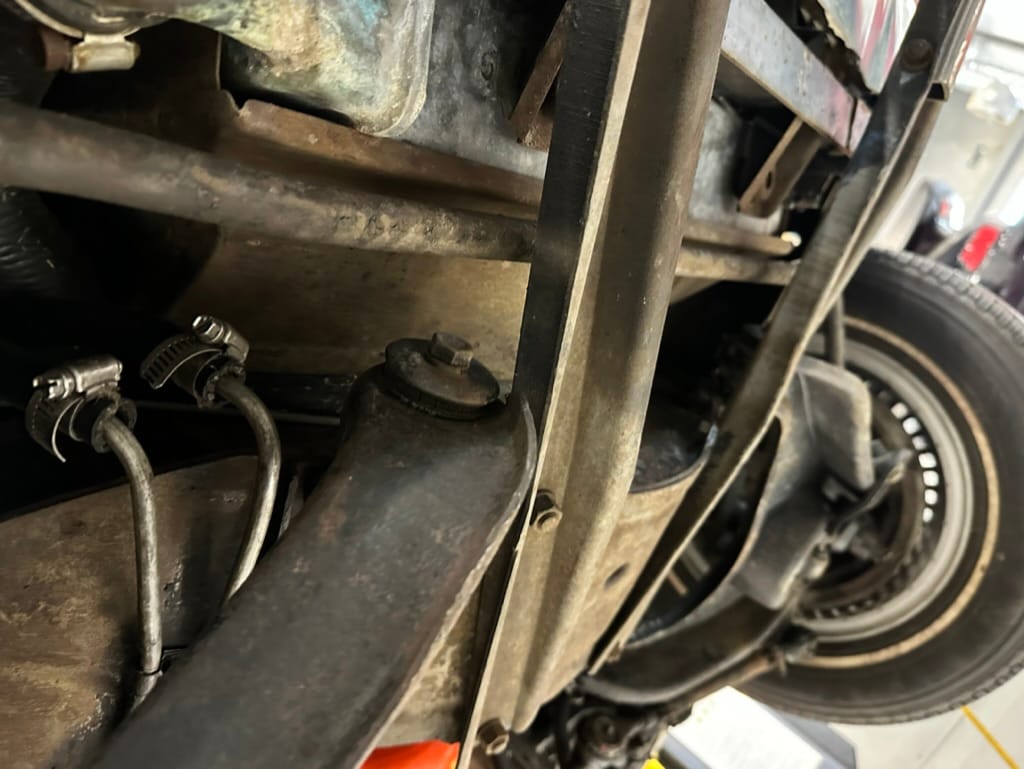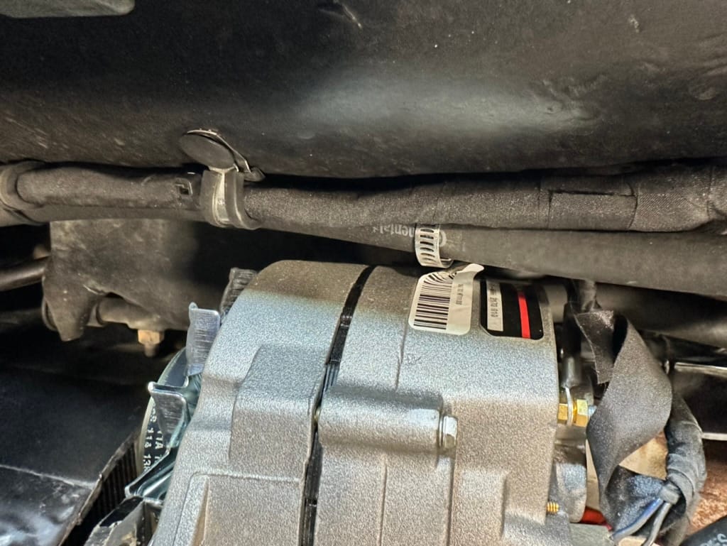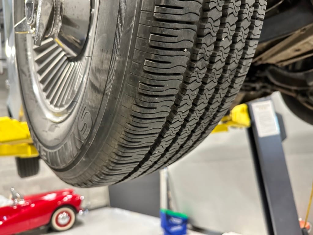 Power is sent to the rear wheels through a two-speed Powerglide automatic transmission that was rebuilt in 2024. Additional work at this time included resealing the engine oil pan and installing a helicoil in the shifter actuator.