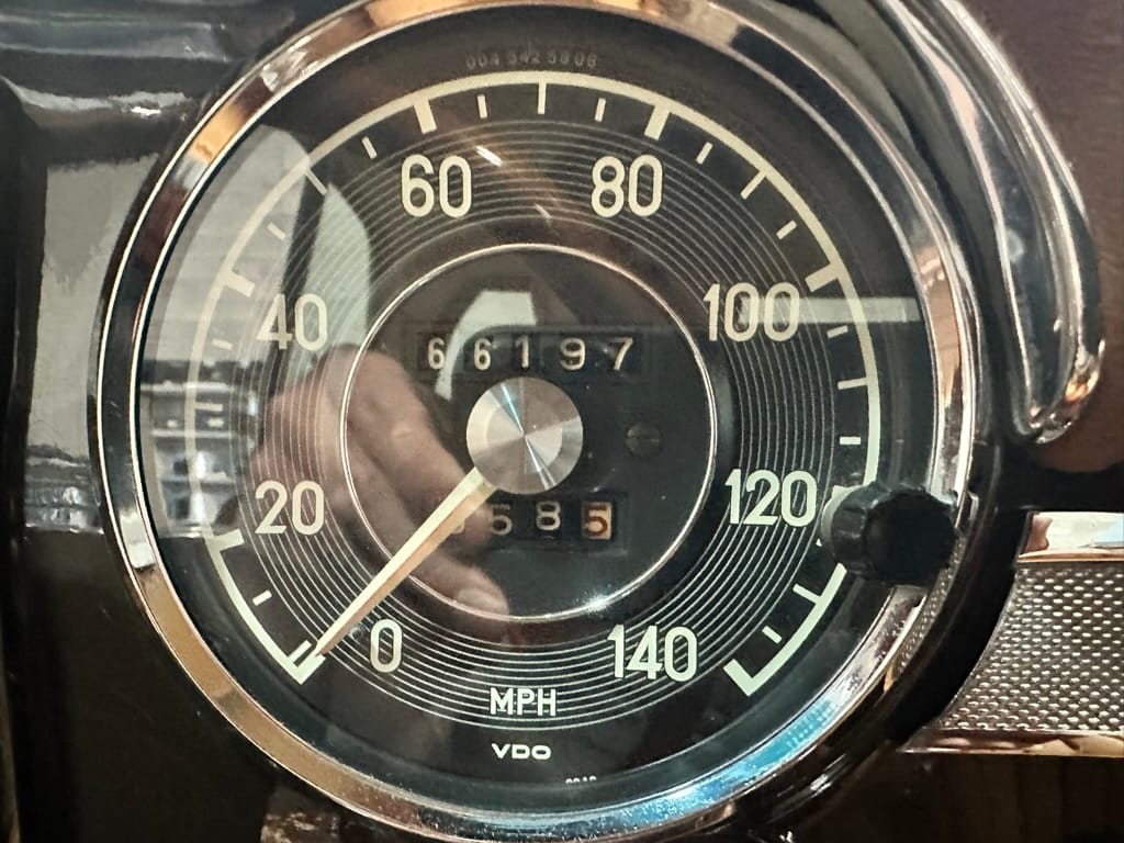 The vehicle now shows 66,197 miles on its odometer. It comes with partial records, Books, tool roll, spare tire cover and an original Michelin 'X' spare tire.