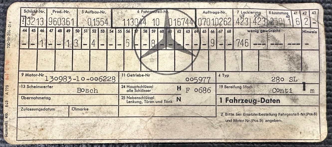 1970 Mercedes Benz 280SL Pagoda 4 Speed Manual - Sold