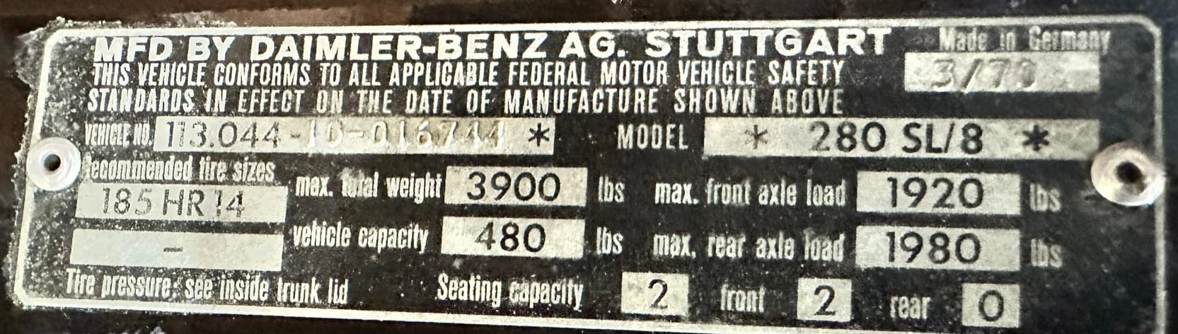 The vehicle was presumed to have been maintained by the Mercedes-Benz dealer in Kingston, but no service records exist for the car when it was in Ontario.