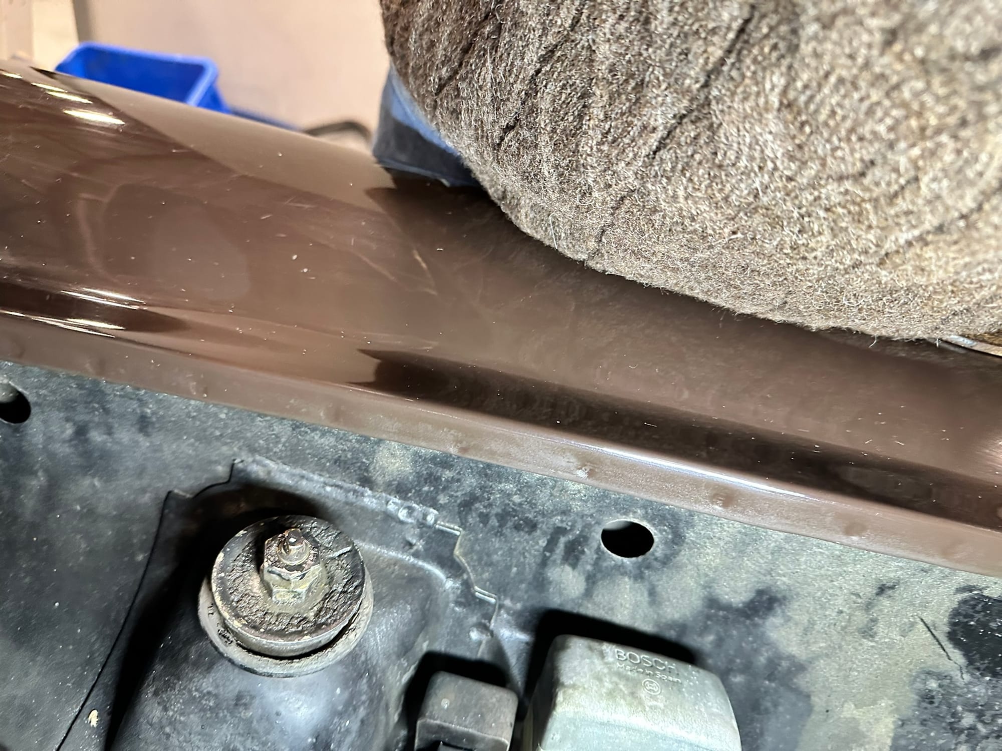 In approximately 2016 the vehicle received an interior refresh with new Cognac seat leather covers, new carpets, new soft top and headliner. At some point the steering wheel was changed out from the padded black stock wheel to a wood 'Nardi' wheel.
