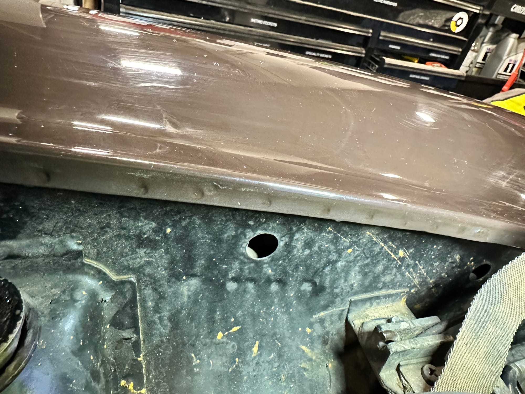 There is a body shop estimate from Edwards Ford Sales (Kingston) from July 6, 1988 for paintwork to the front fenders, doors and hood totalling $2,287. There is an undated estimate from Frontenac Auto Body Service in the amount of $3,718 to repaint the car including repairing the floor pans including sandblasting but noting that welding was an additional cost. There is a list of bodyshops in the Kingston area attached to one of the invoices, so it appears that the owner got several estimates for the same work. We can assume body work was performed, the floor pans patched, and the car repainted in 1988.