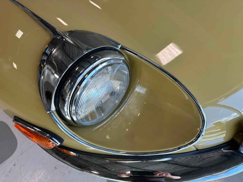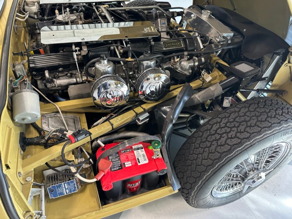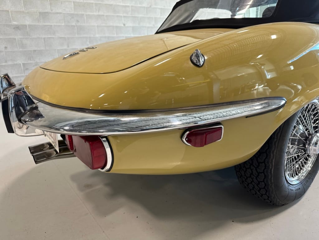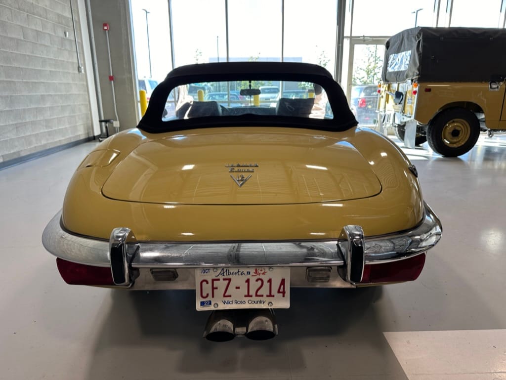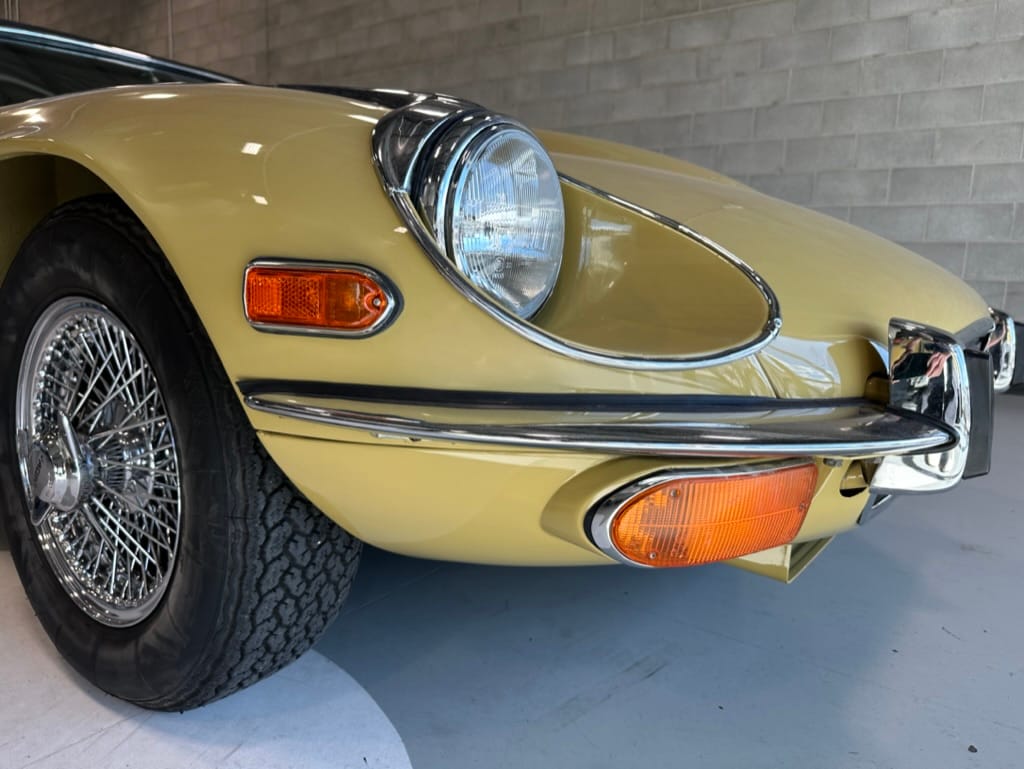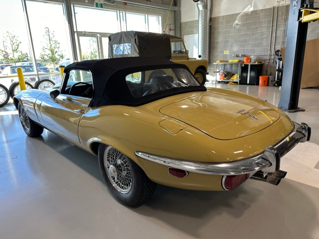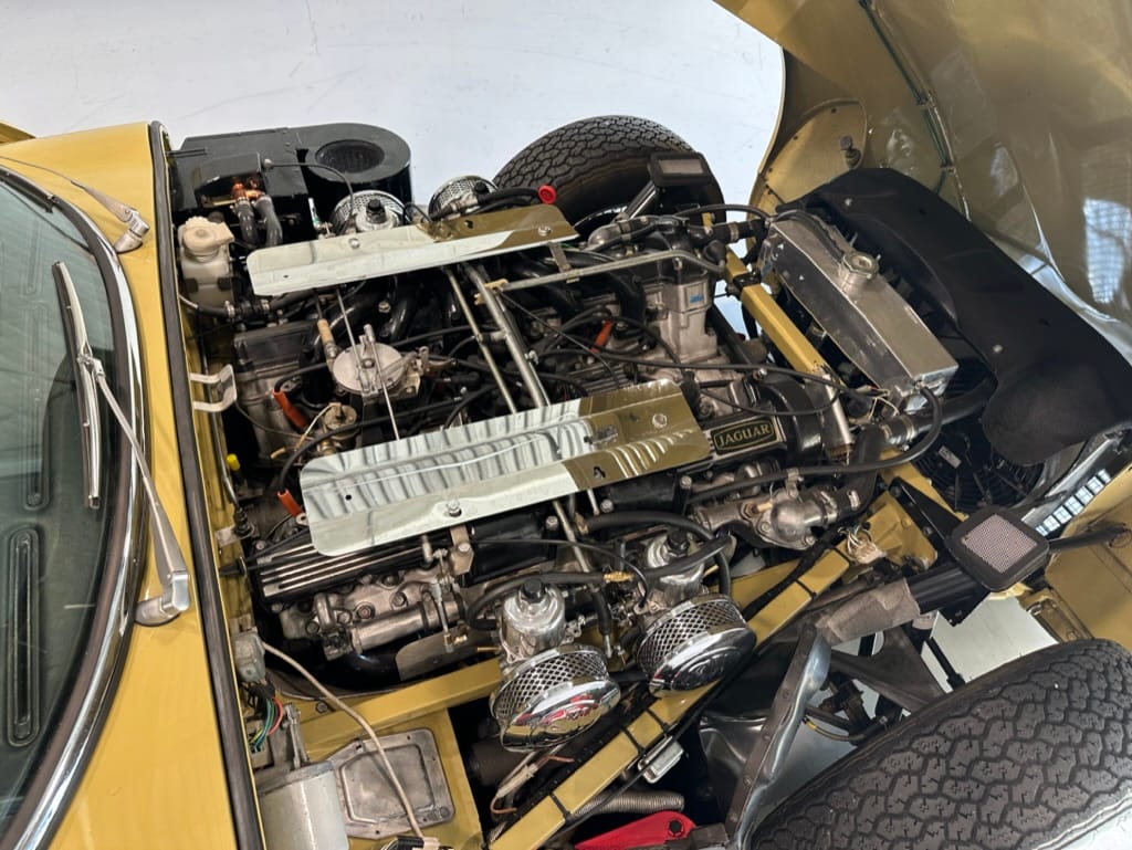 The original olive hides were colour matched by Worldwide Upholstery in California, along with the carpet, and sent to Chinook Upholstery in Calgary who fitted the interior. Dynamat insulation was installed under the carpet. According to the Jaguar Heritage Trust, this was the first LHD E Type S3 to have an Olive interior.
