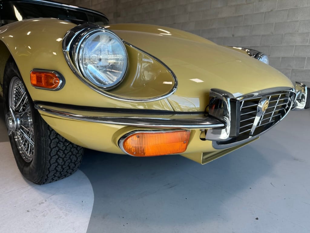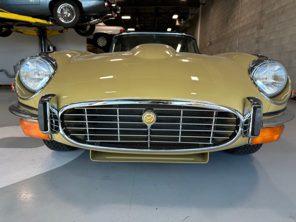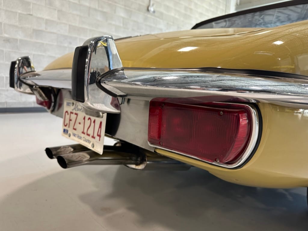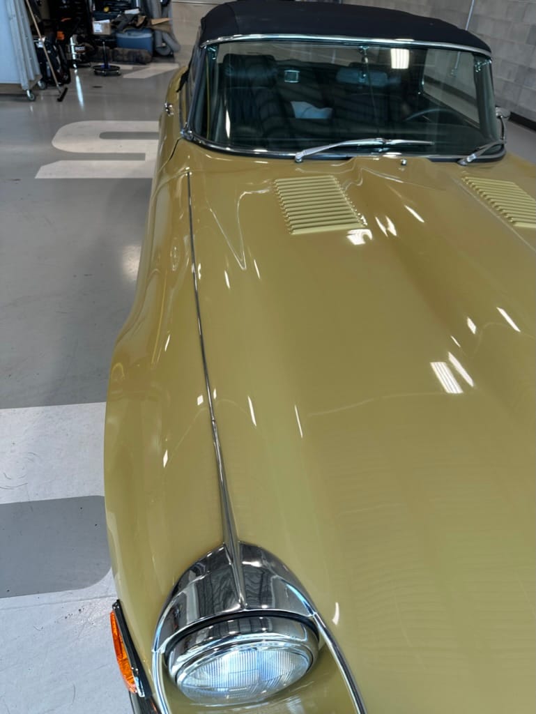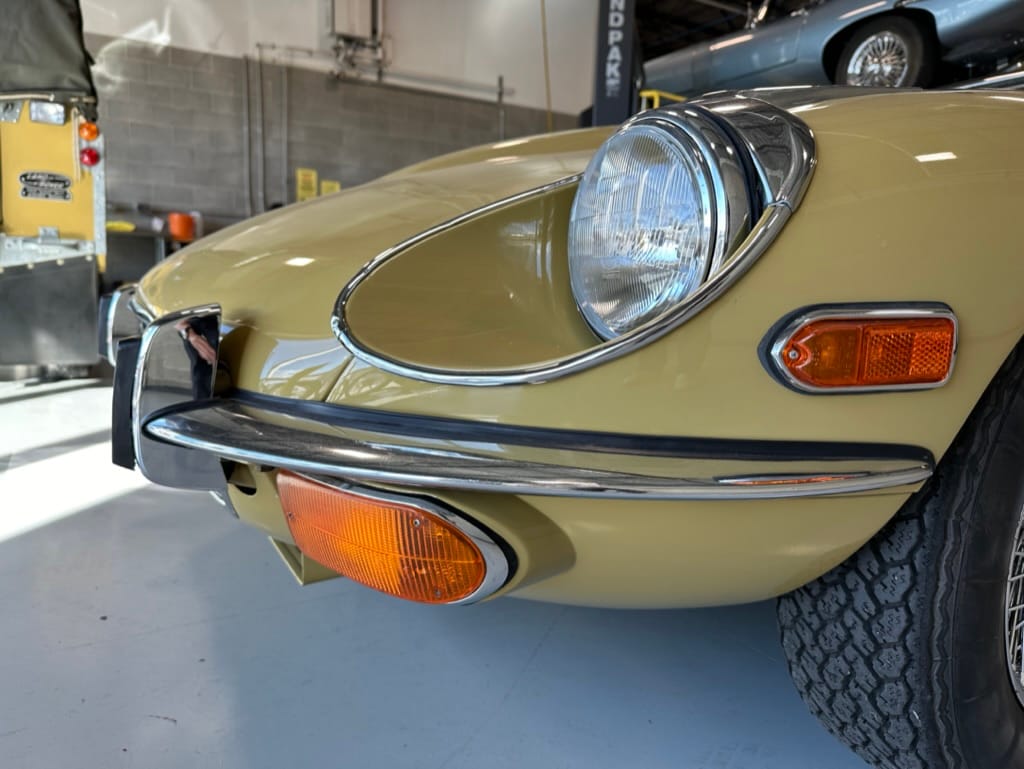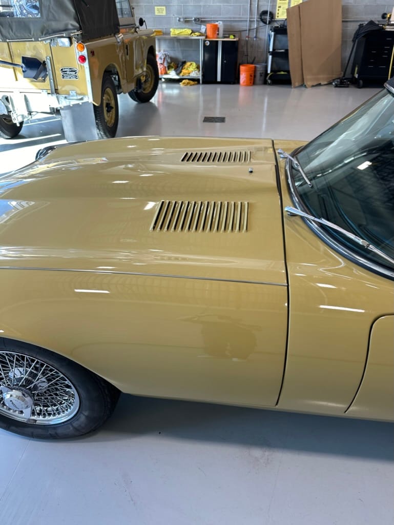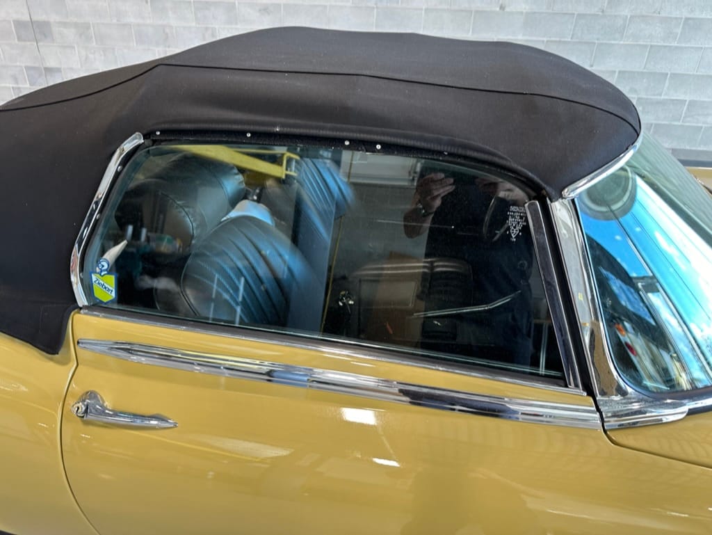 The original olive hides were colour matched by Worldwide Upholstery in California, along with the carpet, and sent to Chinook Upholstery in Calgary who fitted the interior. Dynamat insulation was installed under the carpet. According to the Jaguar Heritage Trust, this was the first LHD E Type S3 to have an Olive interior.