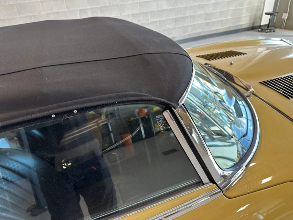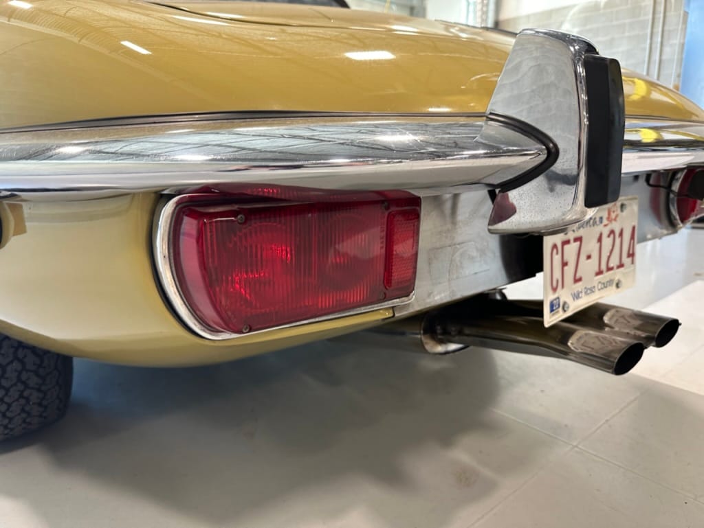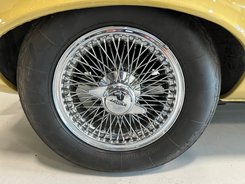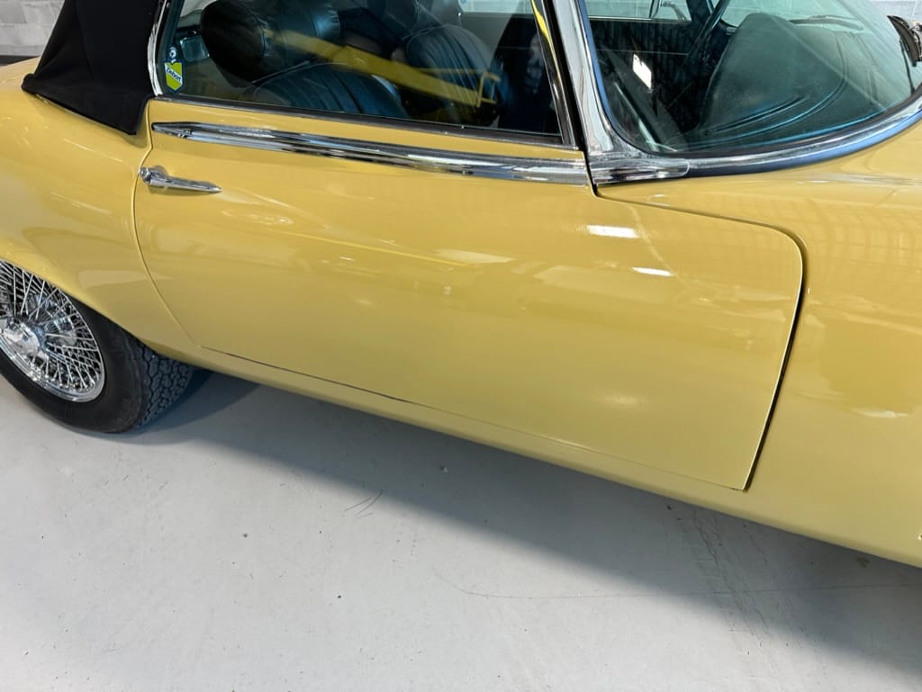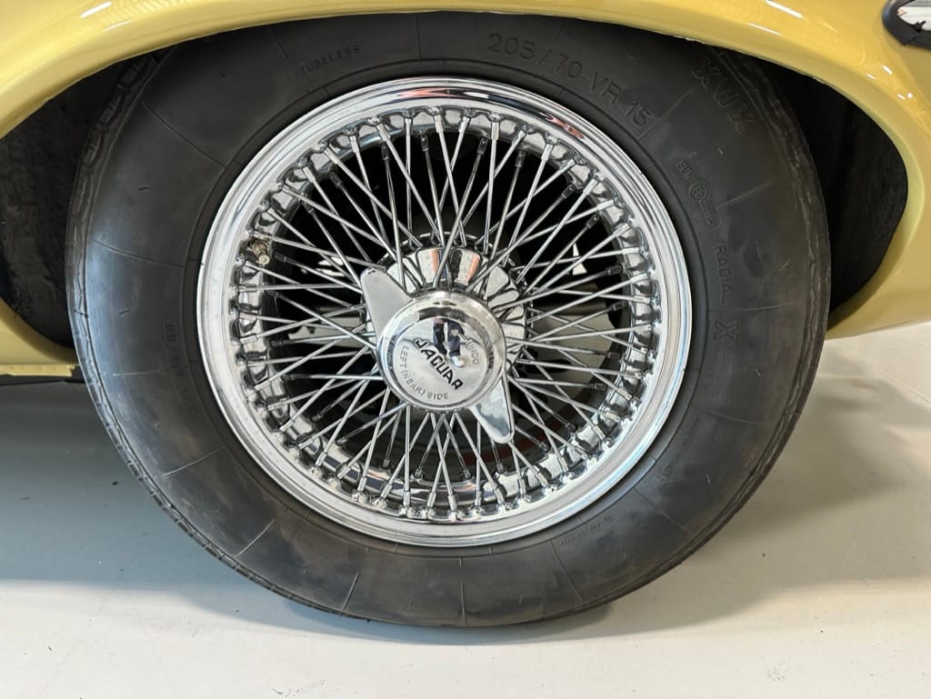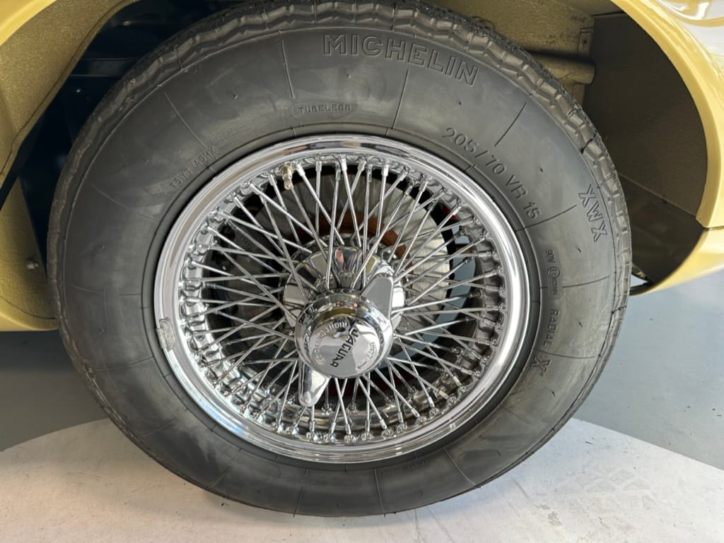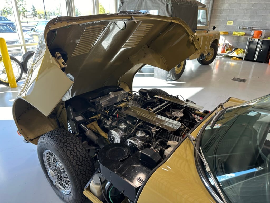 The original olive hides were colour matched by Worldwide Upholstery in California, along with the carpet, and sent to Chinook Upholstery in Calgary who fitted the interior. Dynamat insulation was installed under the carpet. According to the Jaguar Heritage Trust, this was the first LHD E Type S3 to have an Olive interior.