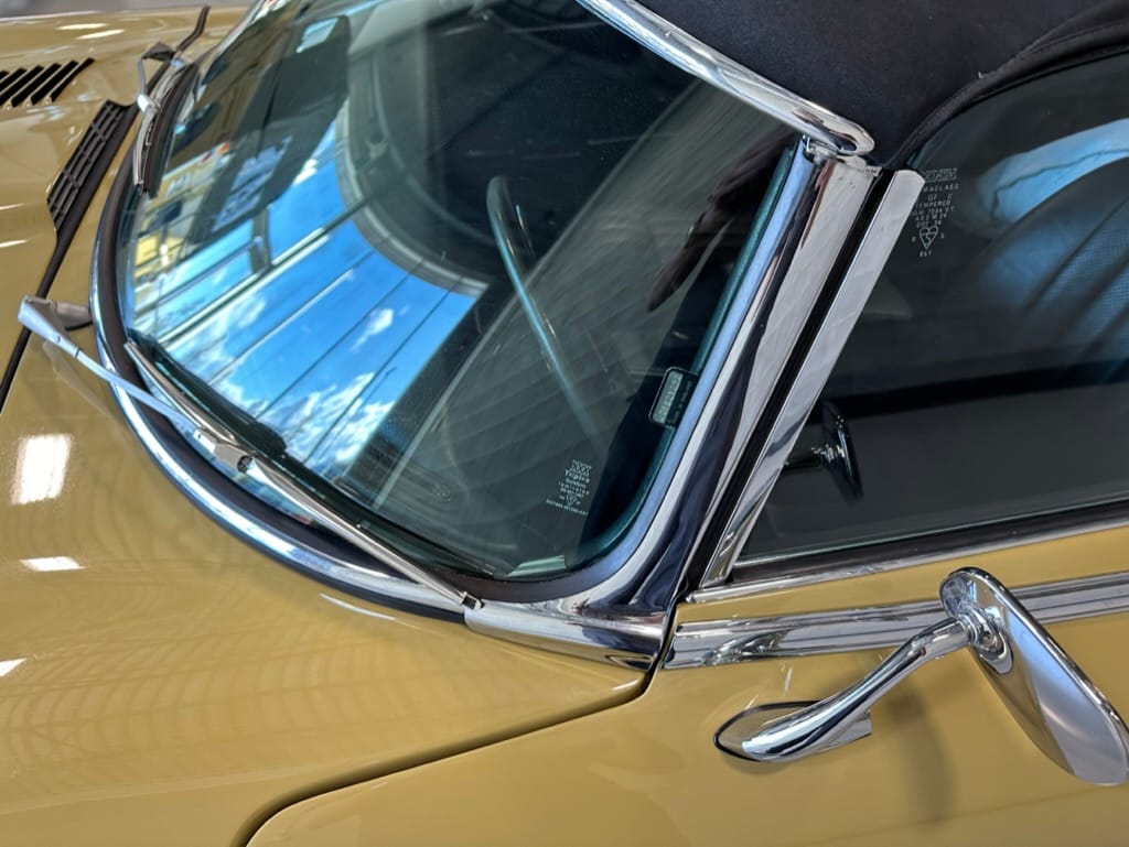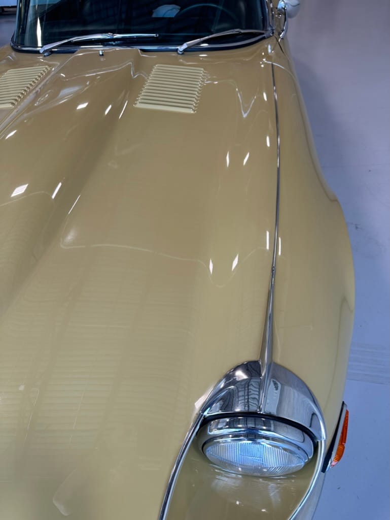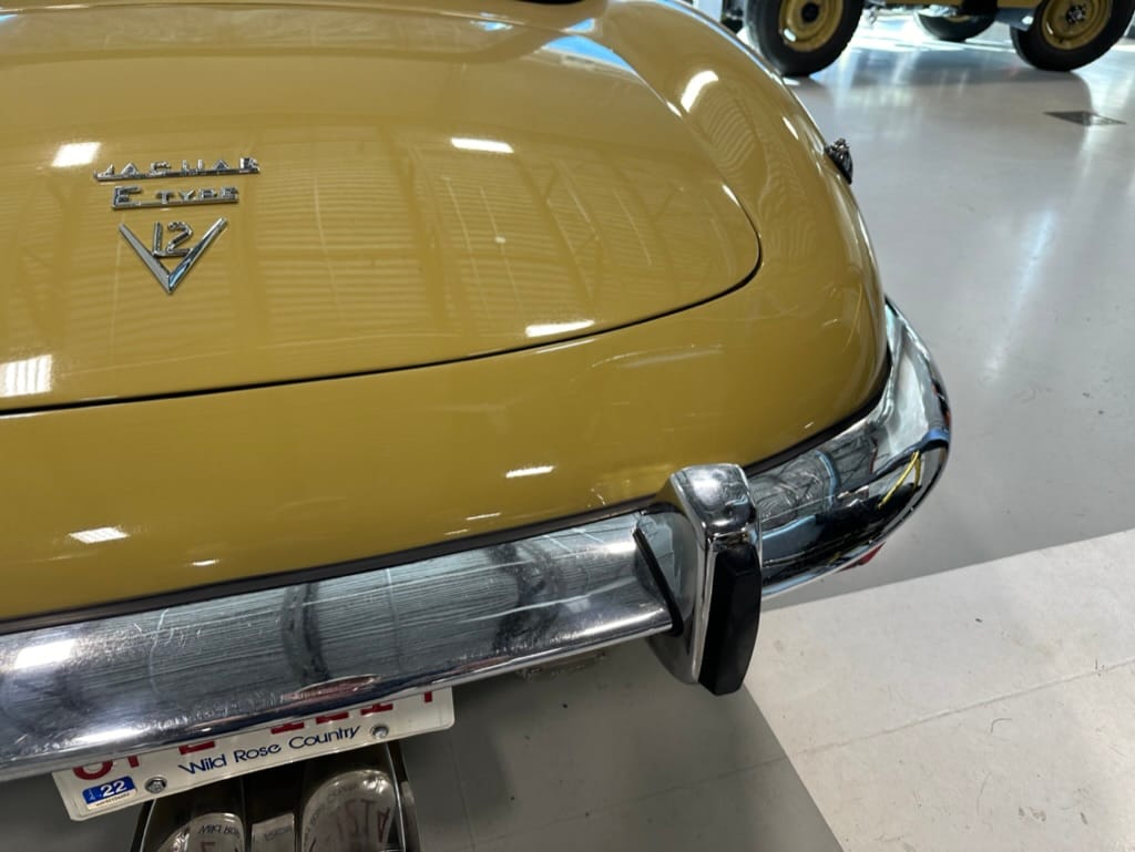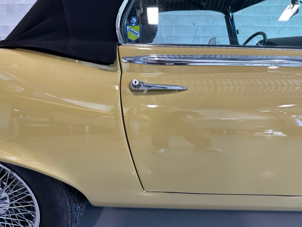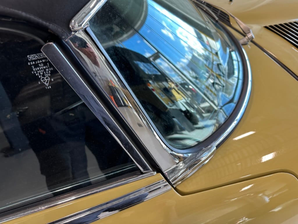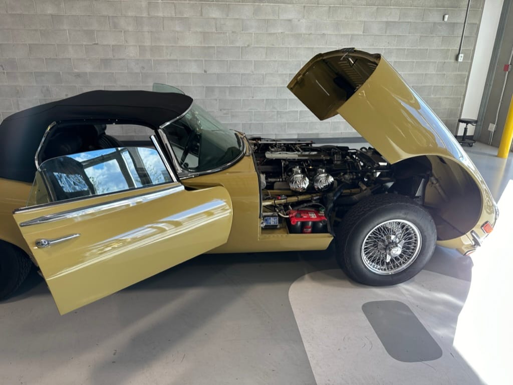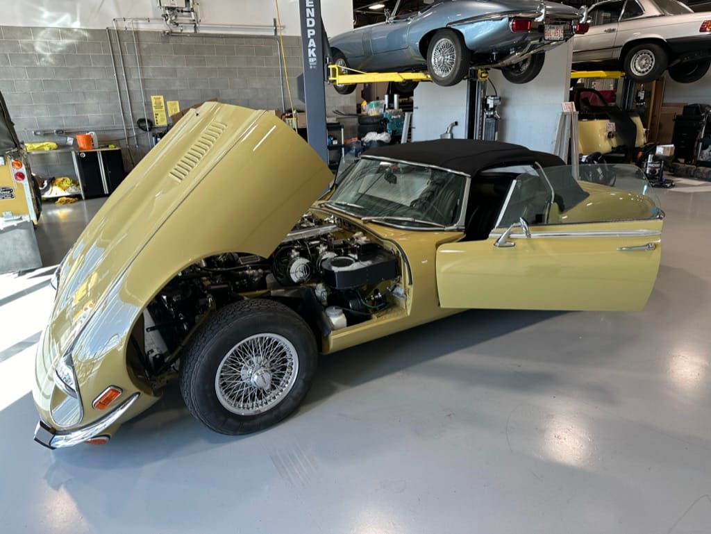 The original olive hides were colour matched by Worldwide Upholstery in California, along with the carpet, and sent to Chinook Upholstery in Calgary who fitted the interior. Dynamat insulation was installed under the carpet. According to the Jaguar Heritage Trust, this was the first LHD E Type S3 to have an Olive interior.