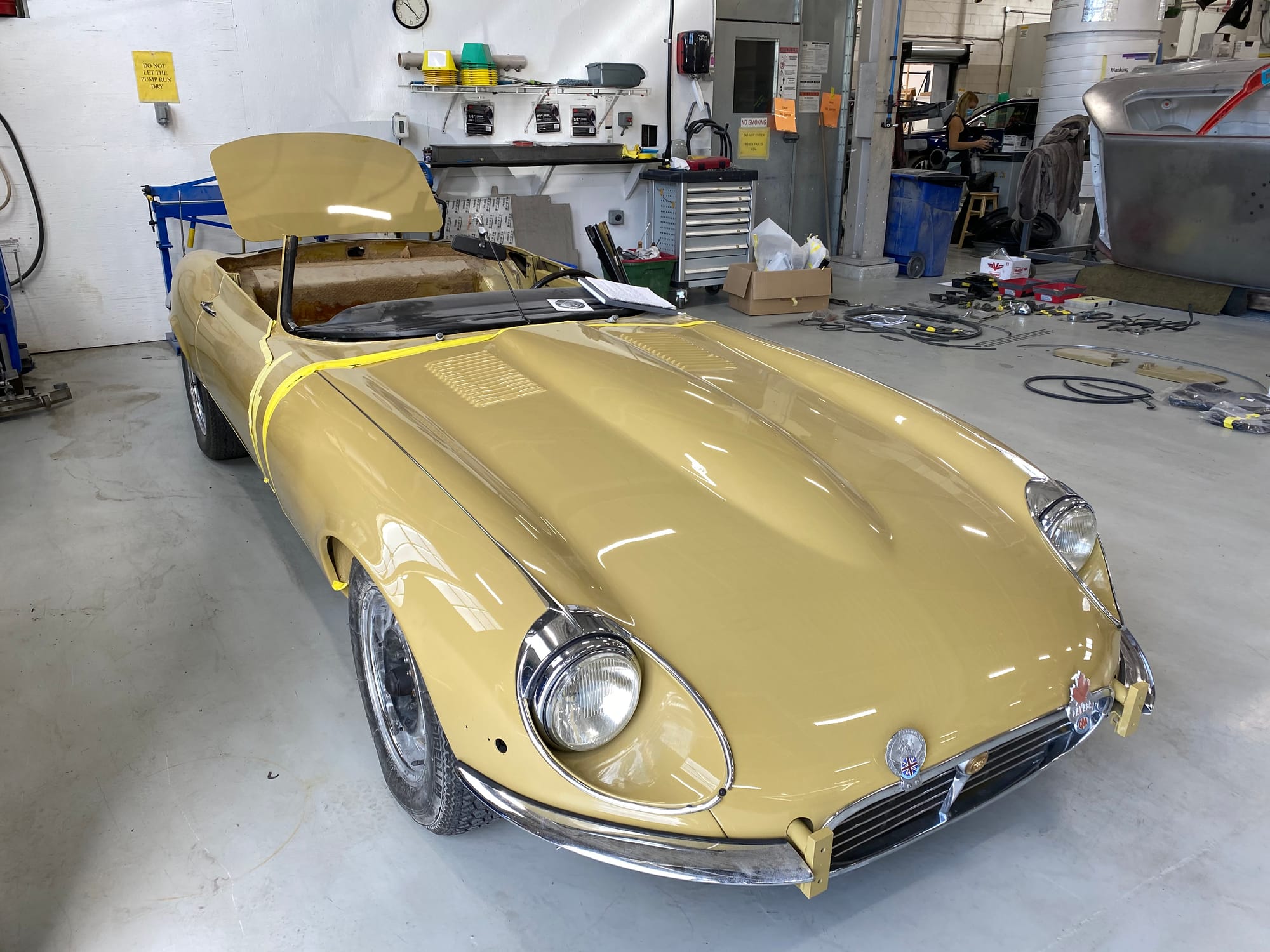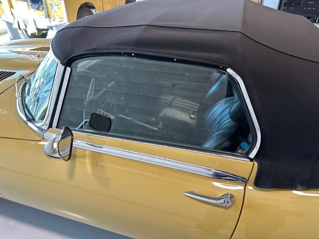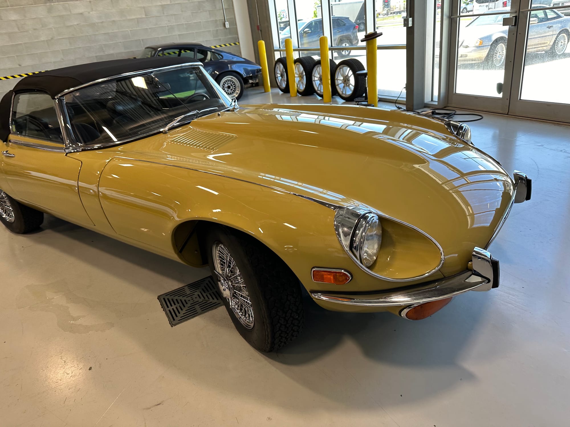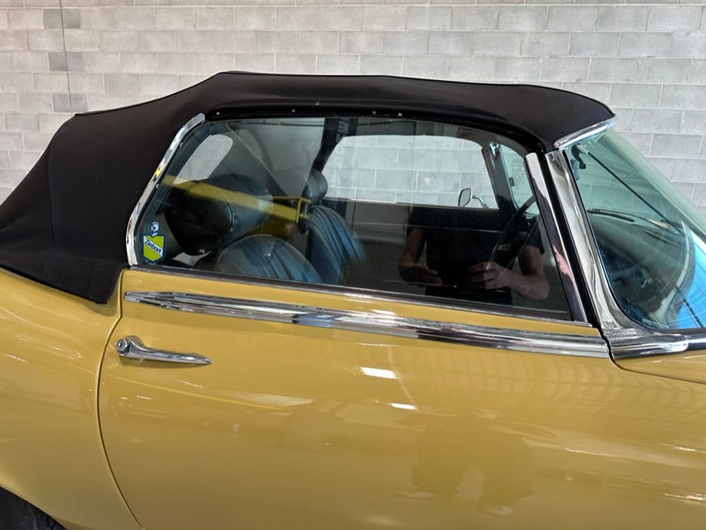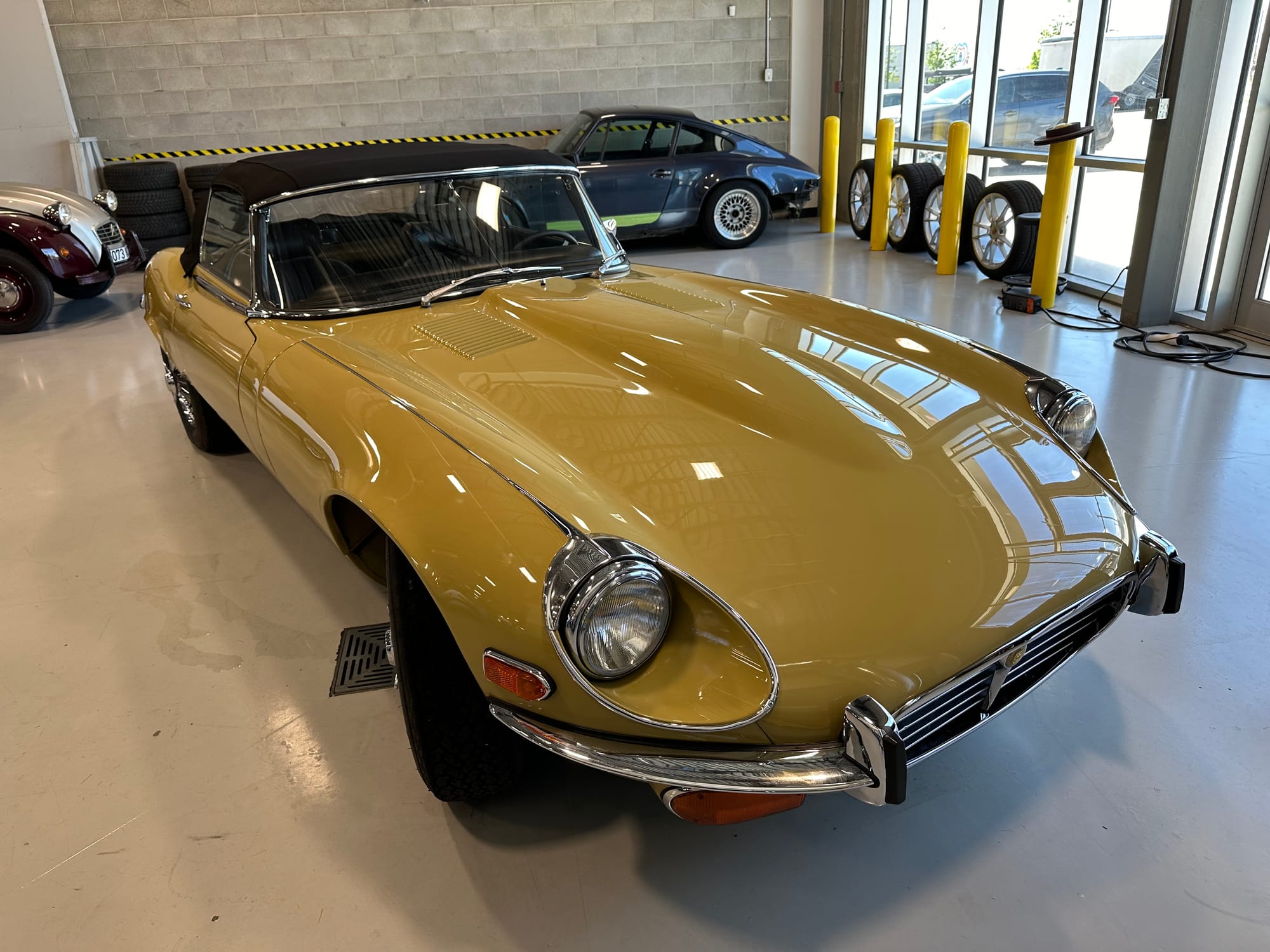The original olive hides were colour matched by Worldwide Upholstery in California, along with the carpet, and sent to Chinook Upholstery in Calgary who fitted the interior. Dynamat insulation was installed under the carpet. According to the Jaguar Heritage Trust, this was the first LHD E Type S3 to have an Olive interior.