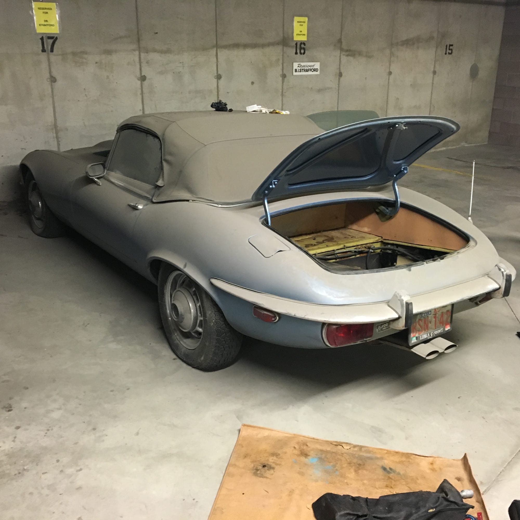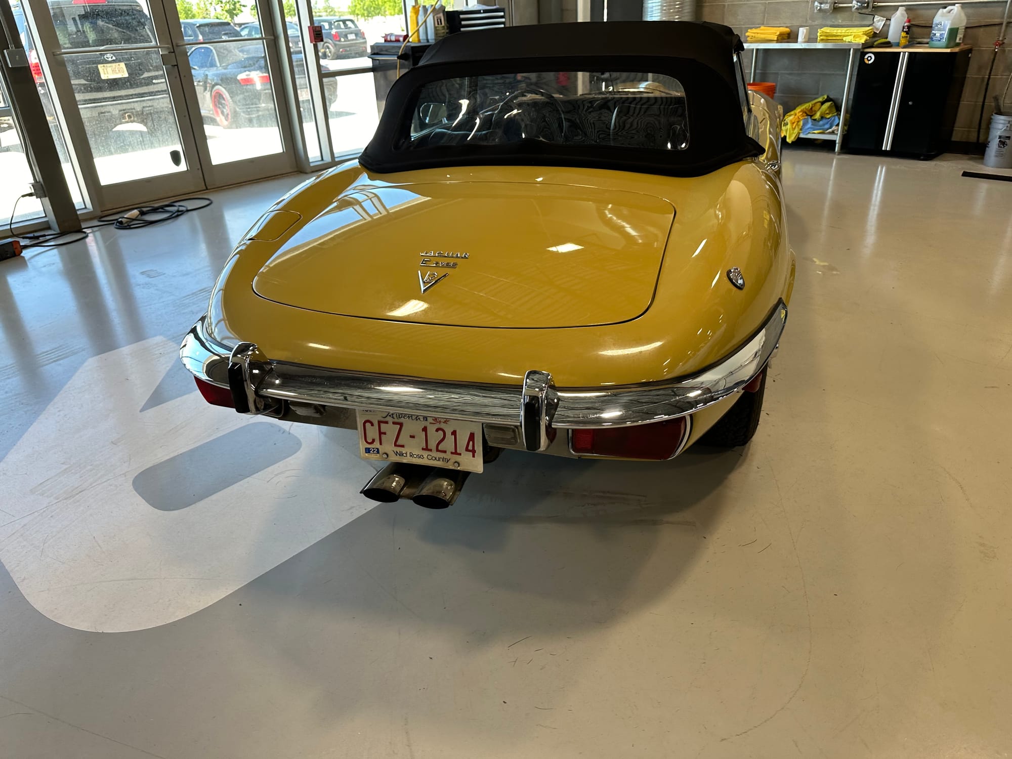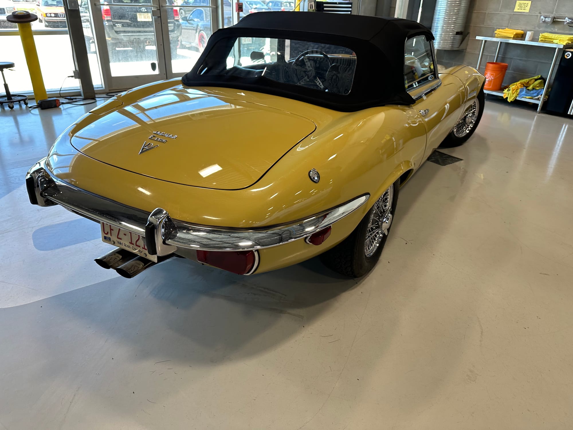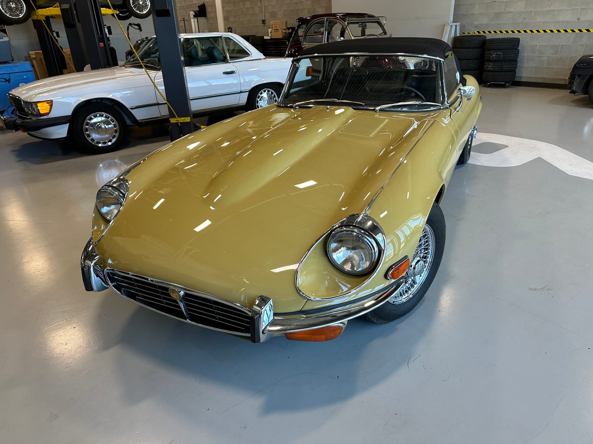 The original olive hides were colour matched by Worldwide Upholstery in California, along with the carpet, and sent to Chinook Upholstery in Calgary who fitted the interior. Dynamat insulation was installed under the carpet. According to the Jaguar Heritage Trust, this was the first LHD E Type S3 to have an Olive interior.