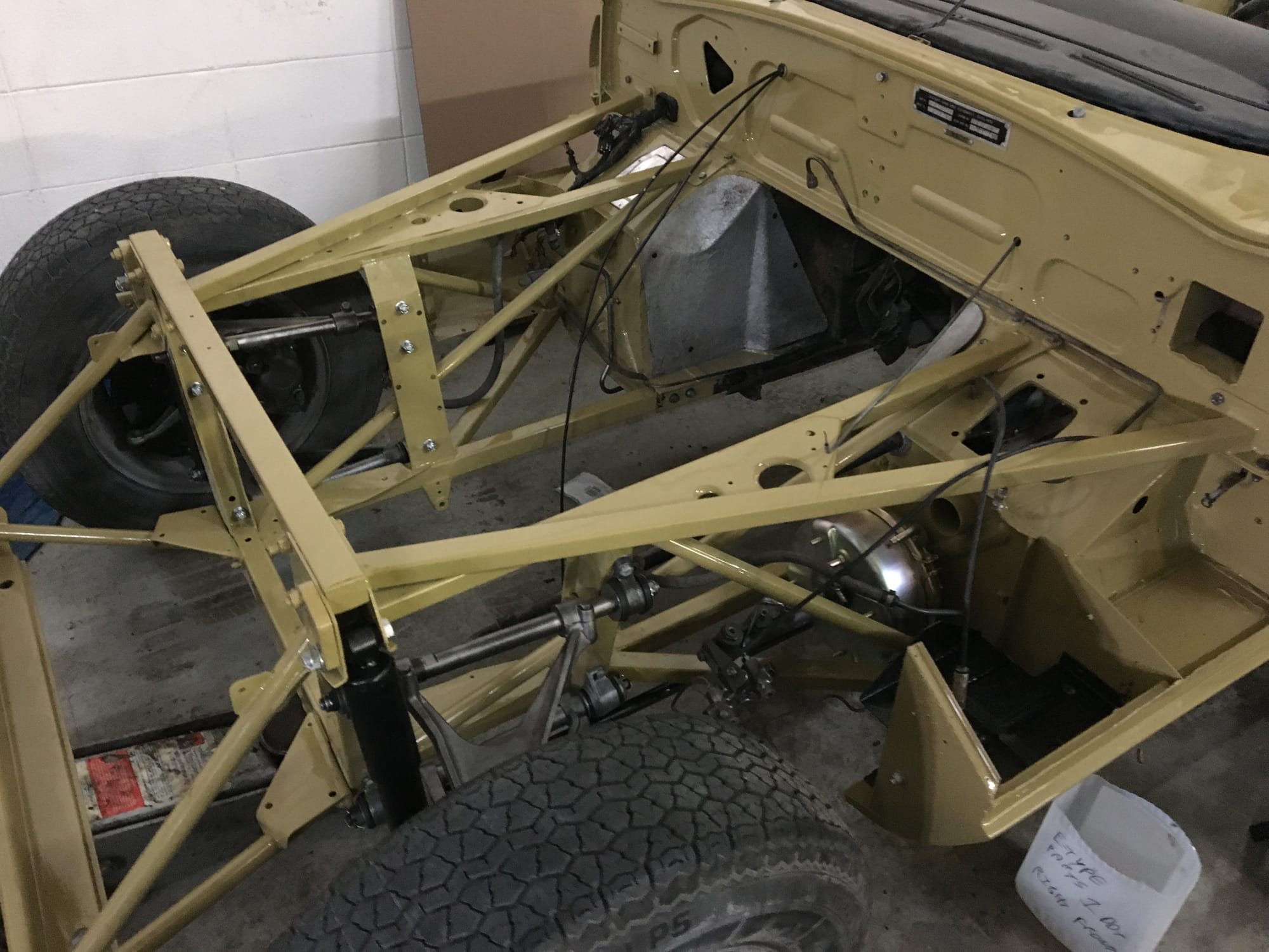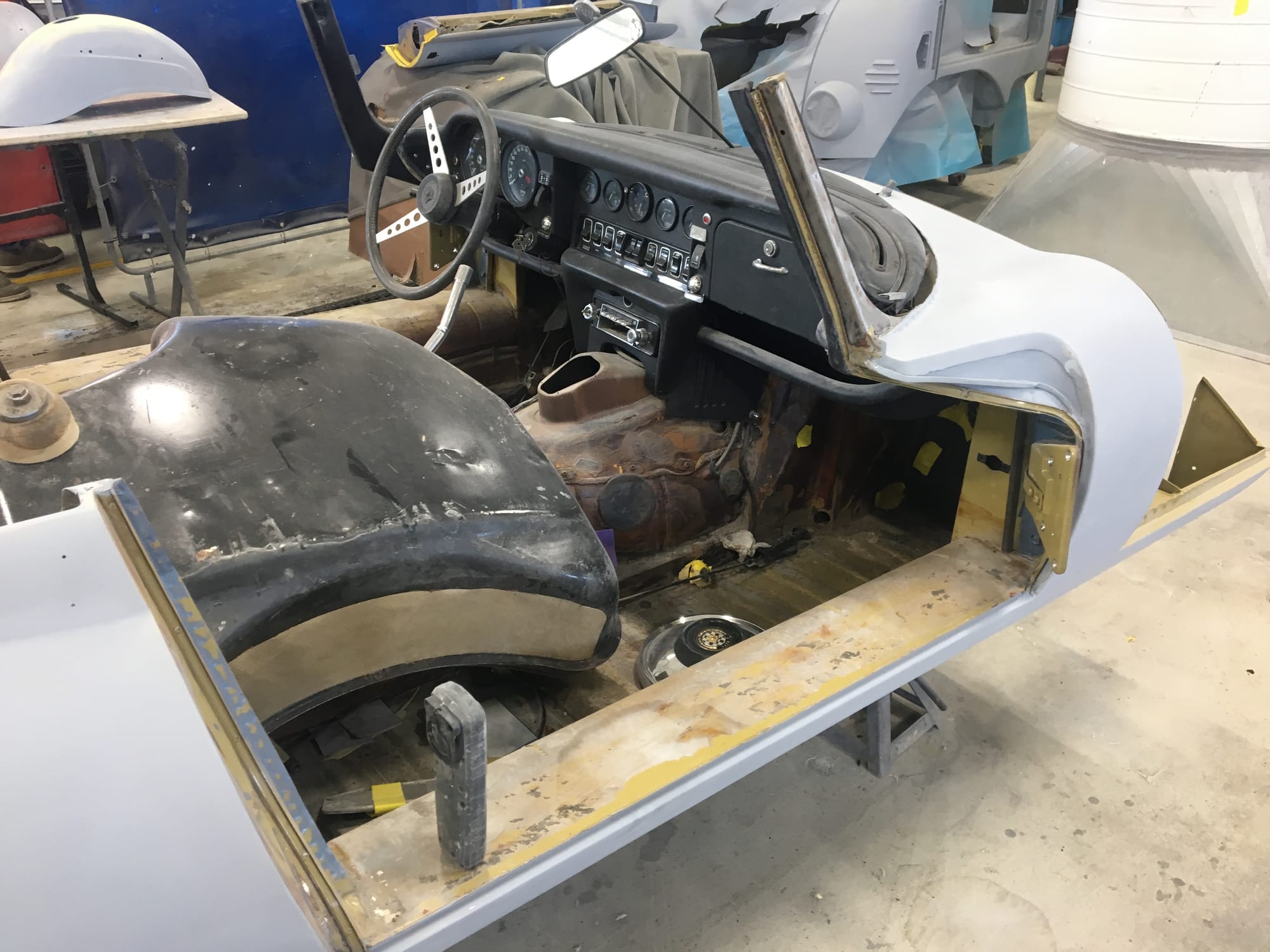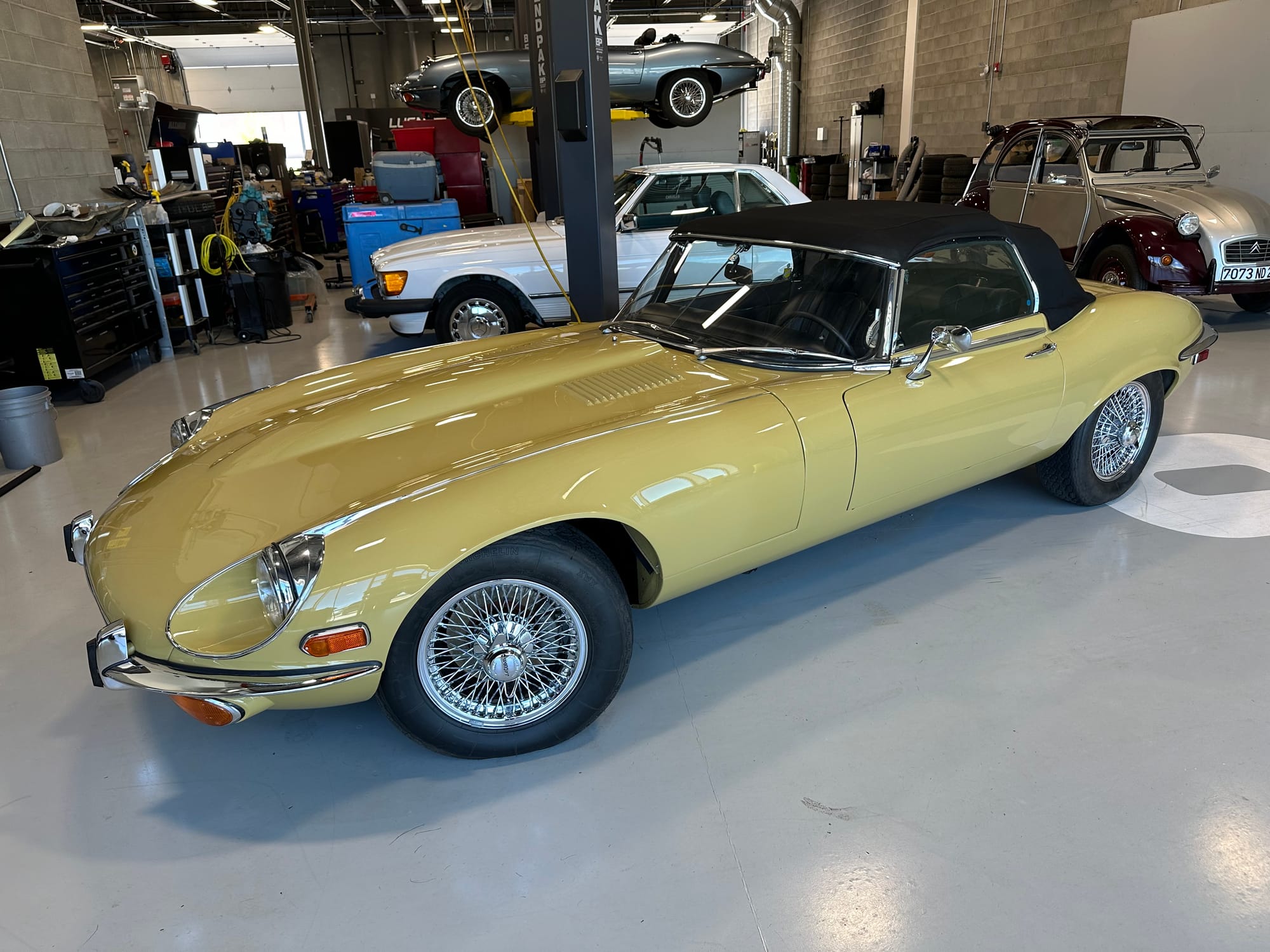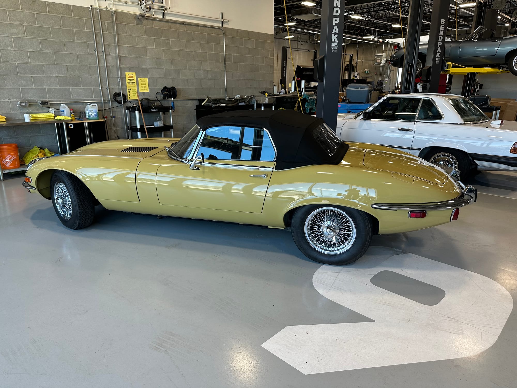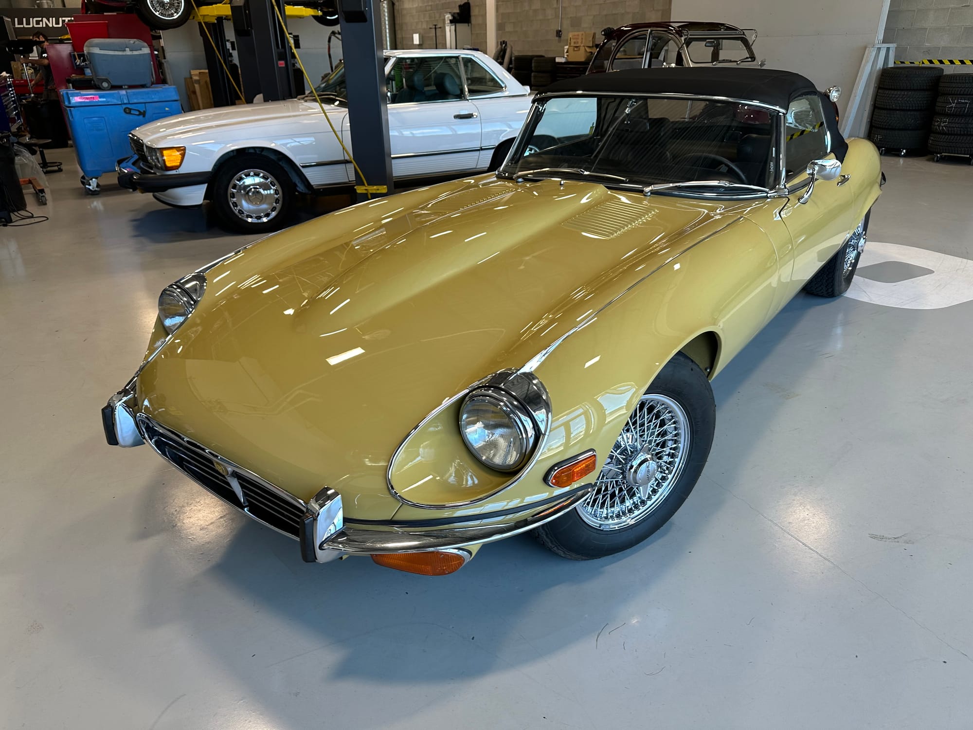 The original olive hides were colour matched by Worldwide Upholstery in California, along with the carpet, and sent to Chinook Upholstery in Calgary who fitted the interior. Dynamat insulation was installed under the carpet. According to the Jaguar Heritage Trust, this was the first LHD E Type S3 to have an Olive interior.