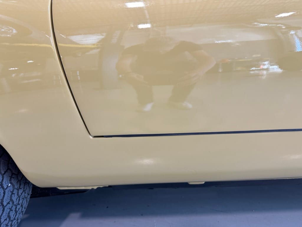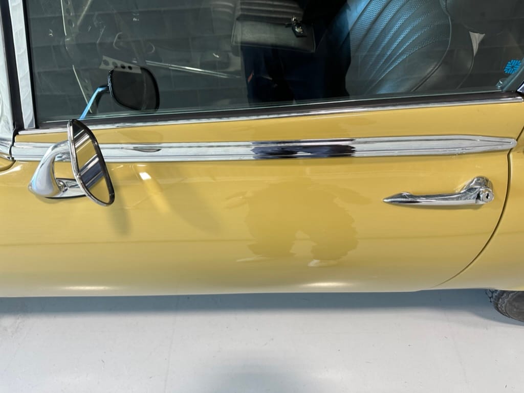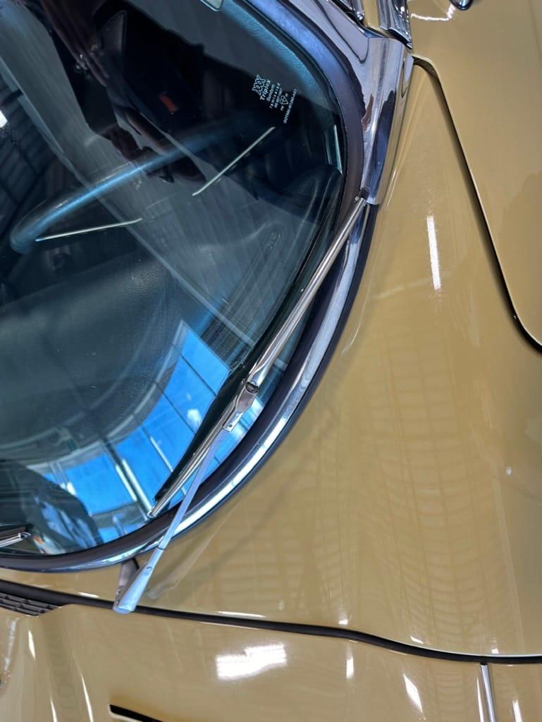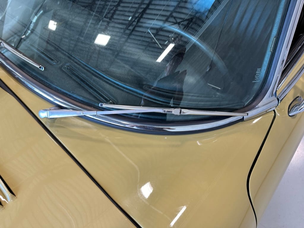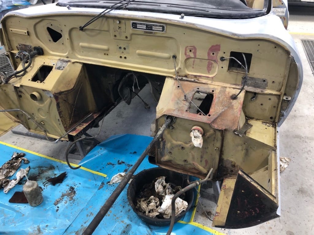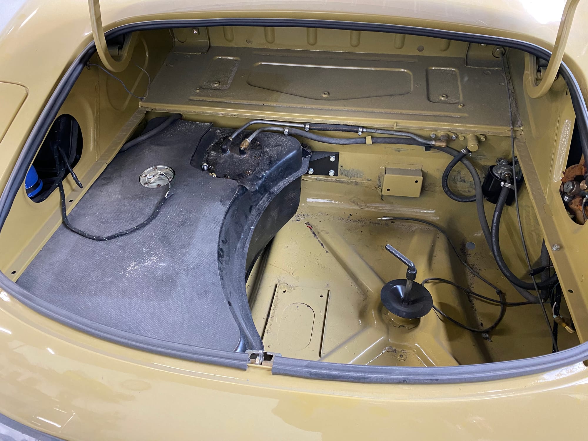 The car had a few isolated patches of rust caused by plugged drain tubes. It was stipped to bare metal and sent to Lyle at Rods n'Restos for repair to the trunk and rear fenders. Cosmos Collision, under the careful attention of Loc Ngo, repainted the car in the original Greensand hue.