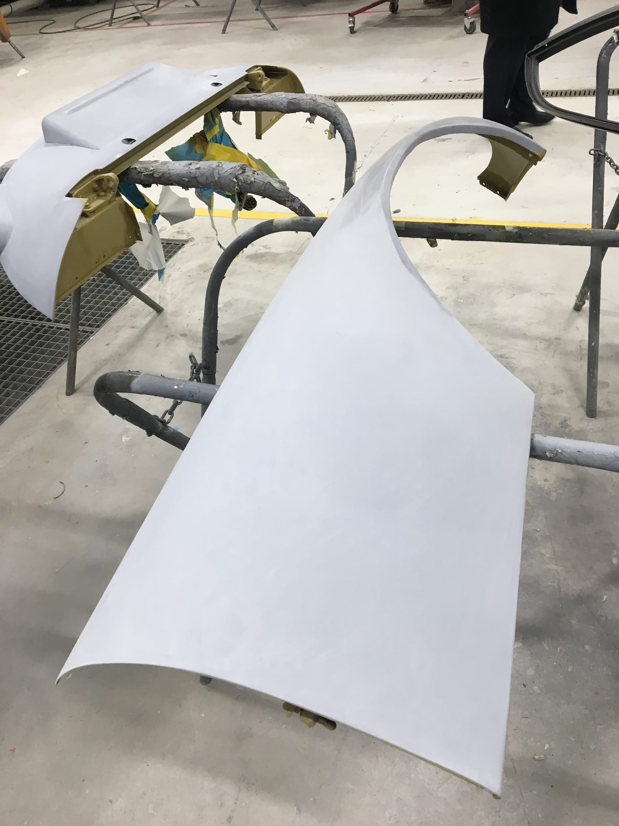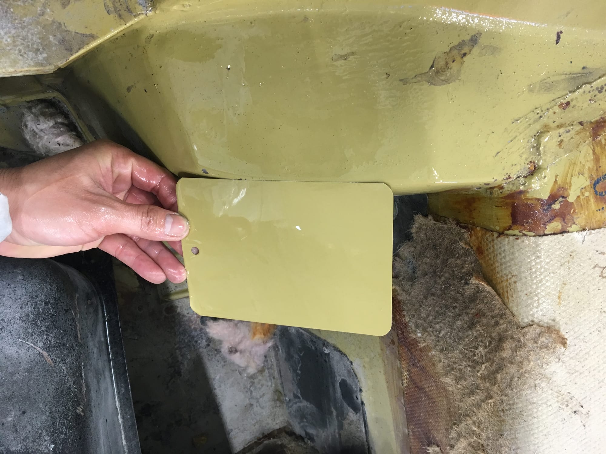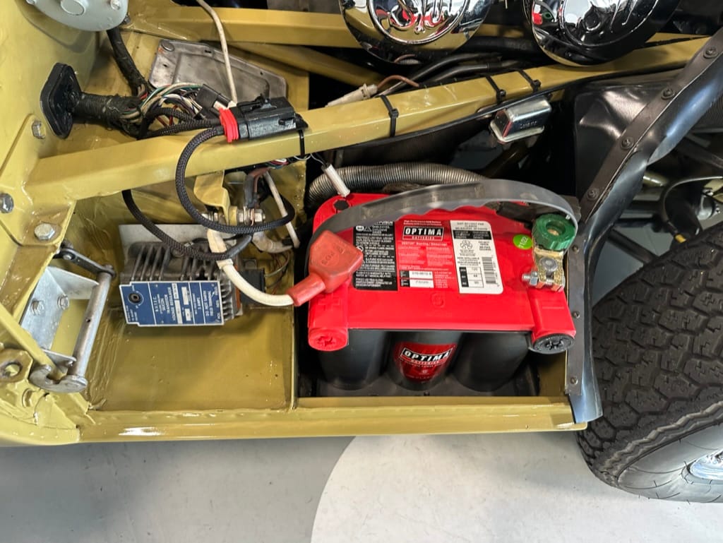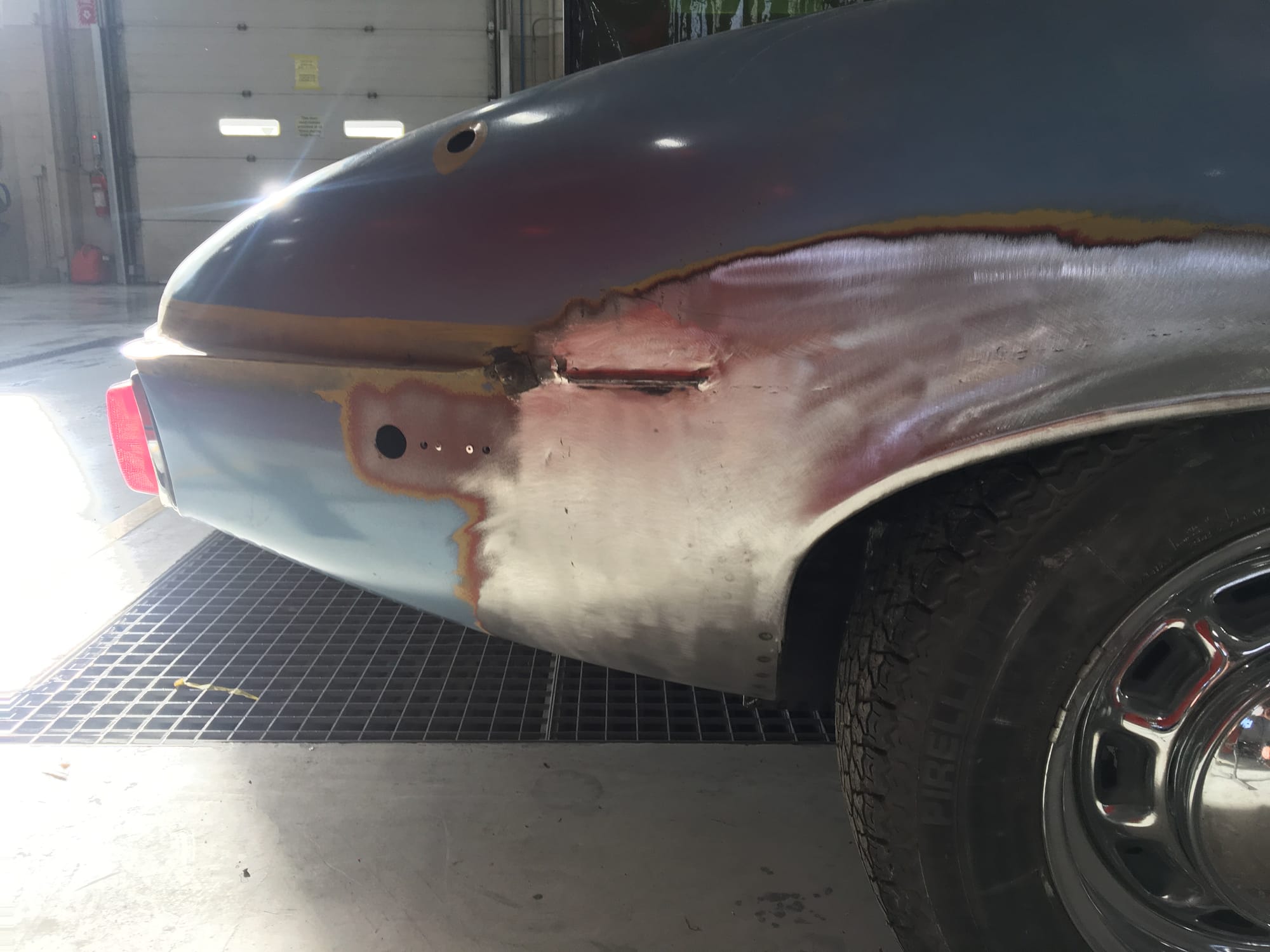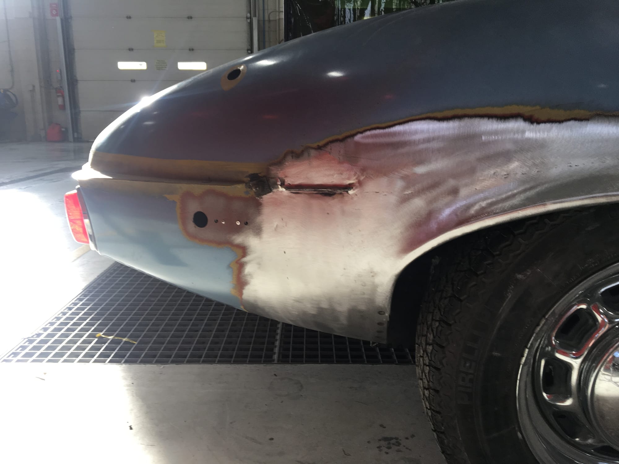 The car had a few isolated patches of rust caused by plugged drain tubes. It was stipped to bare metal and sent to Lyle at Rods n'Restos for repair to the trunk and rear fenders. Cosmos Collision, under the careful attention of Loc Ngo, repainted the car in the original Greensand hue.