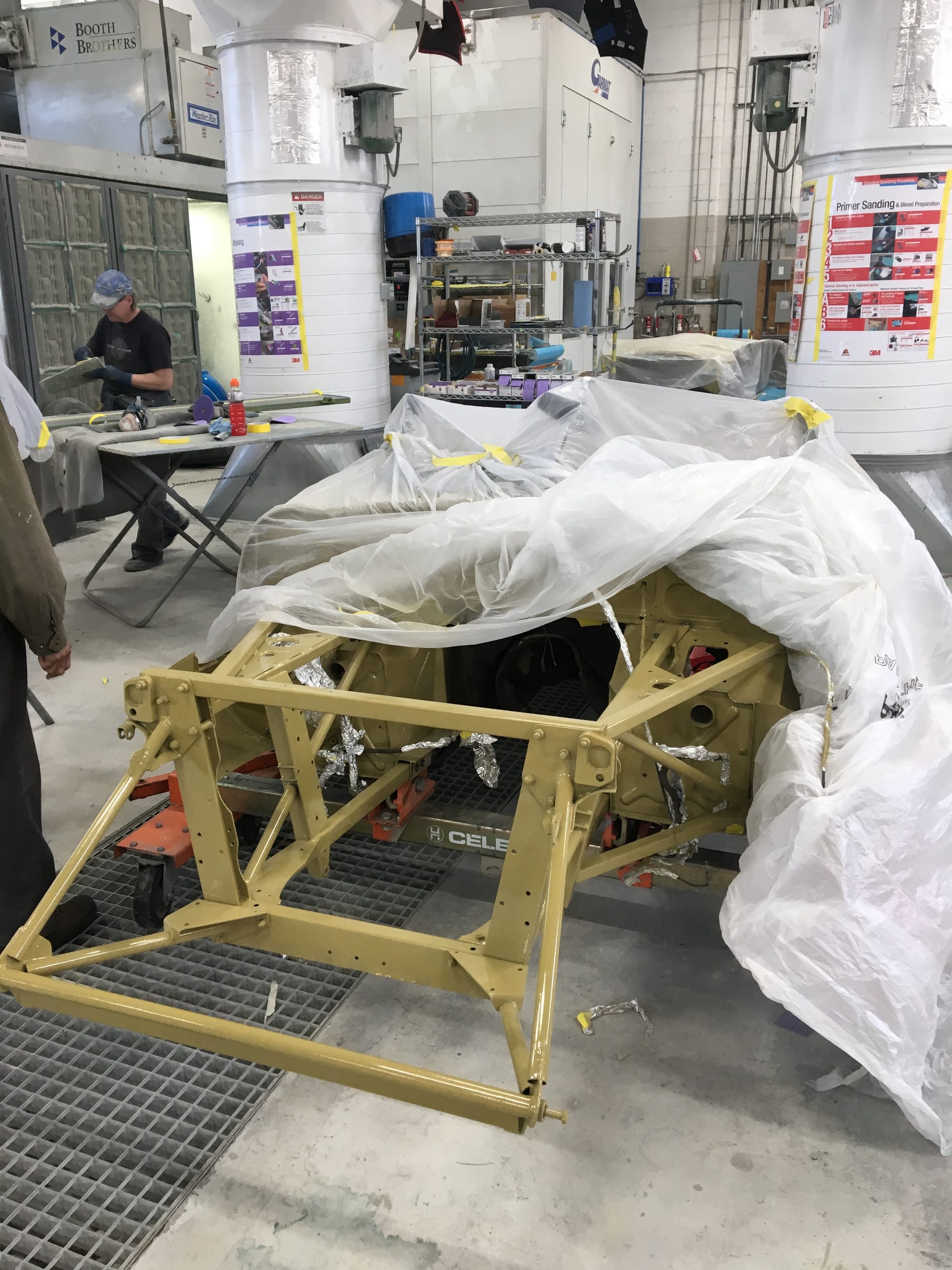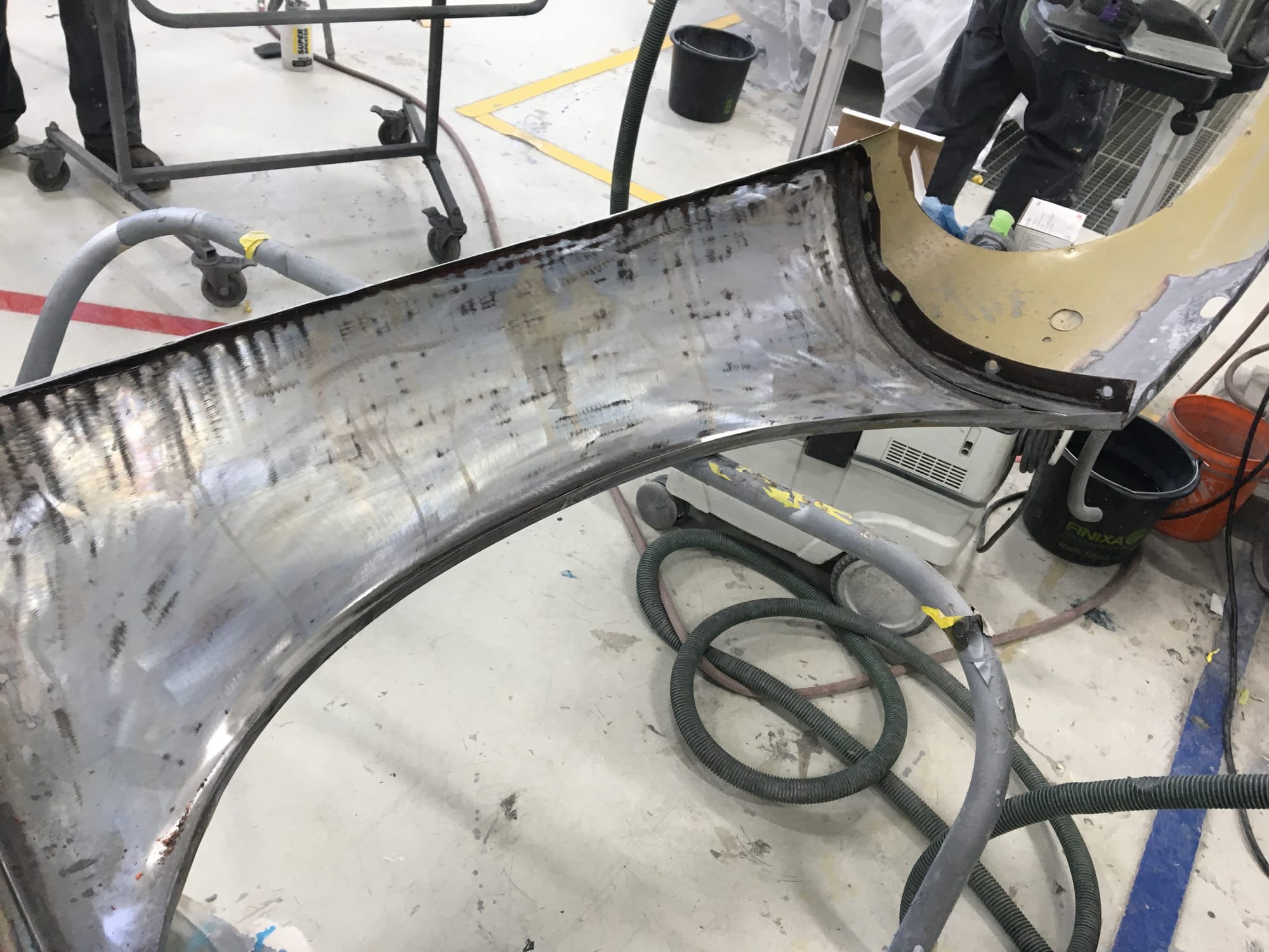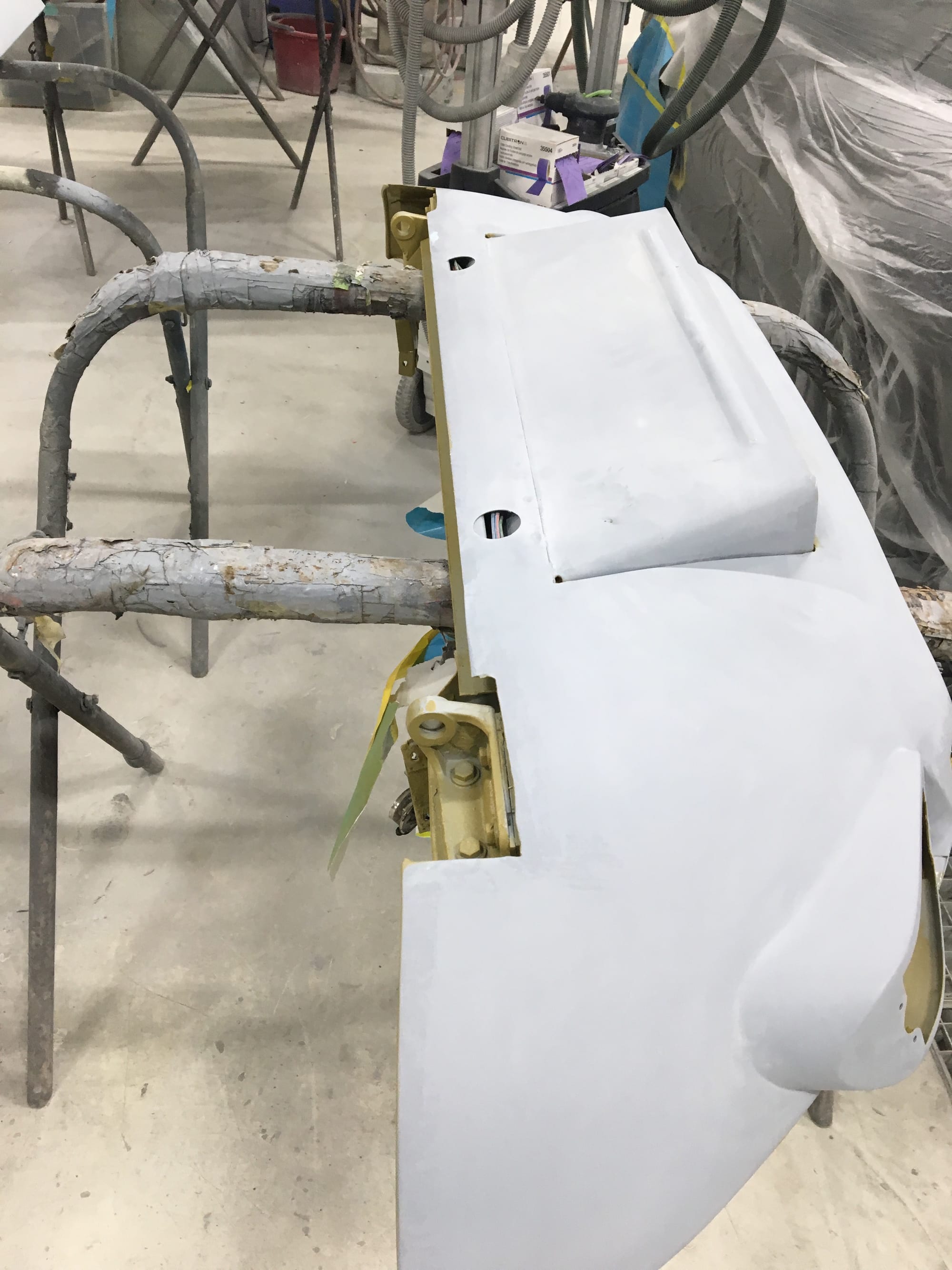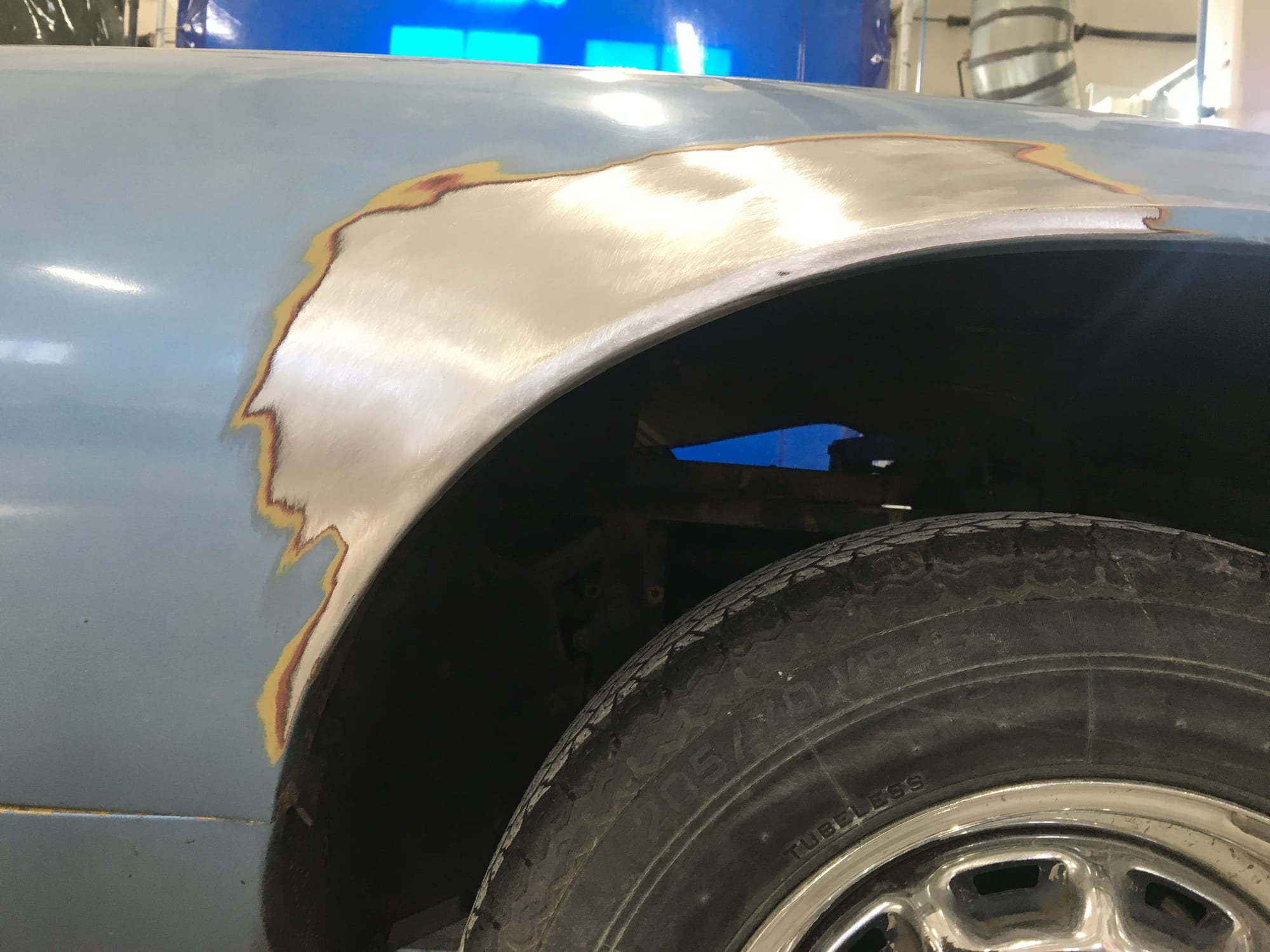 The car had a few isolated patches of rust caused by plugged drain tubes. It was stipped to bare metal and sent to Lyle at Rods n'Restos for repair to the trunk and rear fenders. Cosmos Collision, under the careful attention of Loc Ngo, repainted the car in the original Greensand hue.