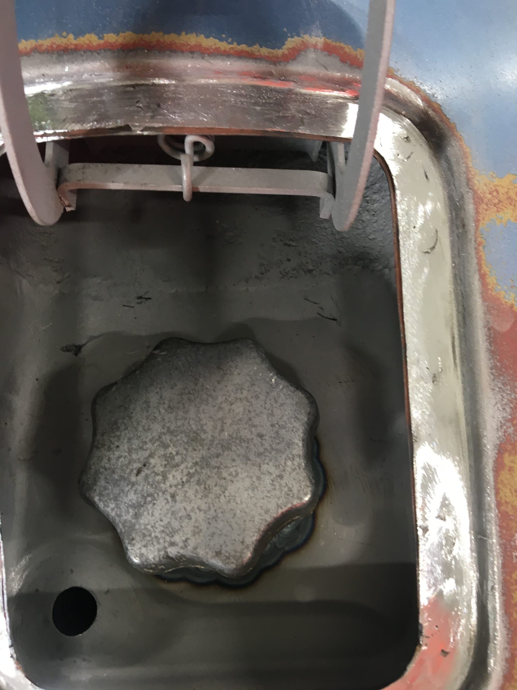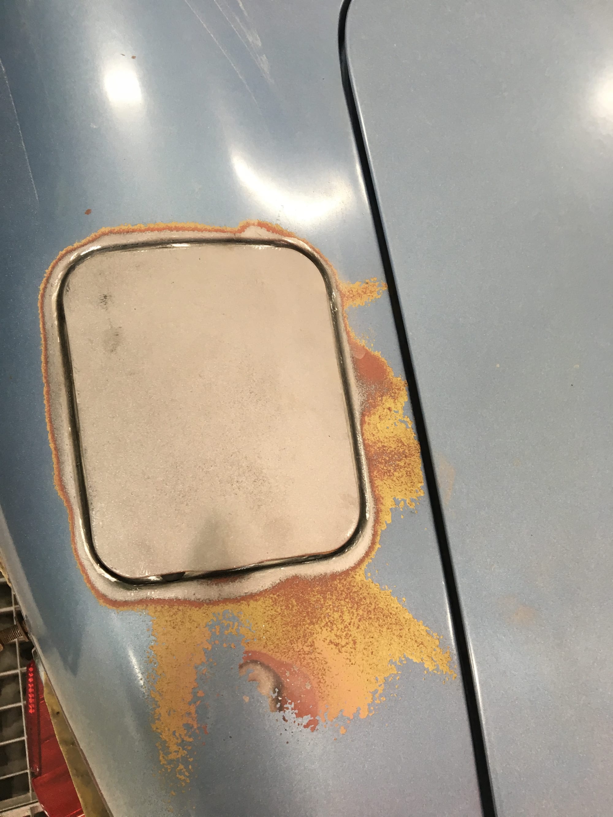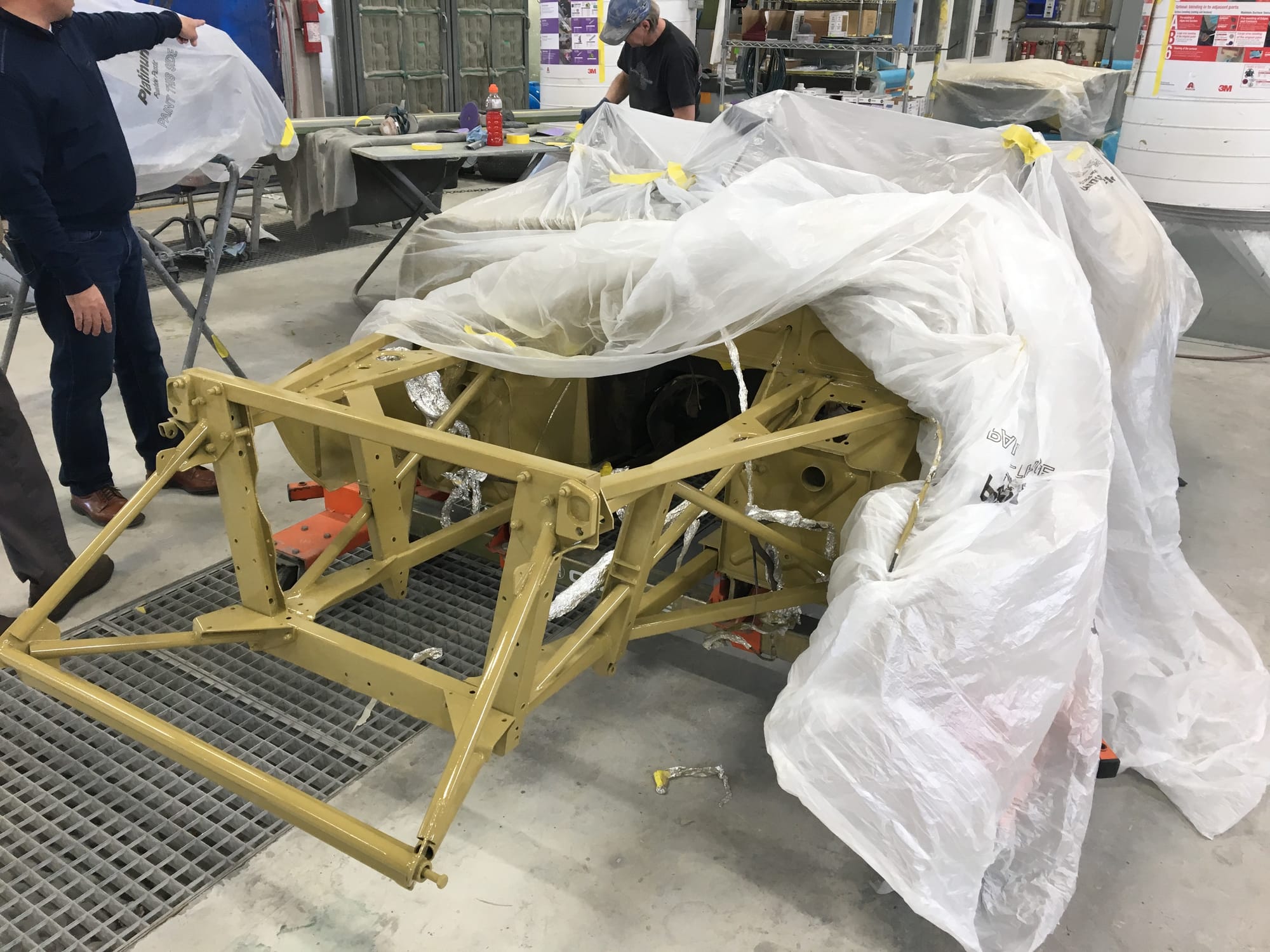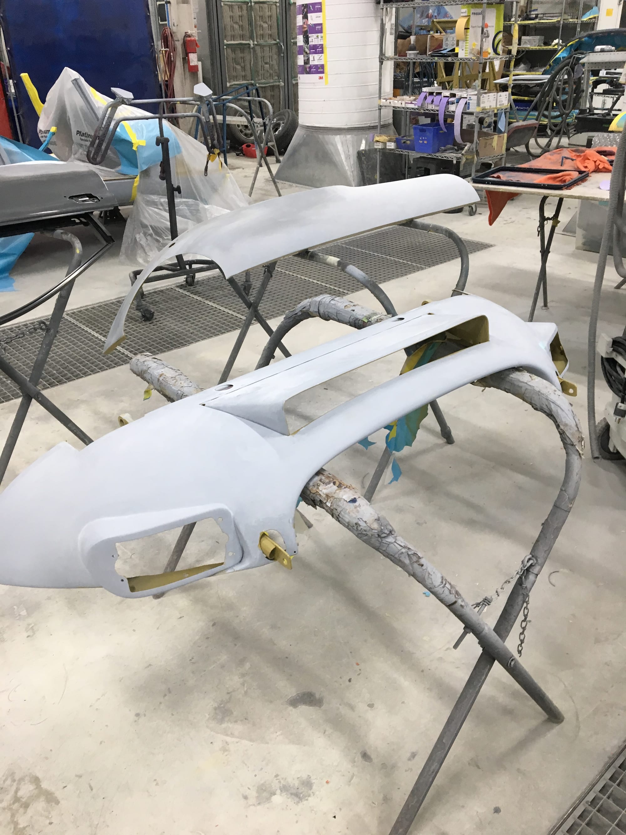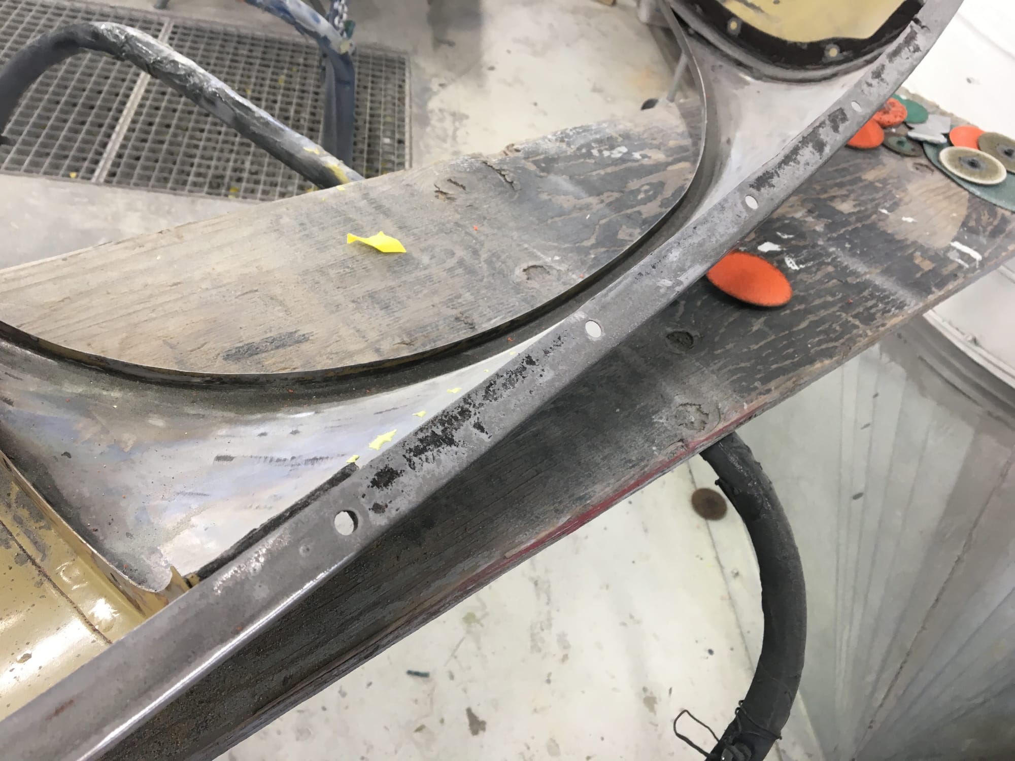 The car had a few isolated patches of rust caused by plugged drain tubes. It was stipped to bare metal and sent to Lyle at Rods n'Restos for repair to the trunk and rear fenders. Cosmos Collision, under the careful attention of Loc Ngo, repainted the car in the original Greensand hue.