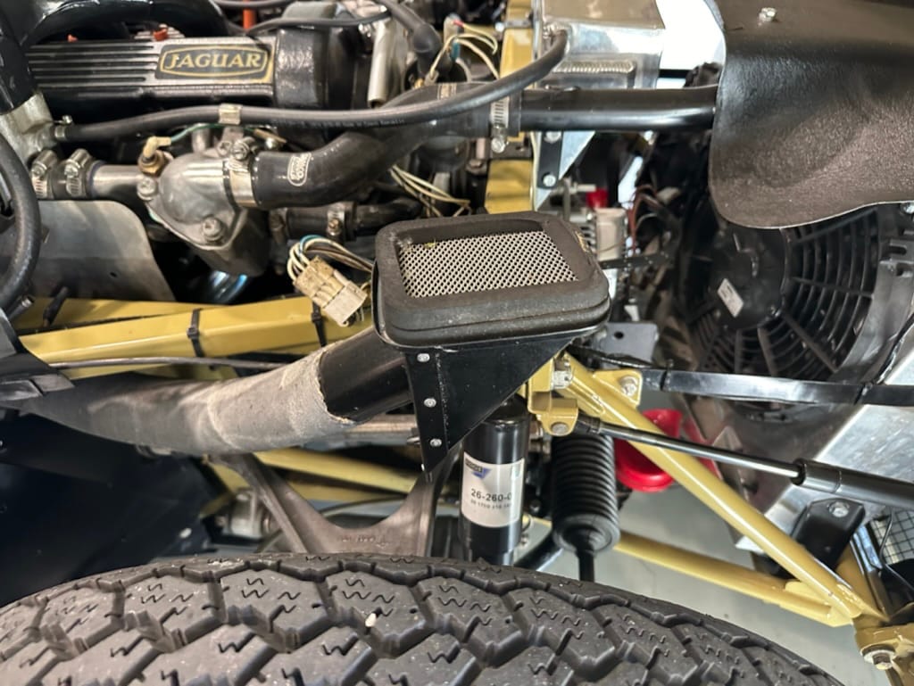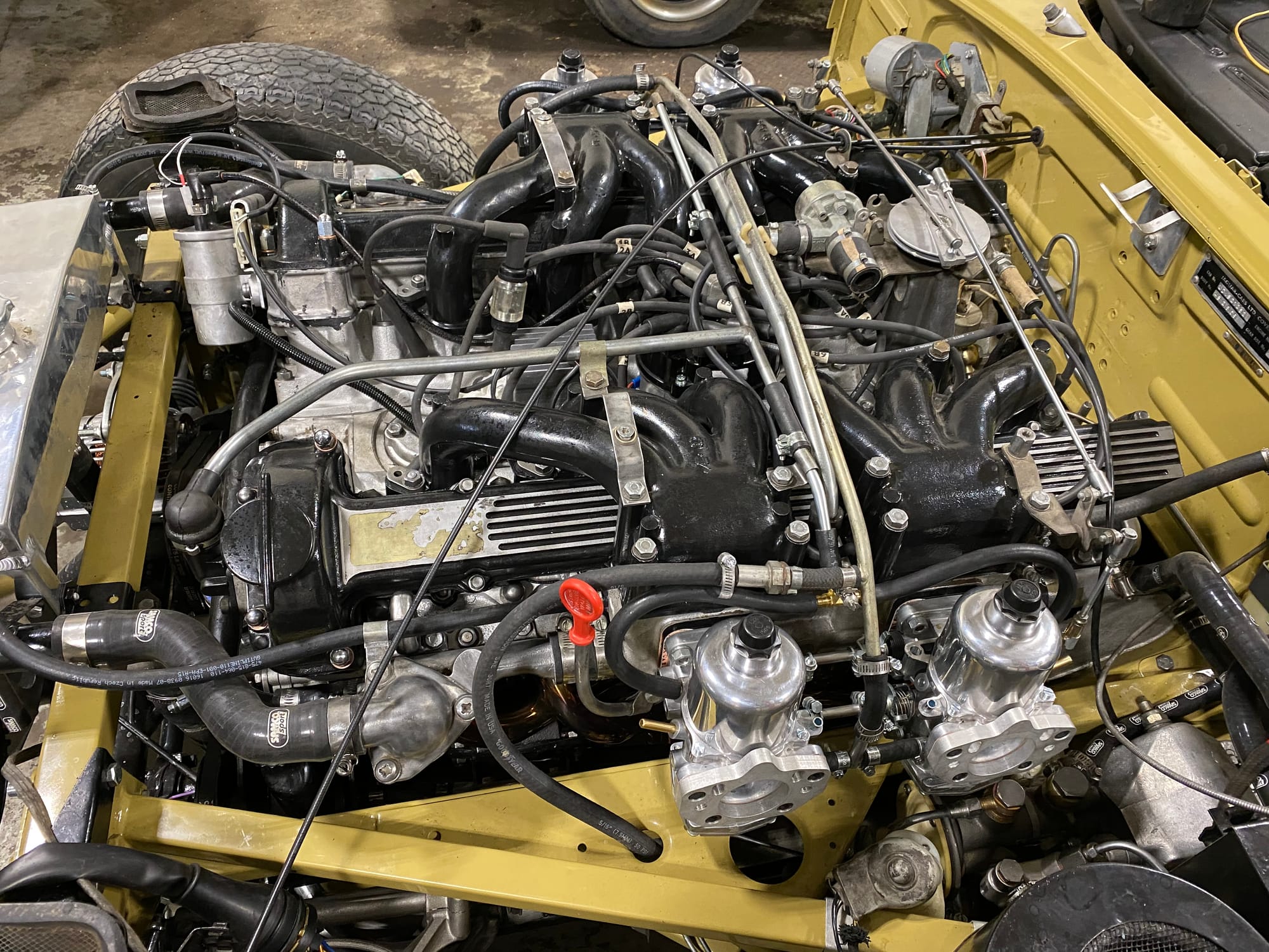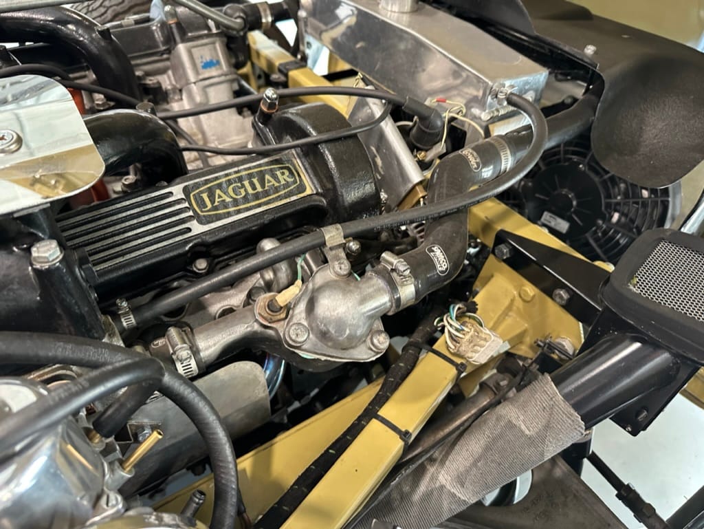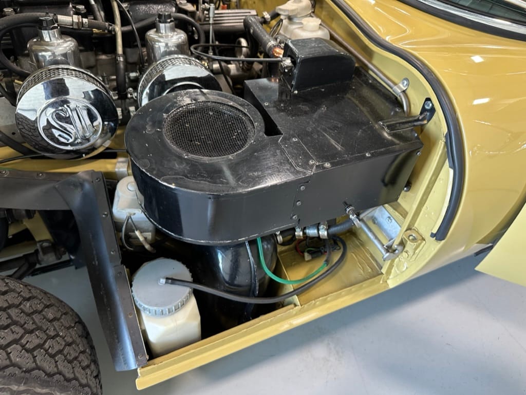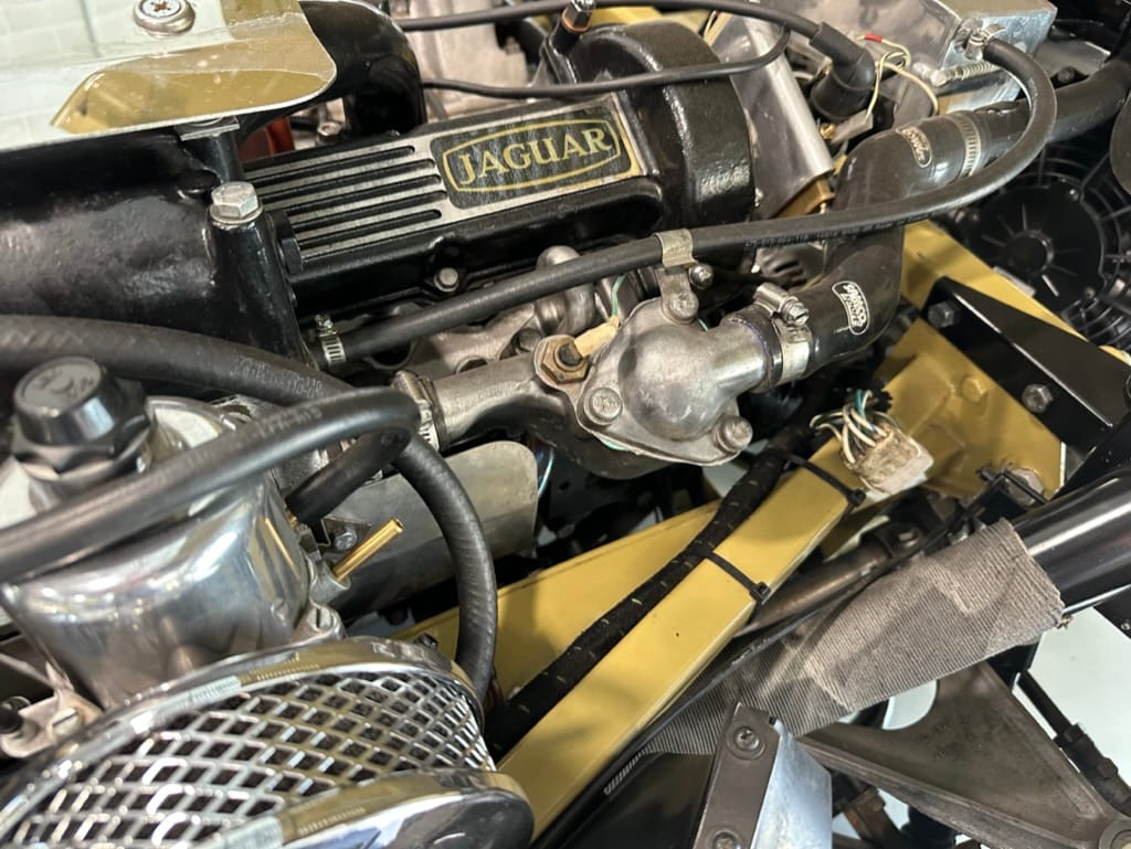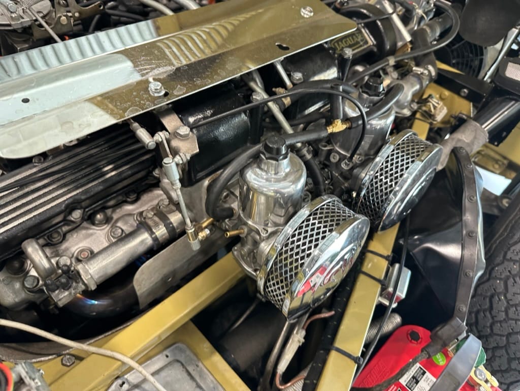 Mechanical work and assembly was done by Asit at XJ Motors in Calgary with the final tuning done by Dale Walmsley and Craig Talbot at Lugntuz. Sympathetic upgrades including a change to 4 SU carburettors, stainless steel headers and exhaust, large capacity aluminum radiator with twin electric fans and a high capacity starter motor.