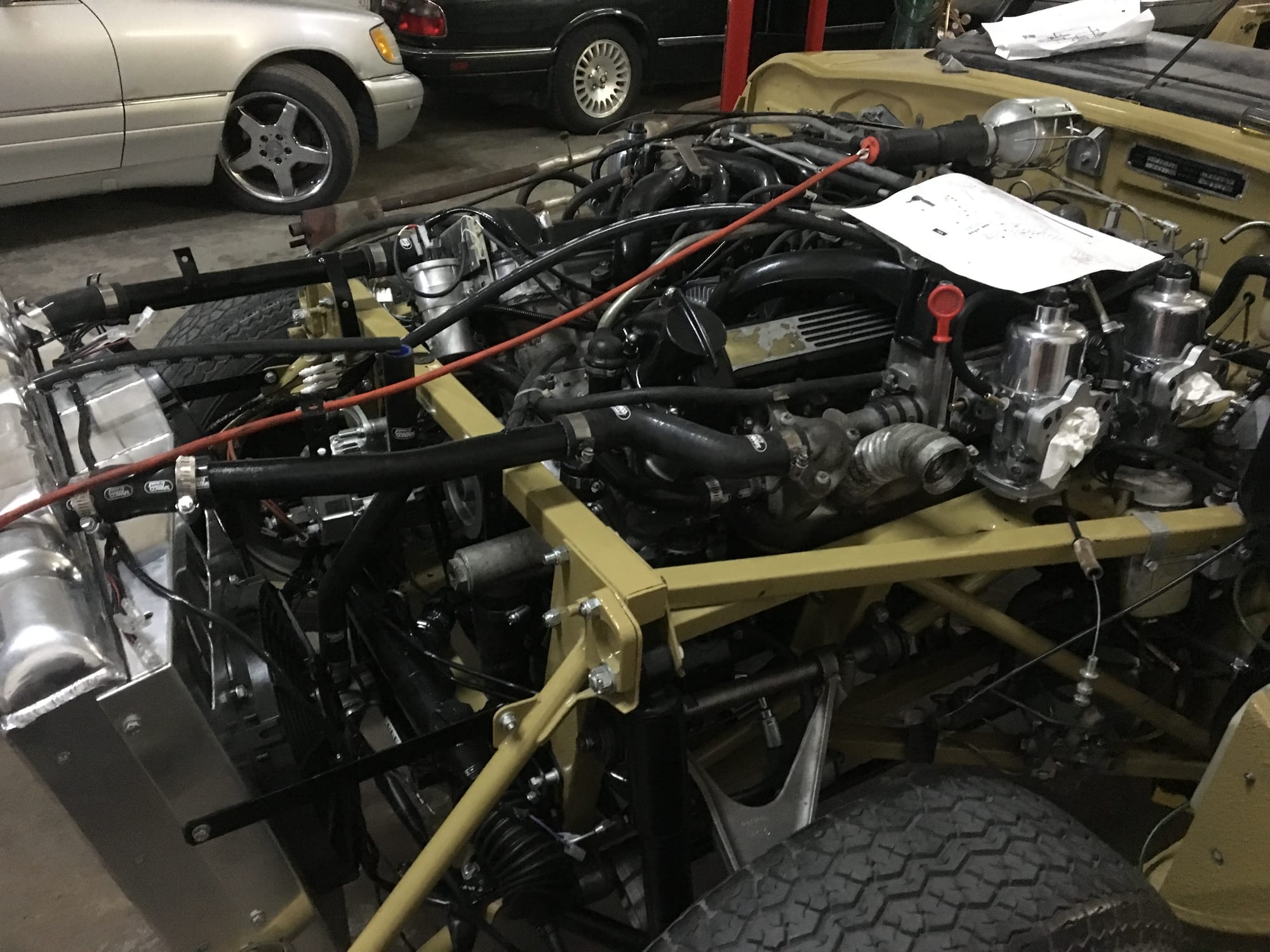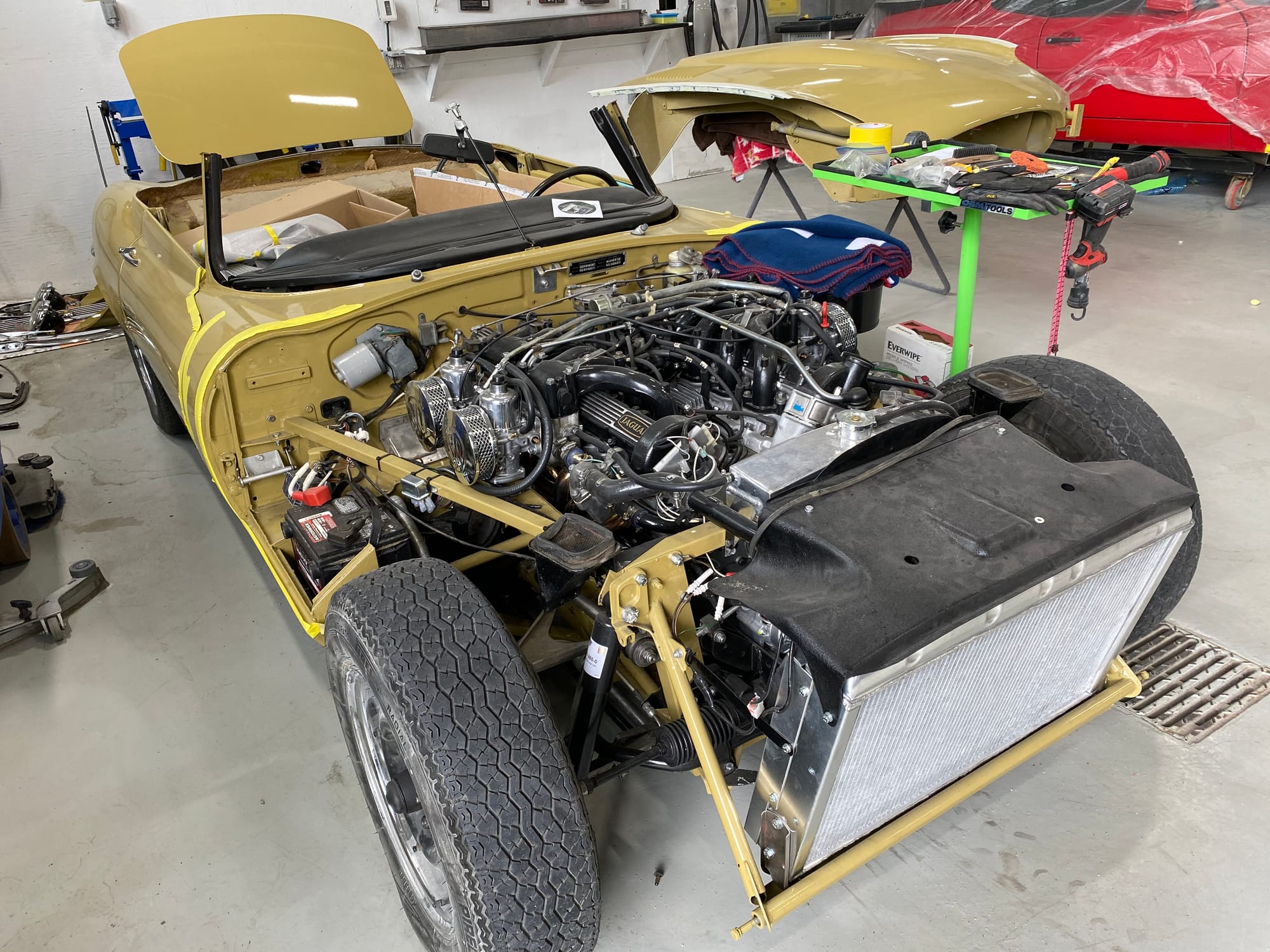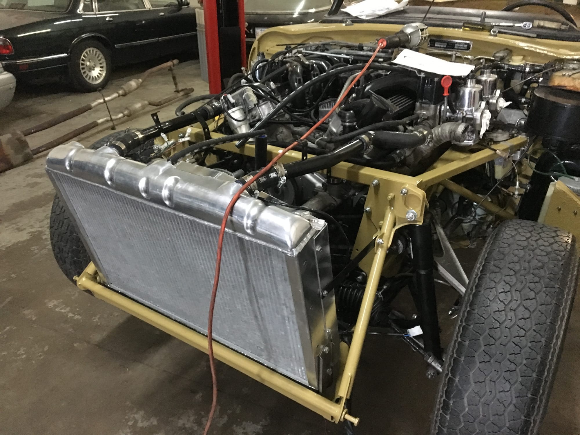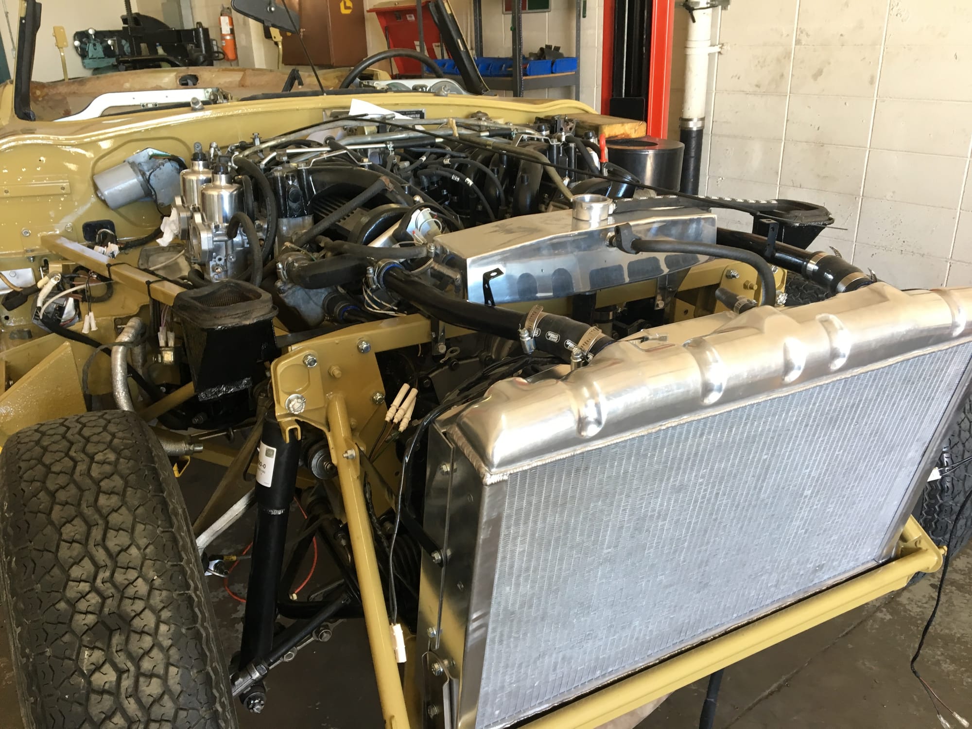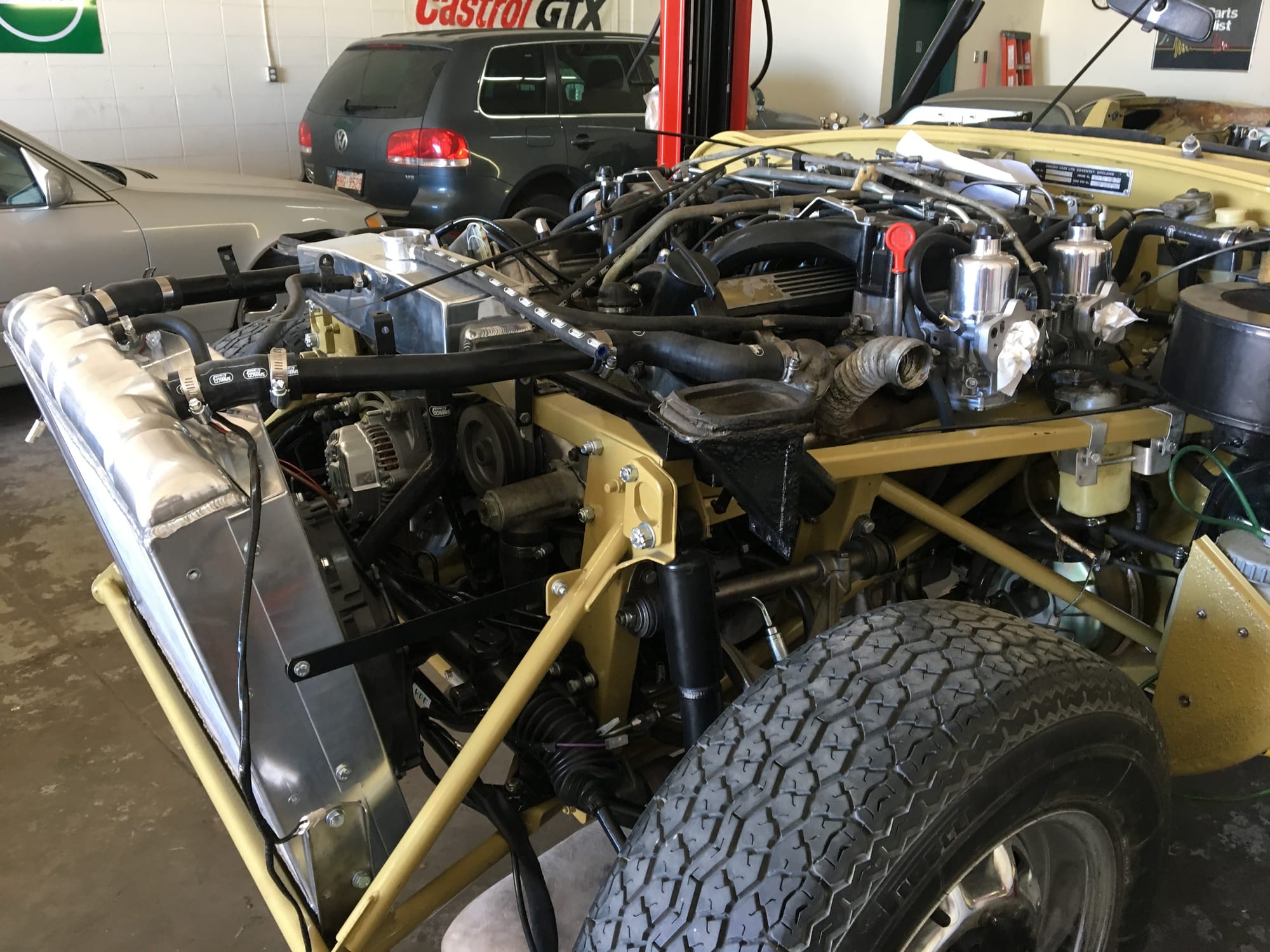 Mechanical work and assembly was done by Asit at XJ Motors in Calgary with the final tuning done by Dale Walmsley and Craig Talbot at Lugntuz. Sympathetic upgrades including a change to 4 SU carburettors, stainless steel headers and exhaust, large capacity aluminum radiator with twin electric fans and a high capacity starter motor.