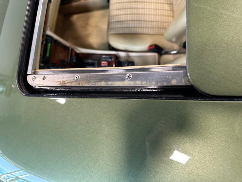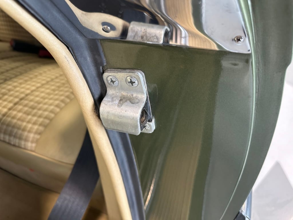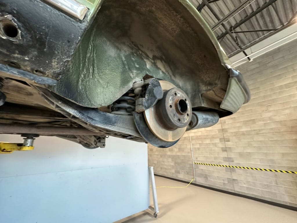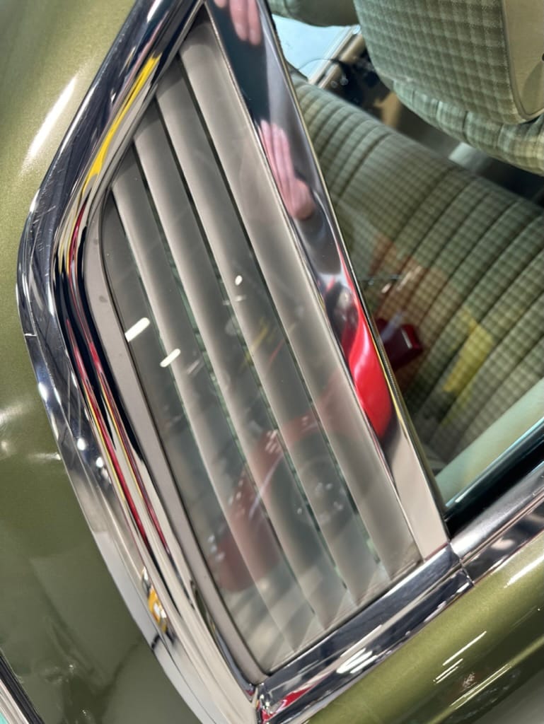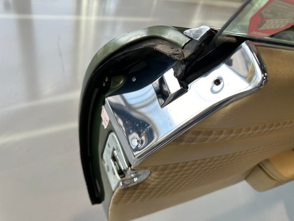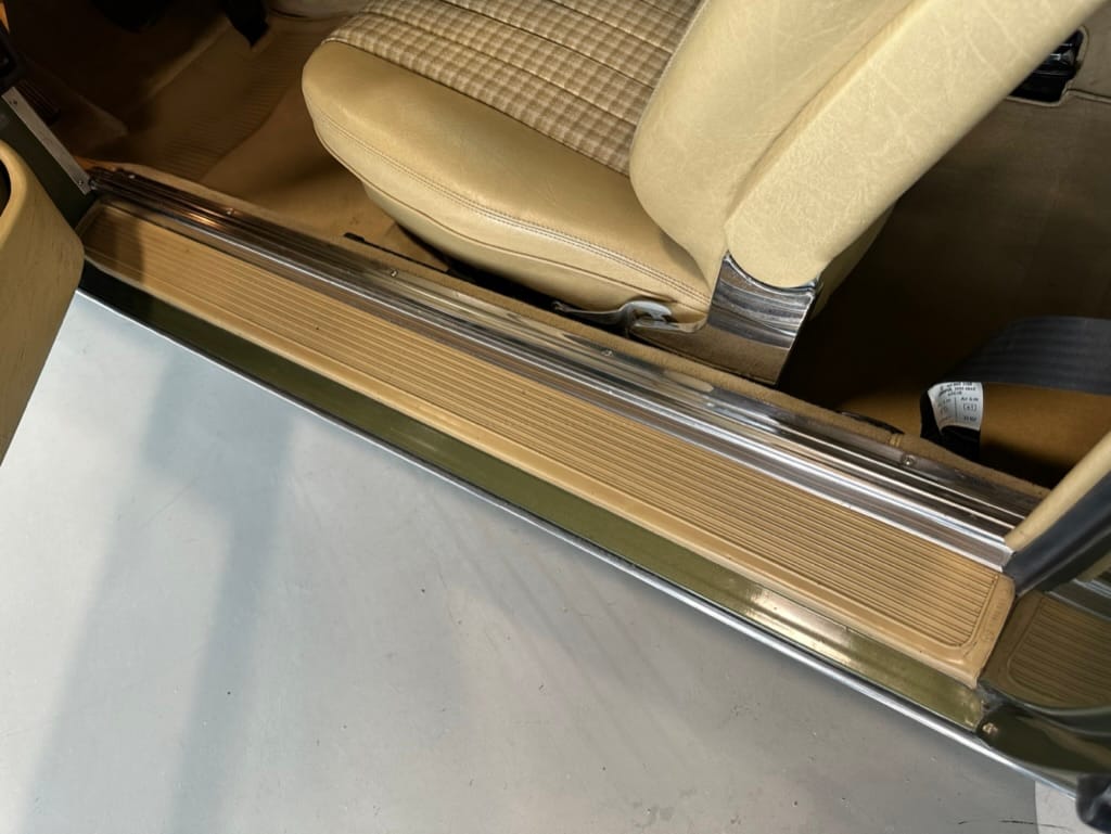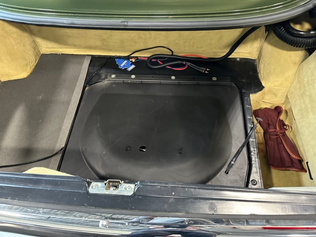 The car retains most of its original Cypress Green Metallic paint, though the drivers side front and rear fenders have been refinished; the front fender in Europe and the rear fender in Alberta during the current ownership (a scratch was fixed from a garage incident). A paint meter report is shown in the YouTube video. The car is not rusted and has a very clean undercarriage.