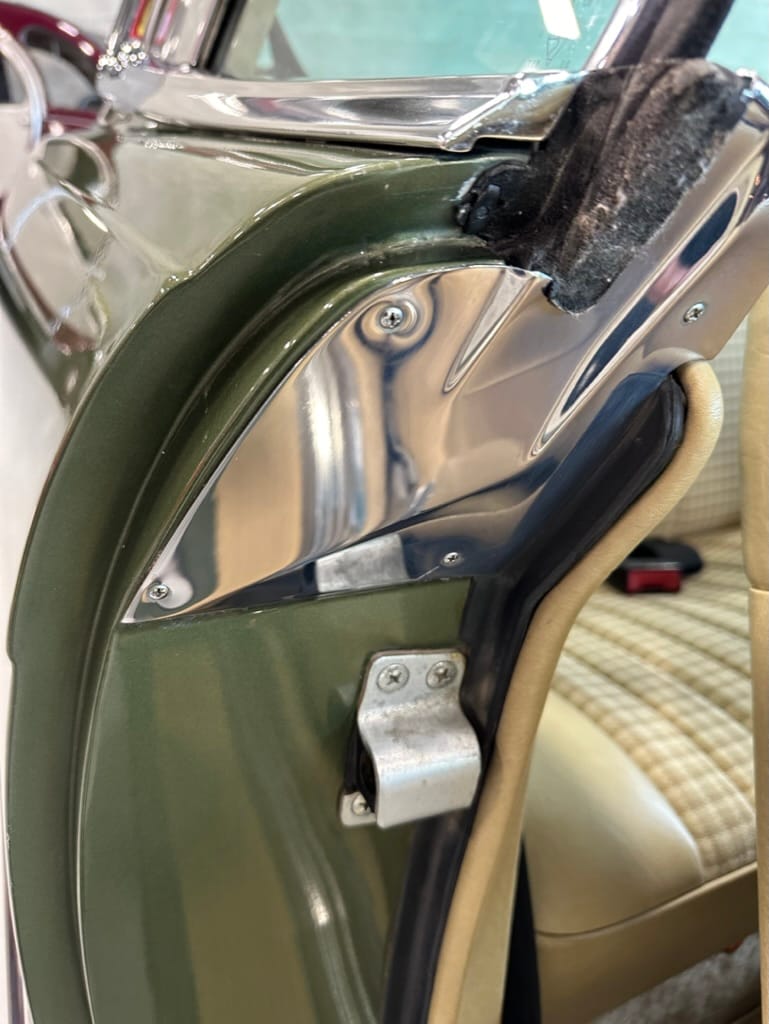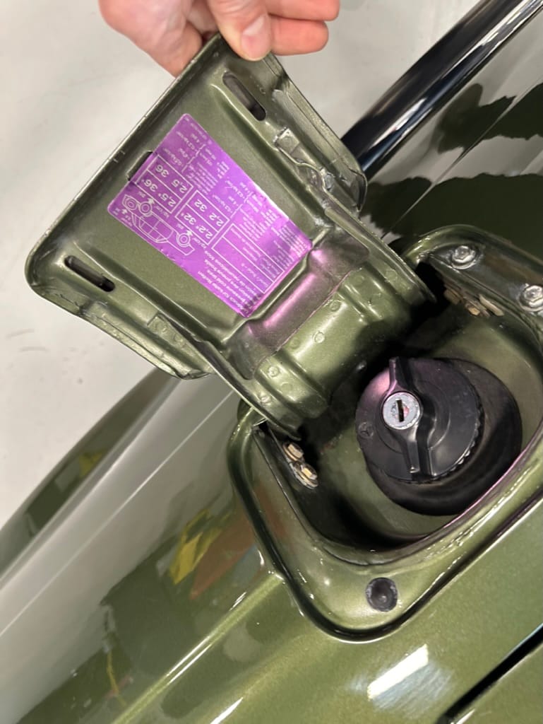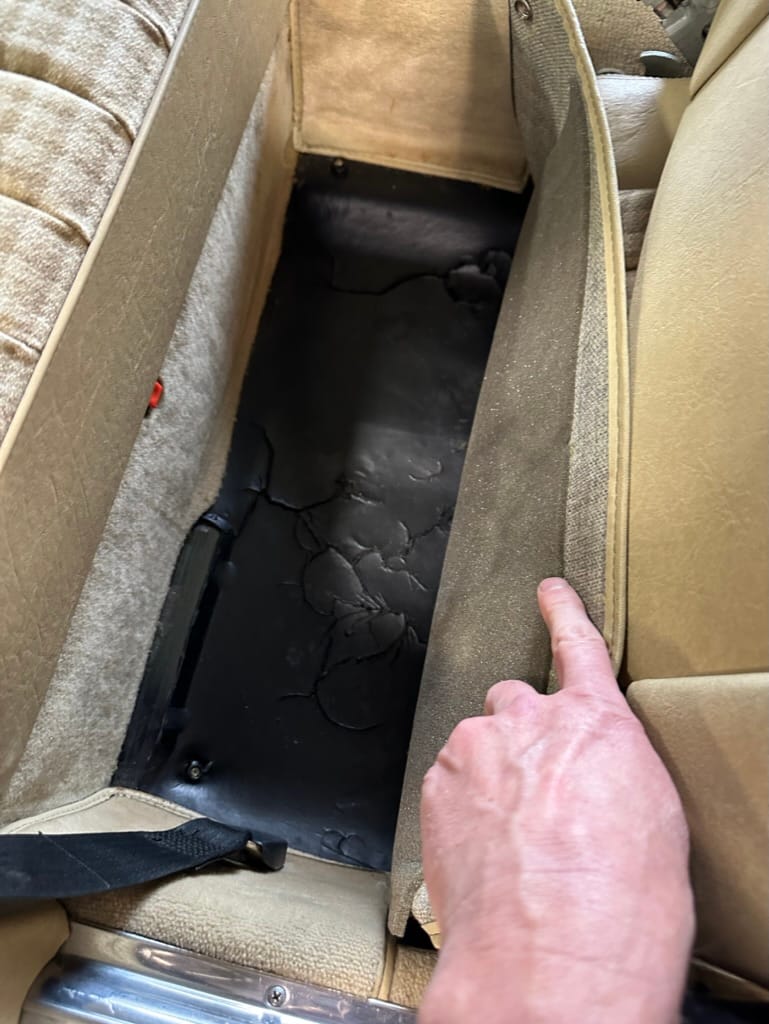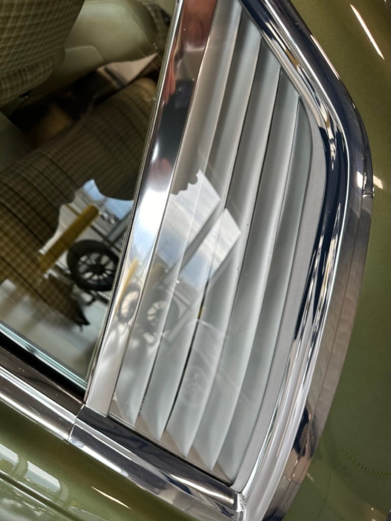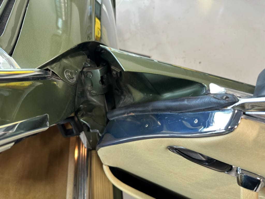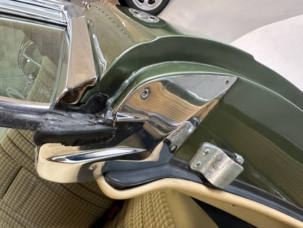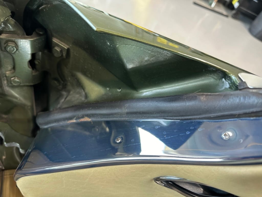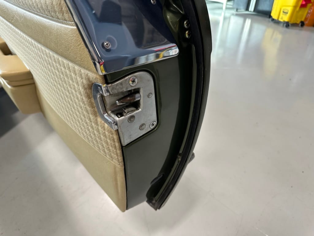 The car retains most of its original Cypress Green Metallic paint, though the drivers side front and rear fenders have been refinished; the front fender in Europe and the rear fender in Alberta during the current ownership (a scratch was fixed from a garage incident). A paint meter report is shown in the YouTube video. The car is not rusted and has a very clean undercarriage.
