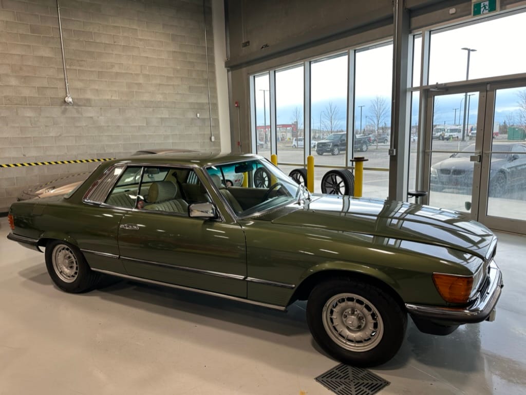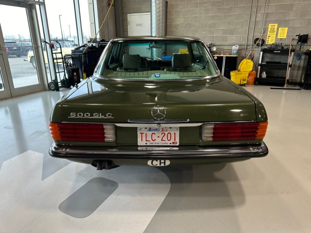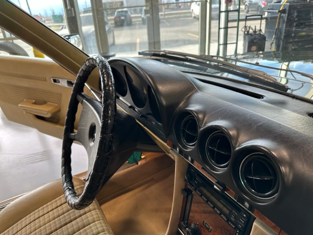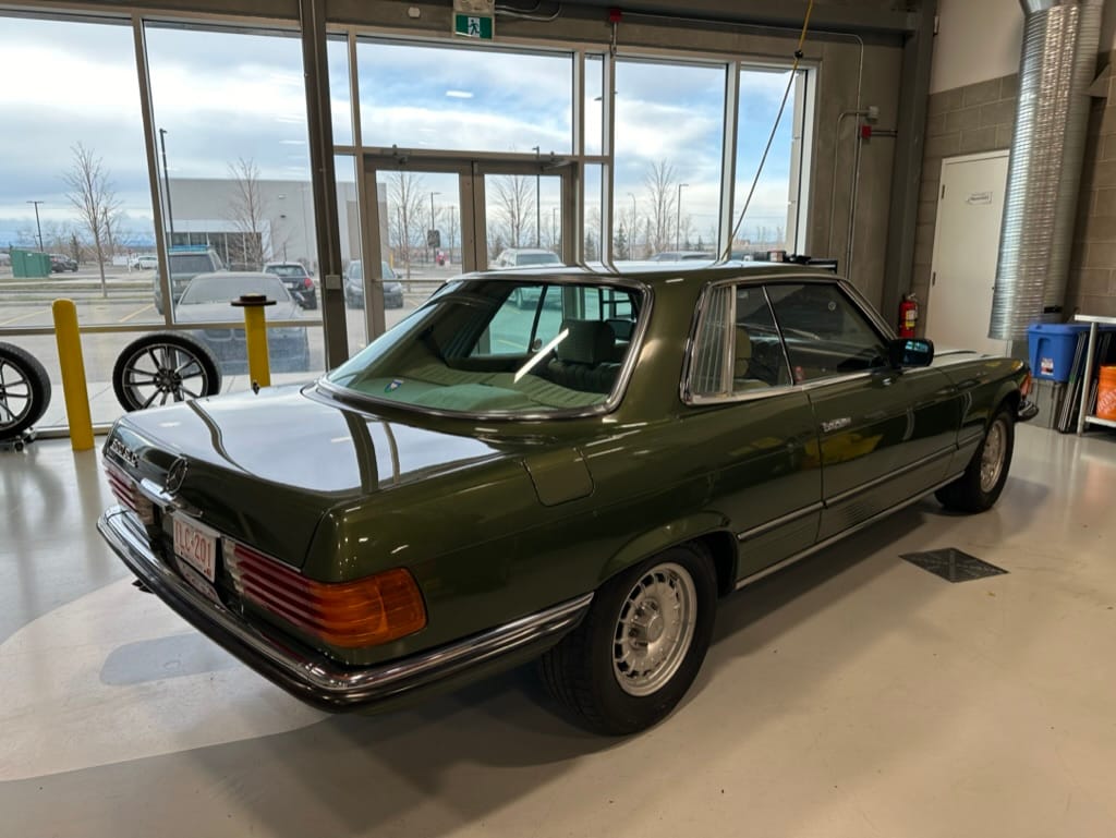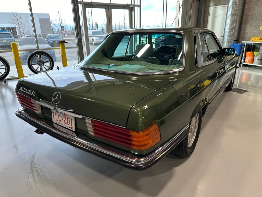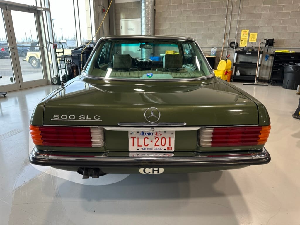 This 1981 500 SLC was sold new in Switzerland and traded back to the selling dealer where, in 1997, it was purchased and imported to Canada by the current owner. It has lived in the Crowsnest Pass area of southwestern Alberta since, and accumulated about 85,000 highway km since coming to Canada. It was regularly serviced by the selling dealer in Switzerland from 1981 to 1997, and then from independent specialists while in Canada. The car received replacement fuel and water pumps in 2002, and received a major service in 2016. It has been used sparingly since.