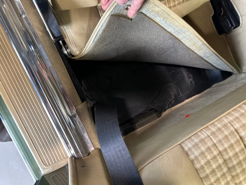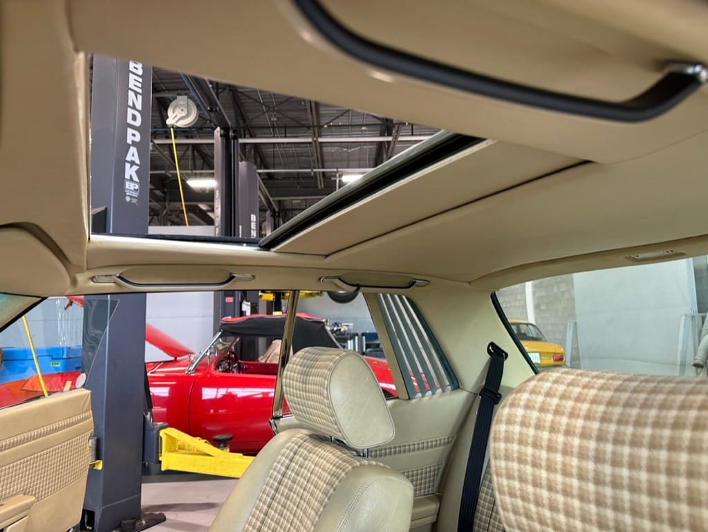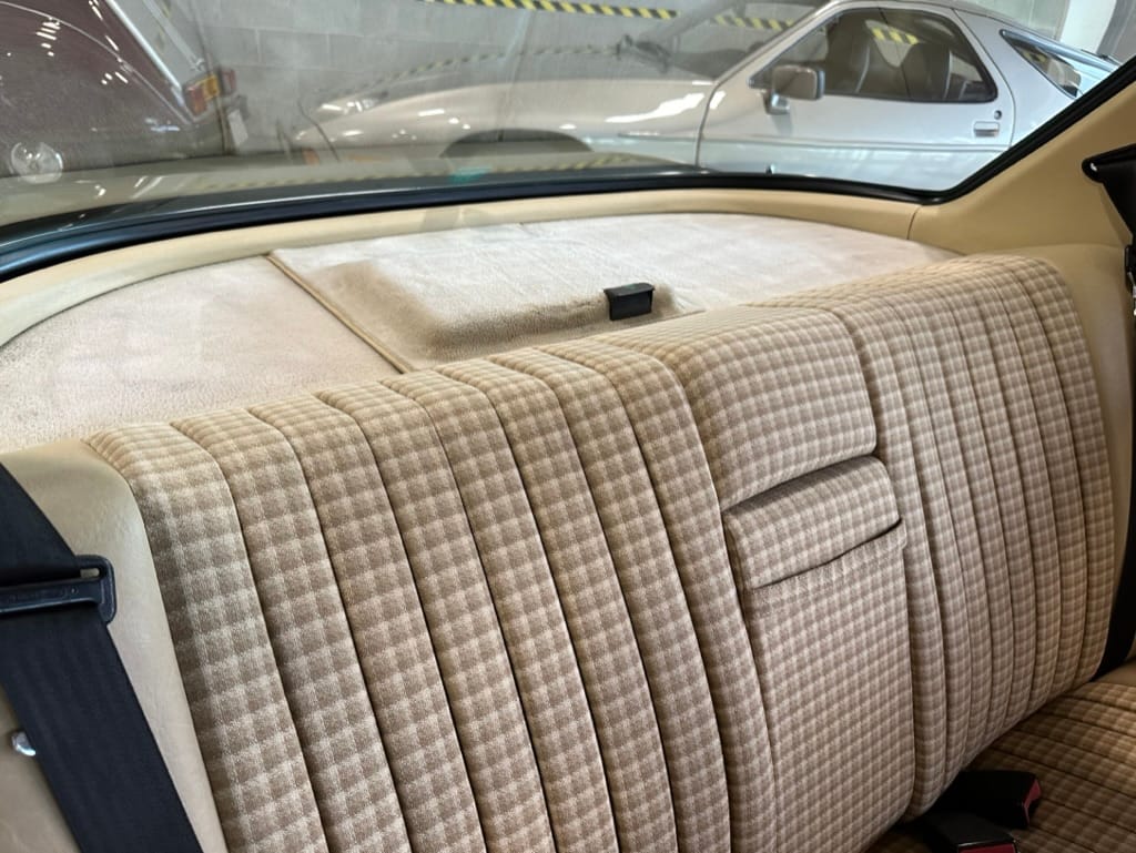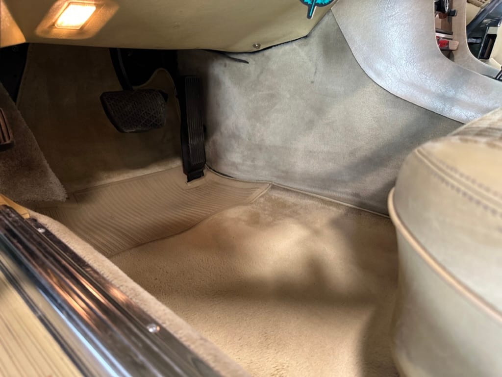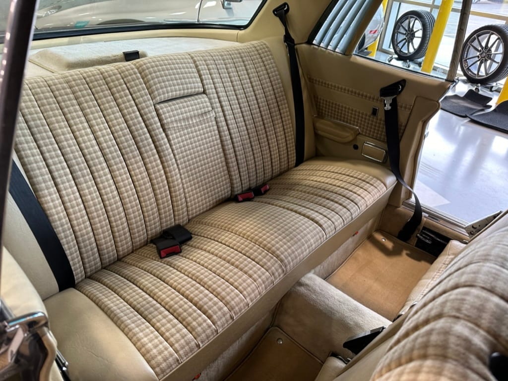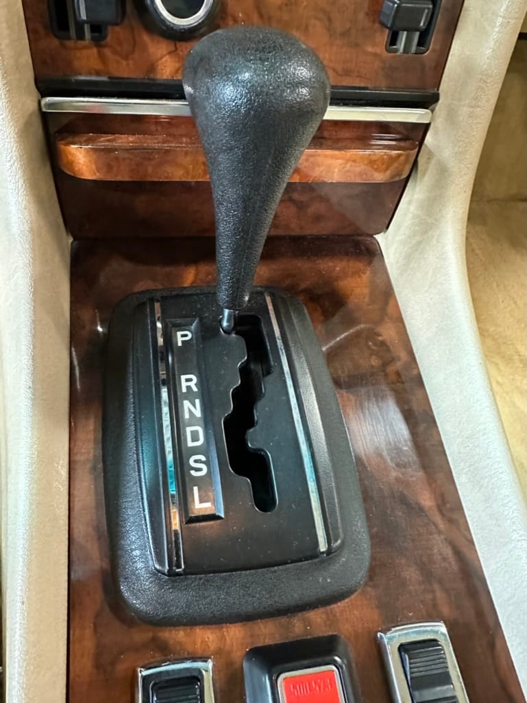 The interior is completely stock apart from an aftermarket sound system that features a removable sub-woofer in the trunk. The dash is un-cracked and the interior materials are free from rips, or stains. The burlwood veneer is un-cracked and unbleached.