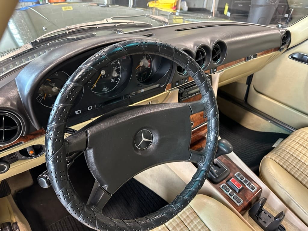 The car drives nicely and has terrific power from the 5.0L V8 - it is much faster than the North American 450 SLC's. The Automatic gearbox shifts positively with no slippage. The steering box has no excessive play and there is no vibration from the steering wheel. The brakes have good bite and slow the car with authority. The car tracks straight, and the suspension has no knocks or other evidence of wear.