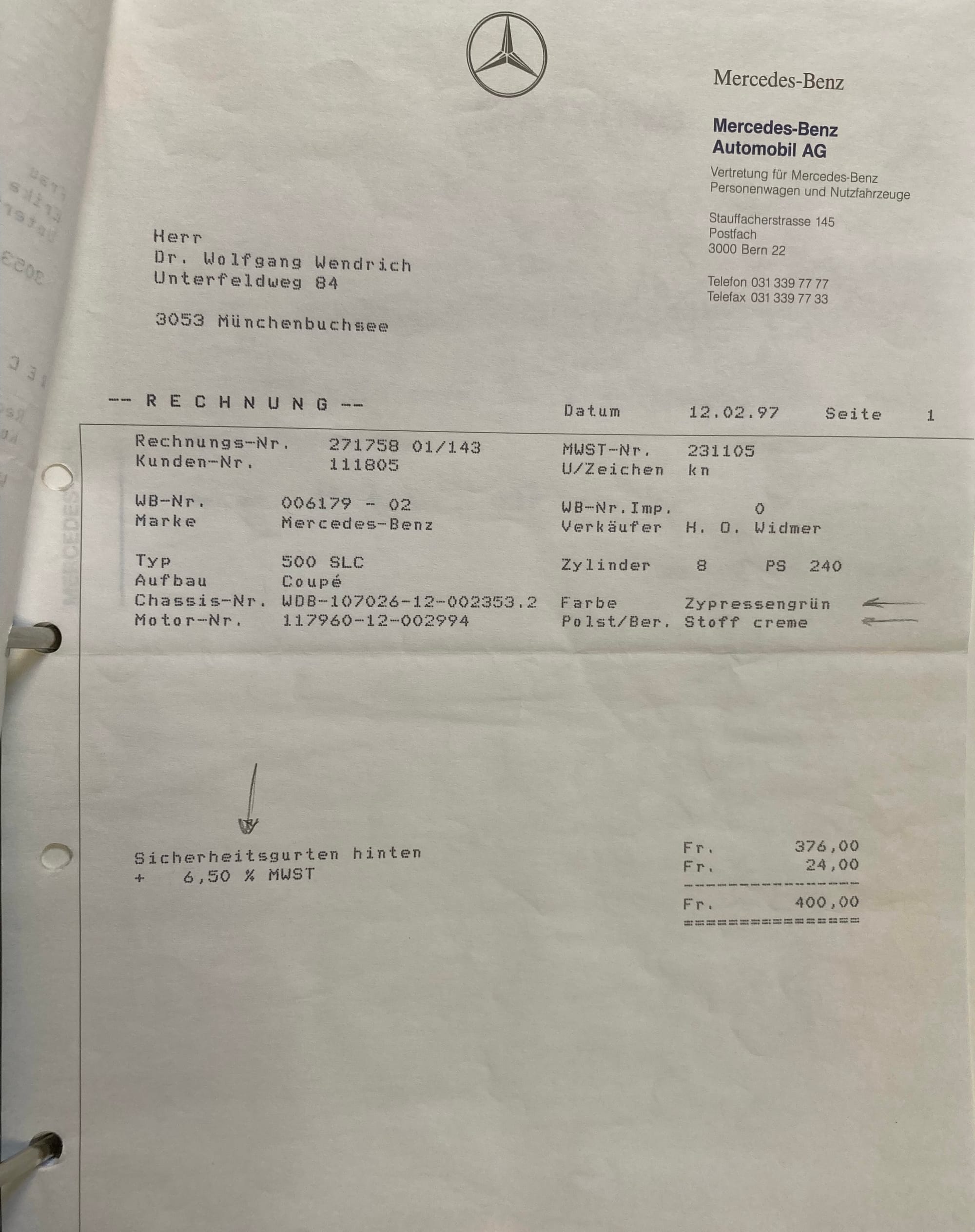One of 1,133 5.0L 500 SLC produced to Homologate the C107 for international motorsport.