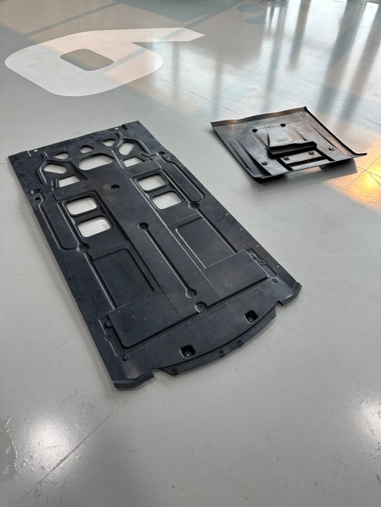Newer vehicles have plastic undertrays to smooth the airflow under the car. These often have missing fasteners or are cracked from over-tightening or road damage. They collect spilled fluids from servicing and then get caked with an oil/dirt residue. We take these panels off and clean, repair and replace them where necessary.