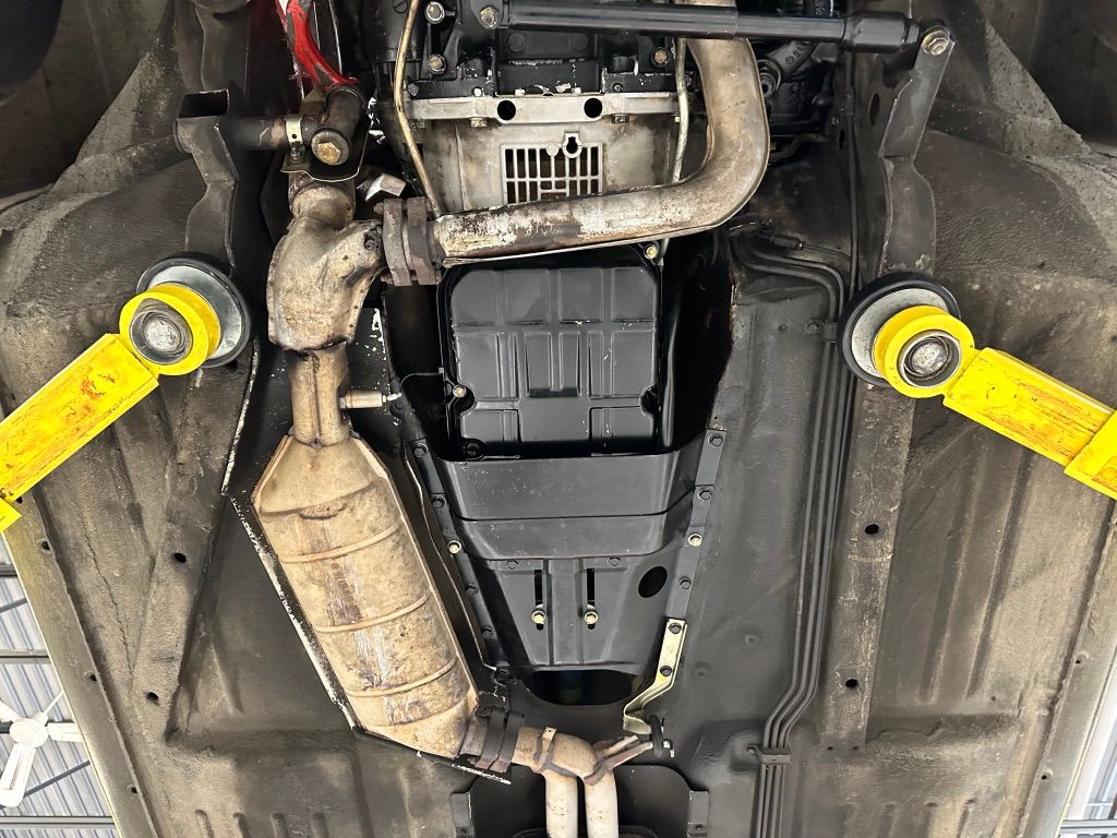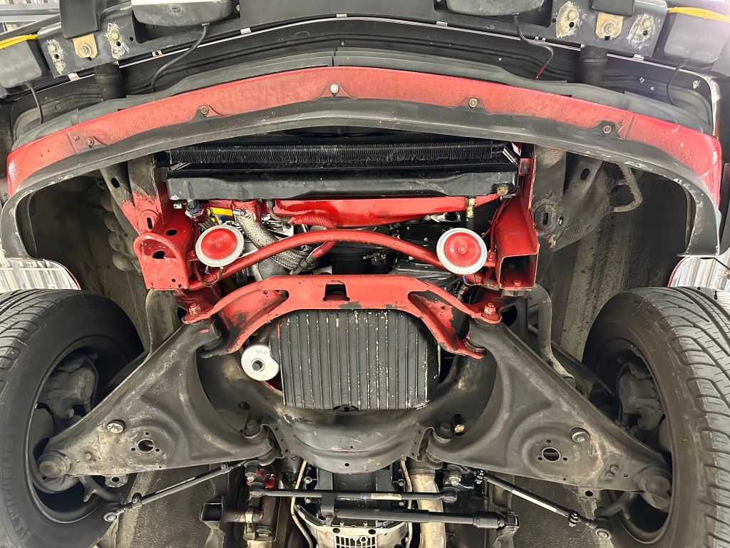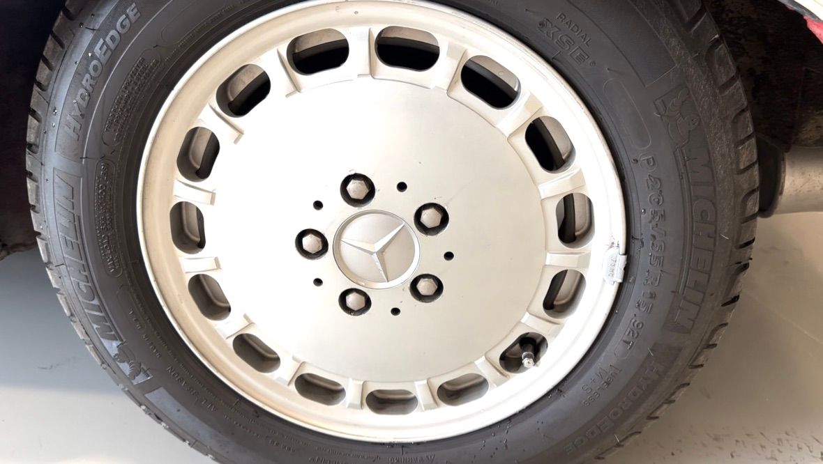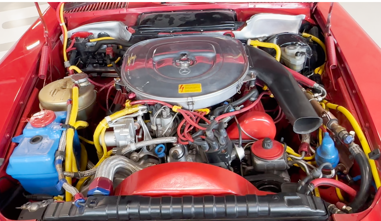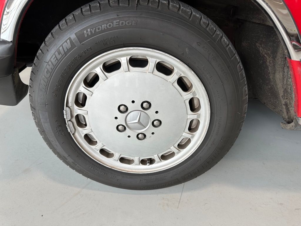 The car has benefitted from approximatley $17,500 worth of maintenance from Lone Star Mercedes-Benz and Continental Auto Service. Major items include the replacement of front suspension components, a retrofit of the Air Conditioning to R134a refrigerant, MB remanufactured steering box ($6,600), gearbox reseal, and replacement of the engine rear main seal. The engine has been given a cosmetic 'dress up' kit consisting of aluminum and coloured sleeves and sheaths for various hoses and parts of the wiring loom.