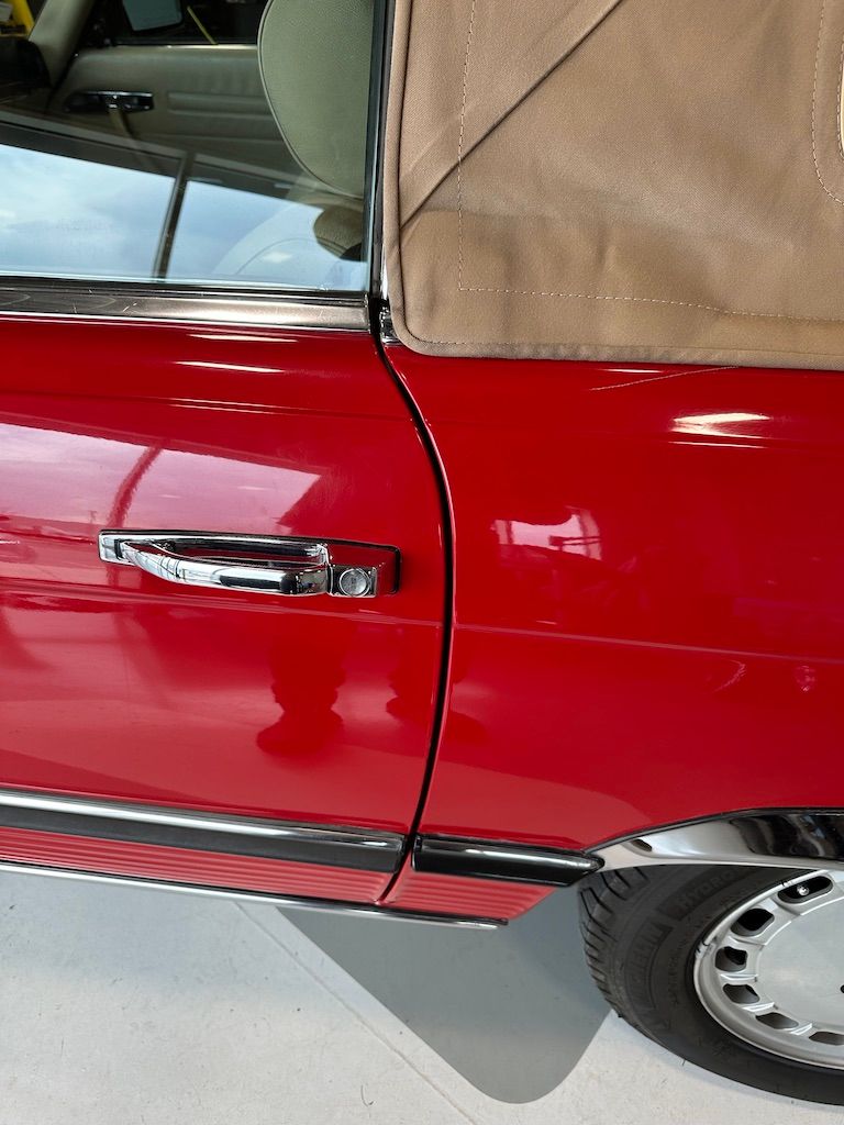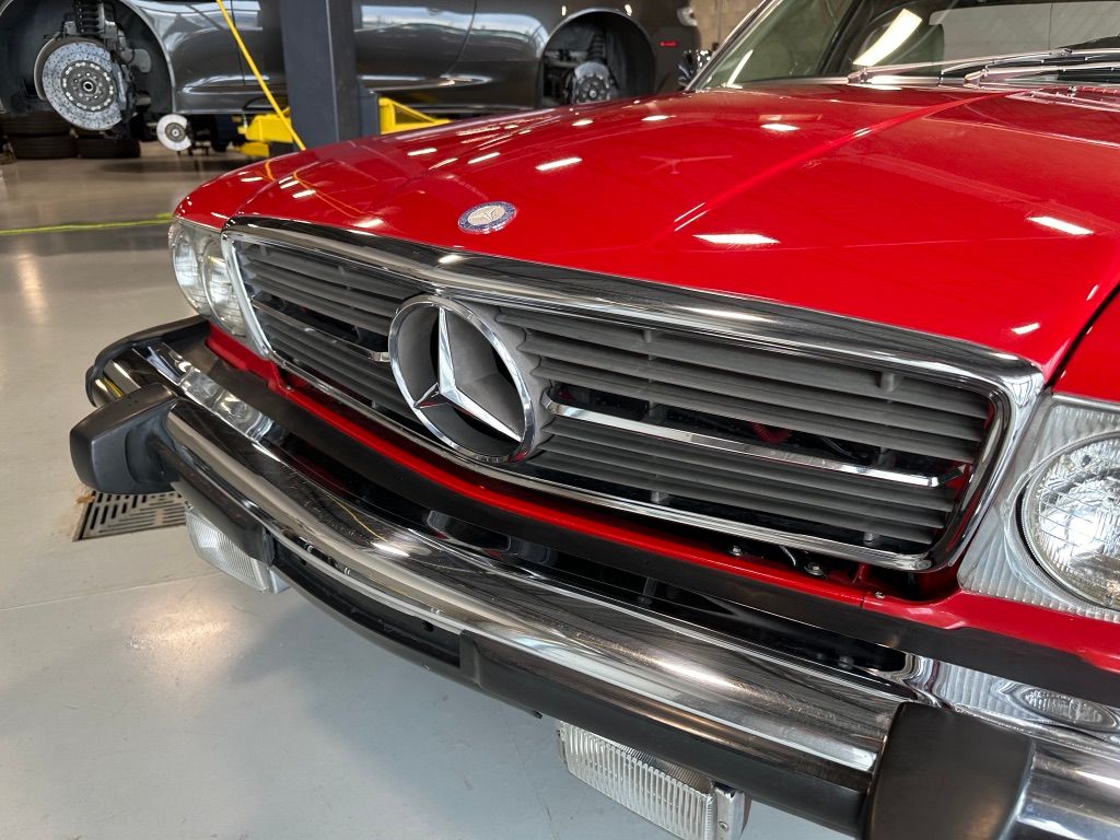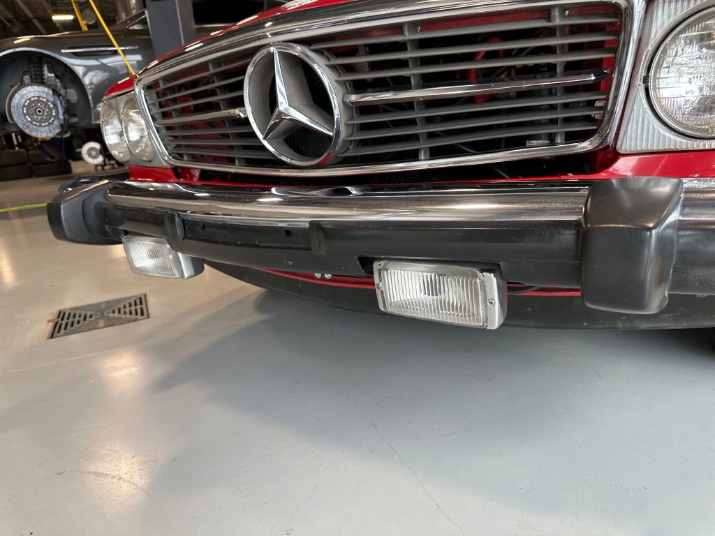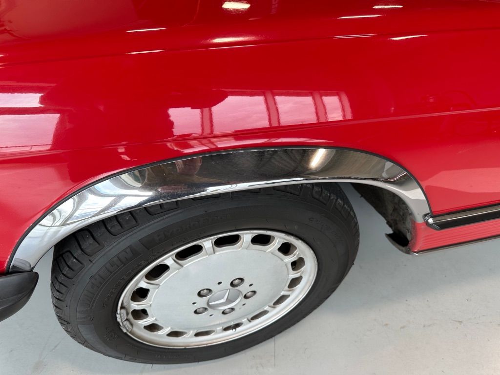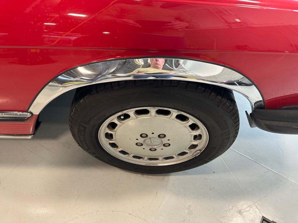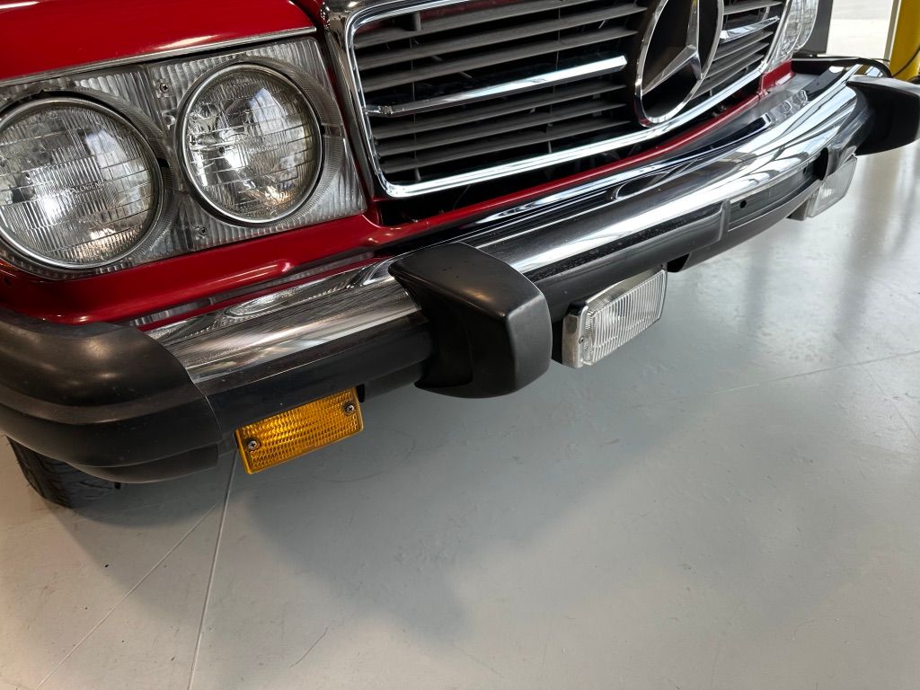 The car is stock apart from the upgrade to MB 560SL wheels which would have been introduced the following year, and which were a popular upgrade. Dealer installed items also include the chrome fender lips, and undercoating.
