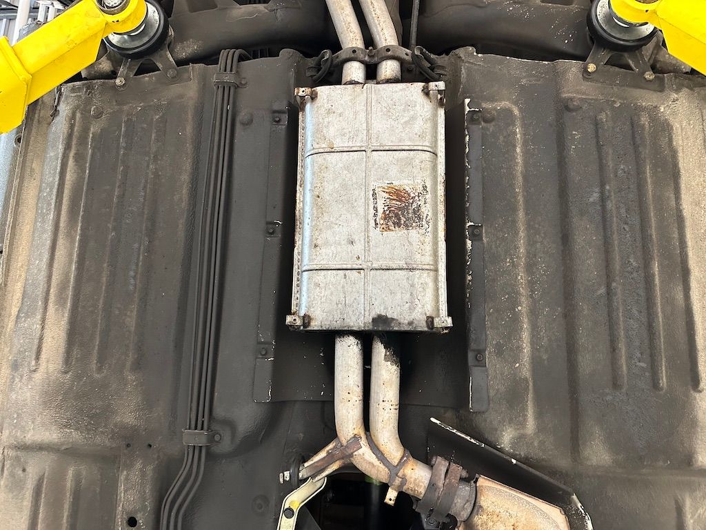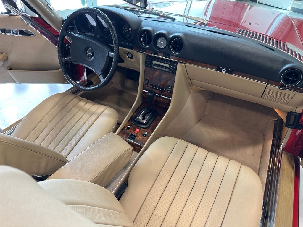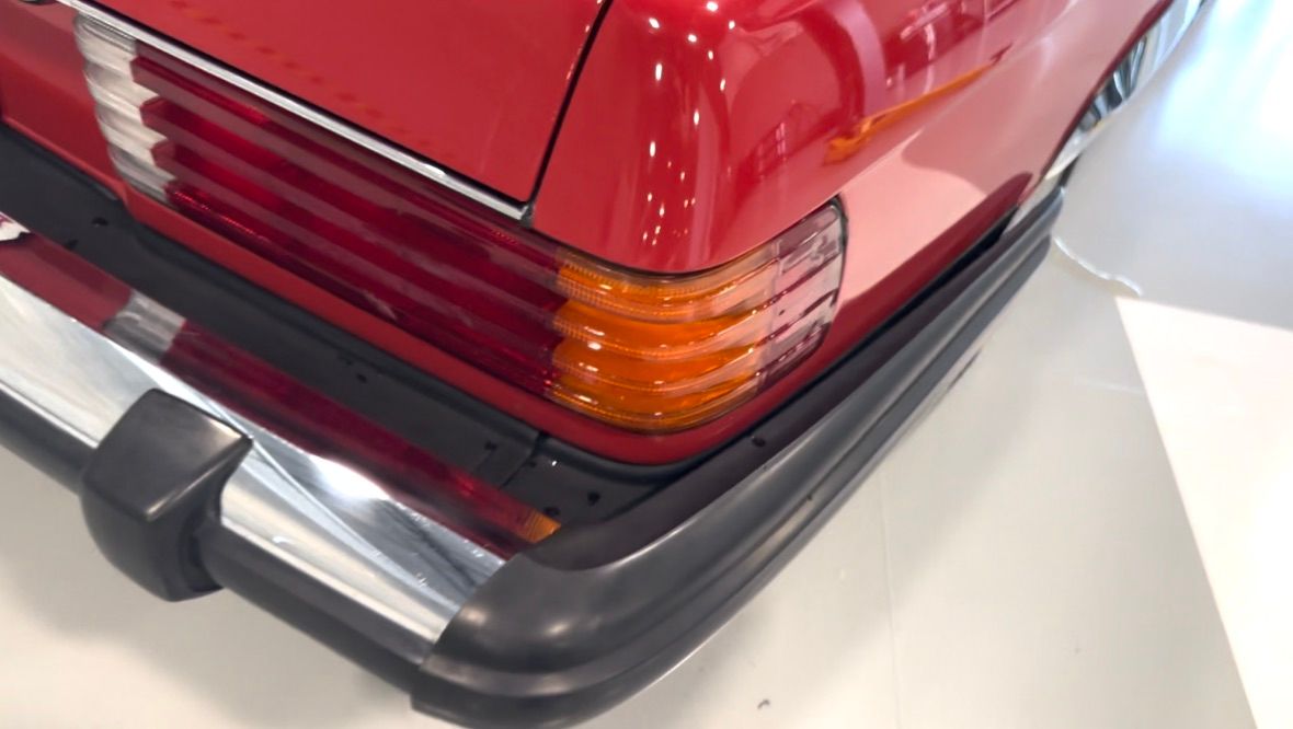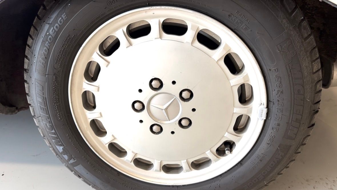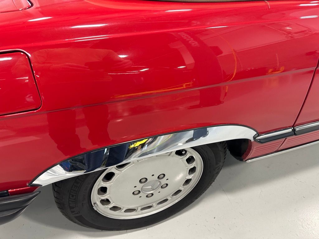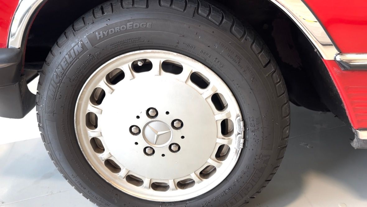 The car is stock apart from the upgrade to MB 560SL wheels which would have been introduced the following year, and which were a popular upgrade. Dealer installed items also include the chrome fender lips, and undercoating.