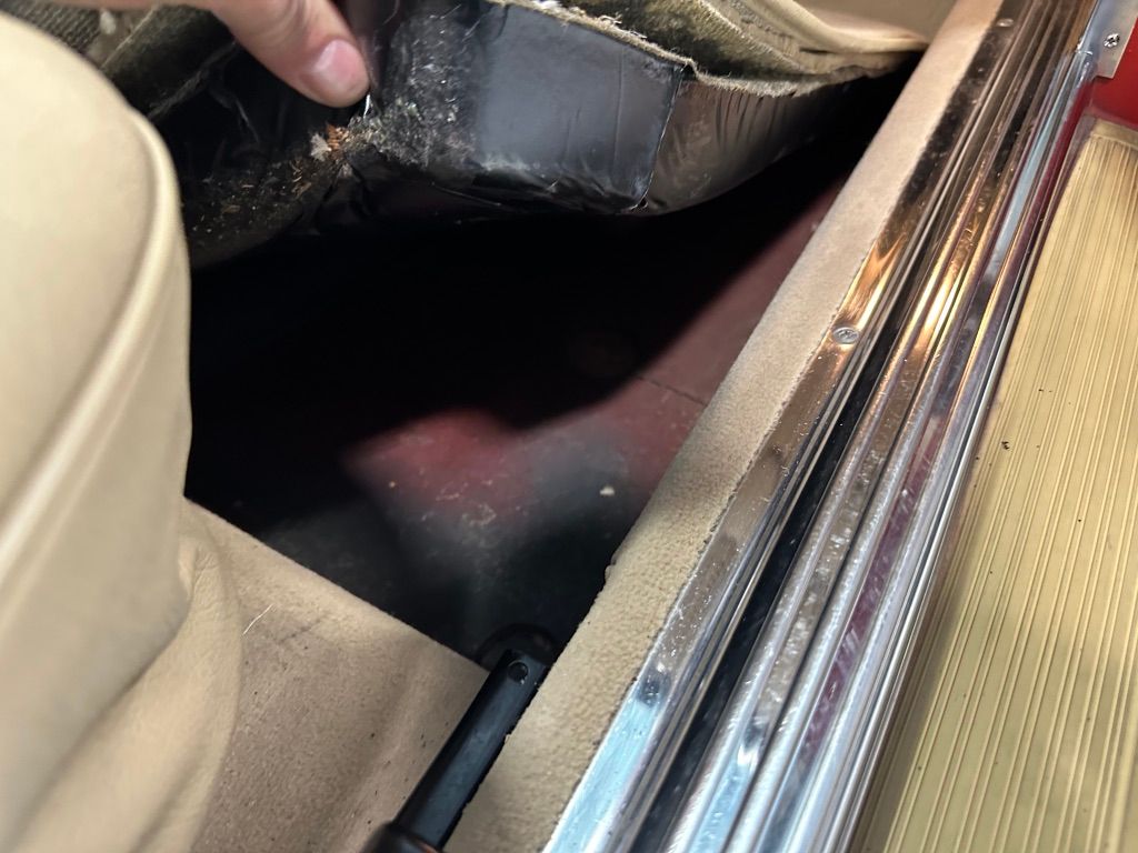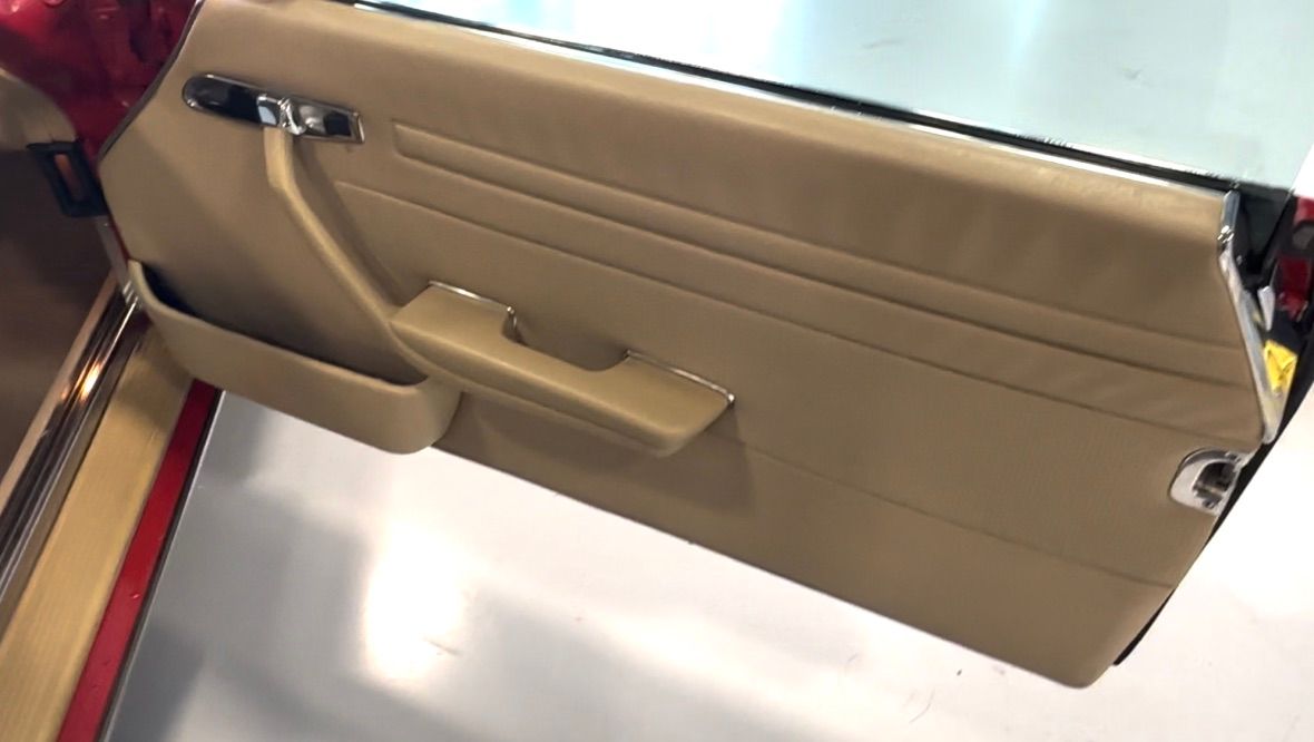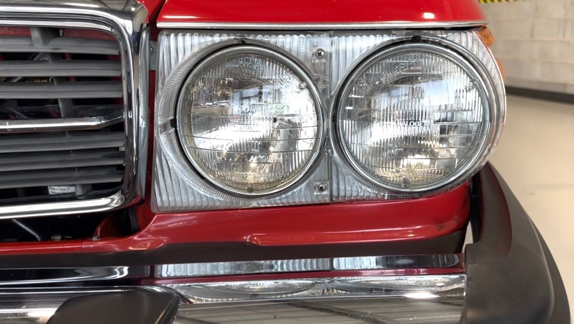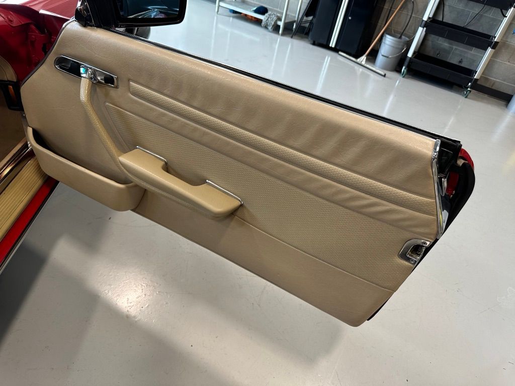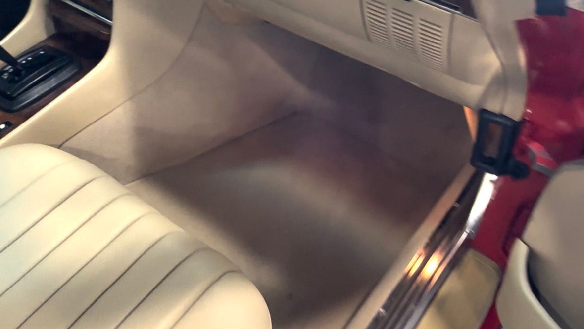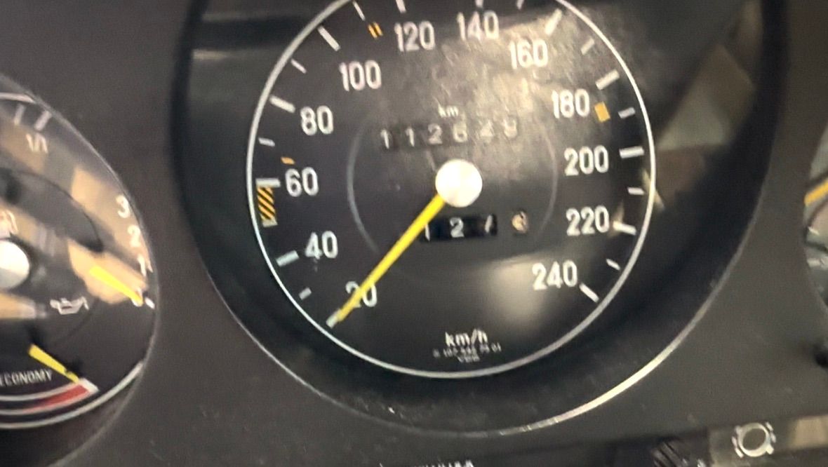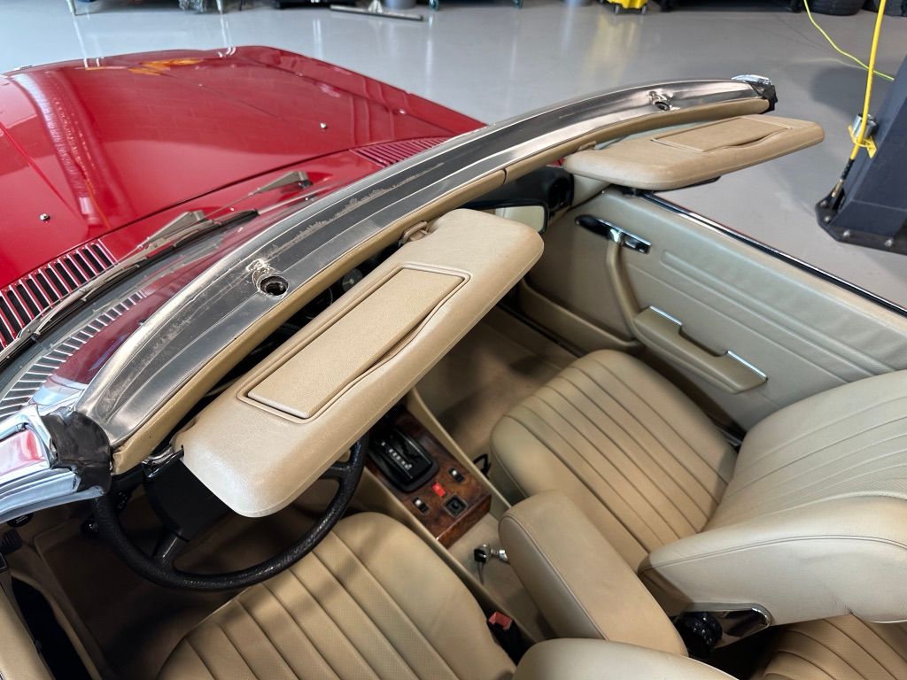 The interior is beige with the incredibly hard-wearing MB-Tex seat coverings. Carpets, including the trunk, are unsoiled, and still have their original factory rubber backing which has not deteriorated. Floor pans are factory fresh indicating that the car has had no water ingress. The Burr Walnut trim is still dark and not sun damaged, with no cracking. It appears that the dash pad has been replaced at some point in the vehicles history and is unmarked. All electrical equipment, gauges and controls work correctly. The AC blows cold, as the compressor and associated AC components were recently replaced with a conversion to R134a refrigerant.