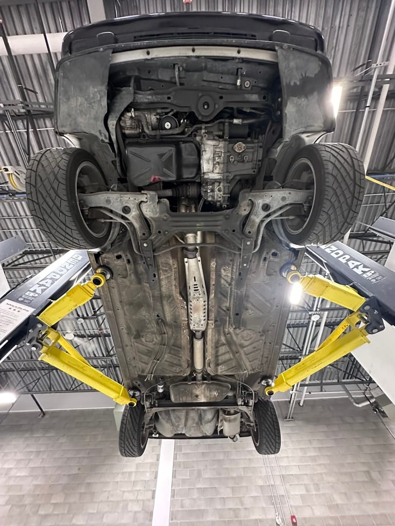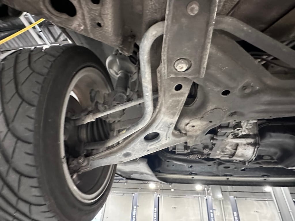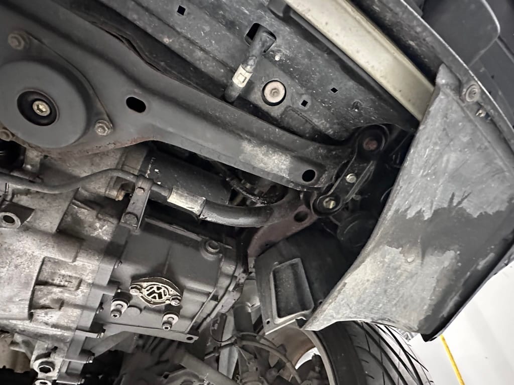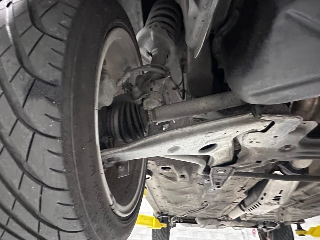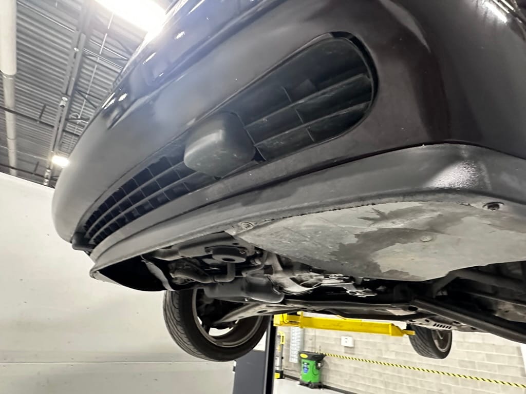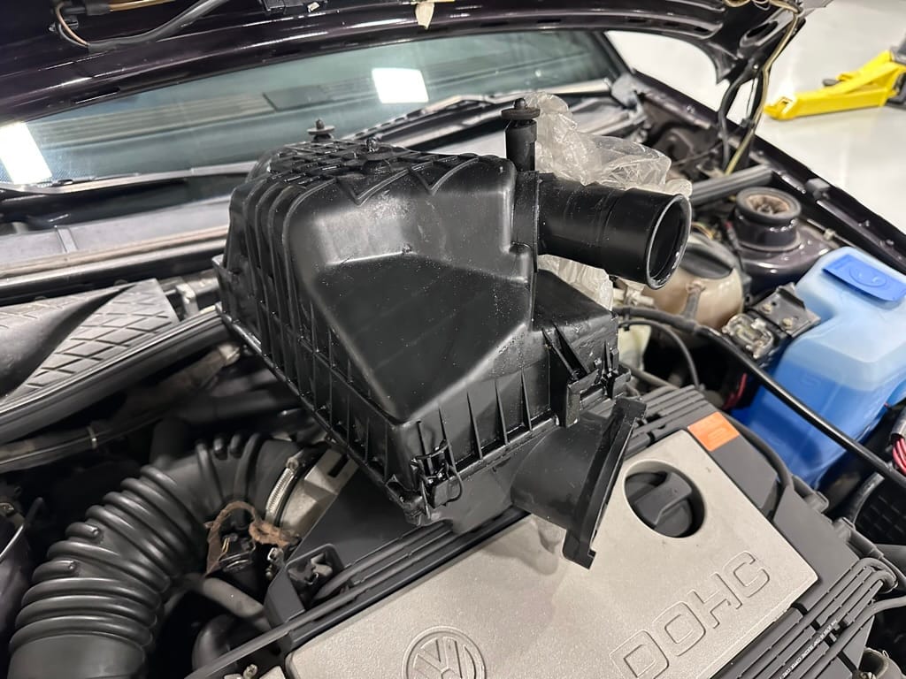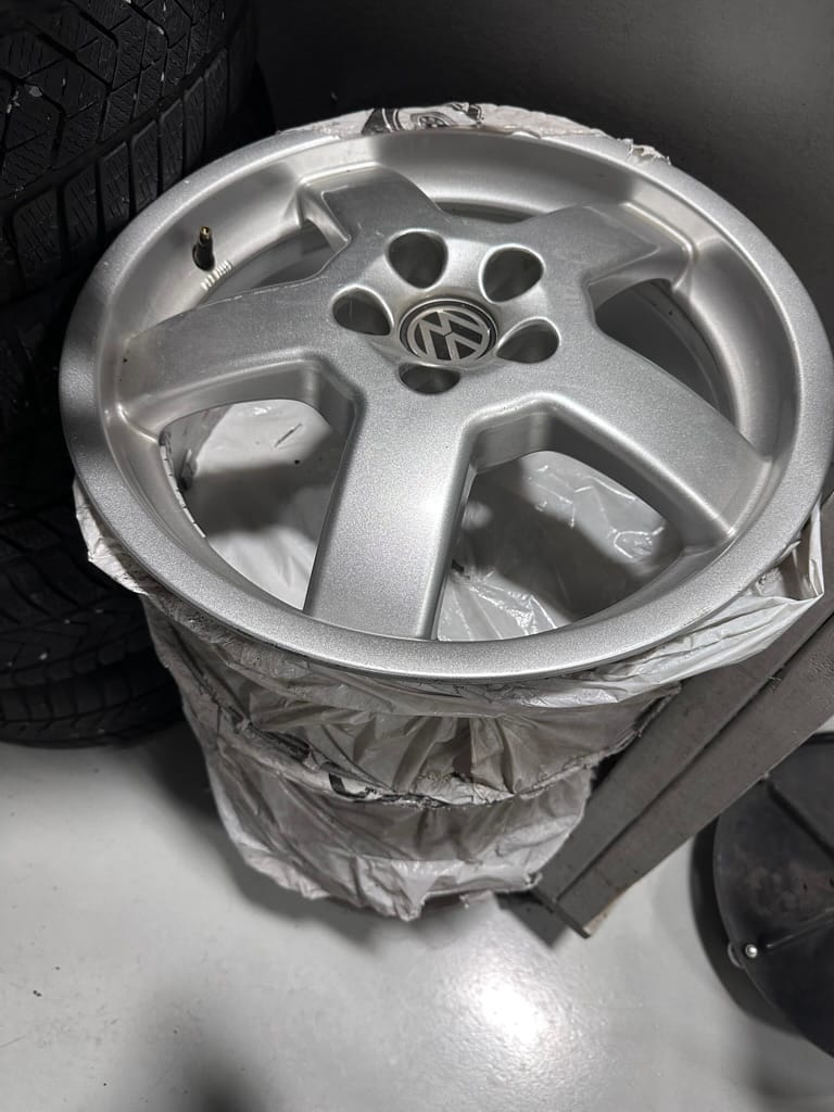 The car wears 6.5 x 16 Borbet wheels with older Yokohama tires (date code 2002). The OEM wheels are included with the car. A Neuspeed cold air intake appears to be a dealer installed item. The original airbox is included. There are several minor leaks from the engine.