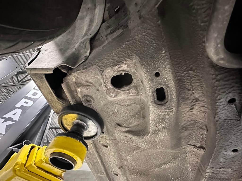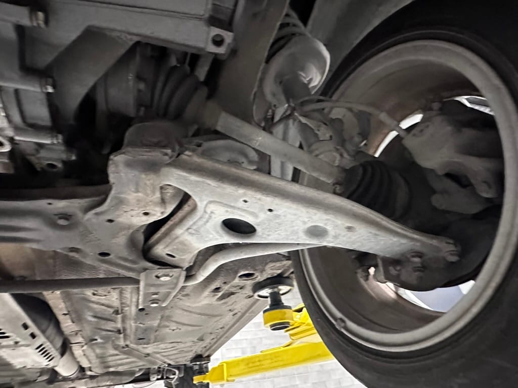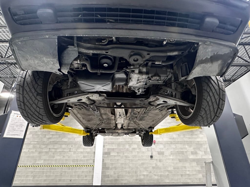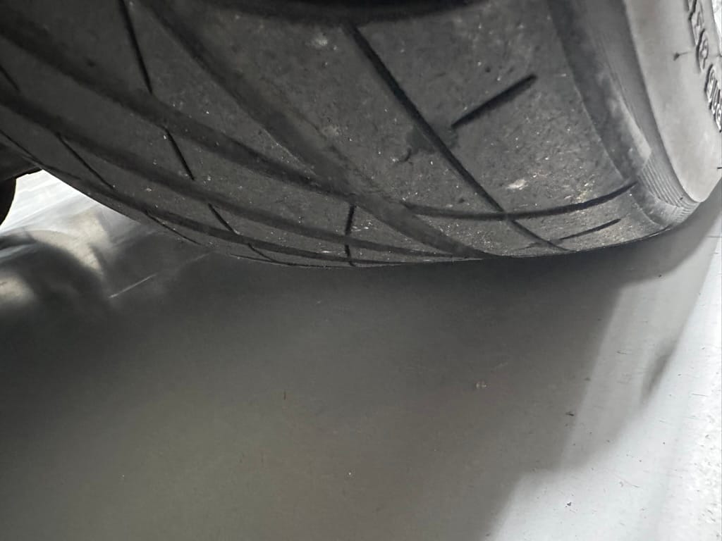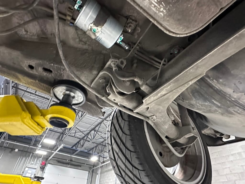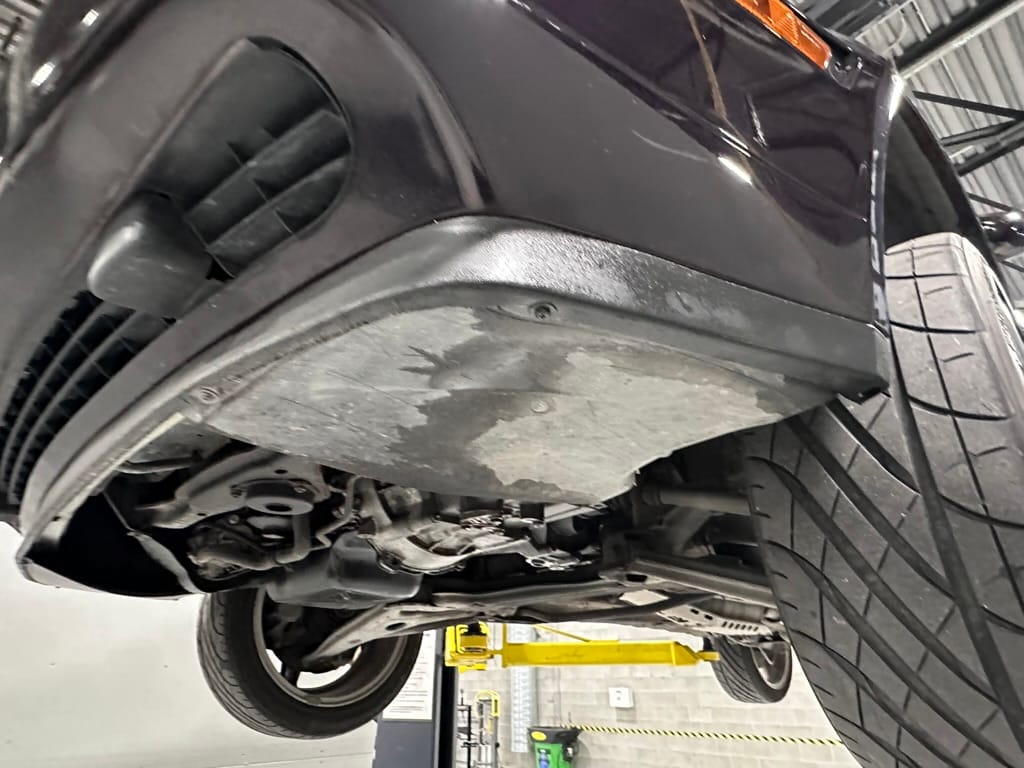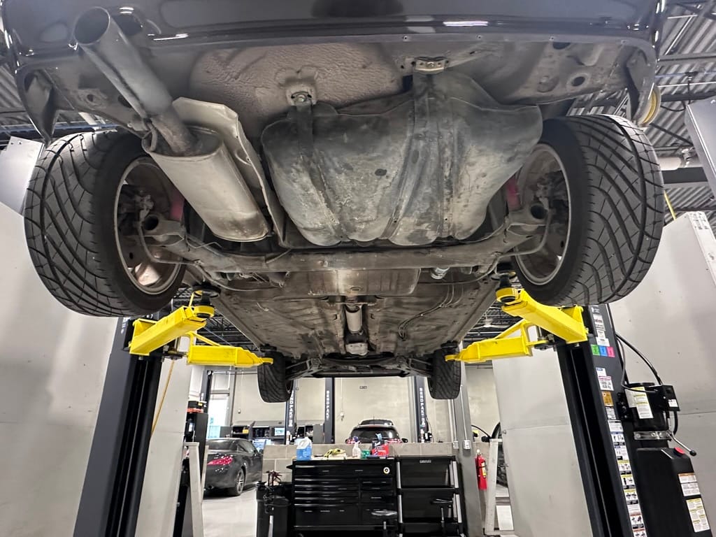 The car wears 6.5 x 16 Borbet wheels with older Yokohama tires (date code 2002). The OEM wheels are included with the car. A Neuspeed cold air intake appears to be a dealer installed item. The original airbox is included. There are several minor leaks from the engine.