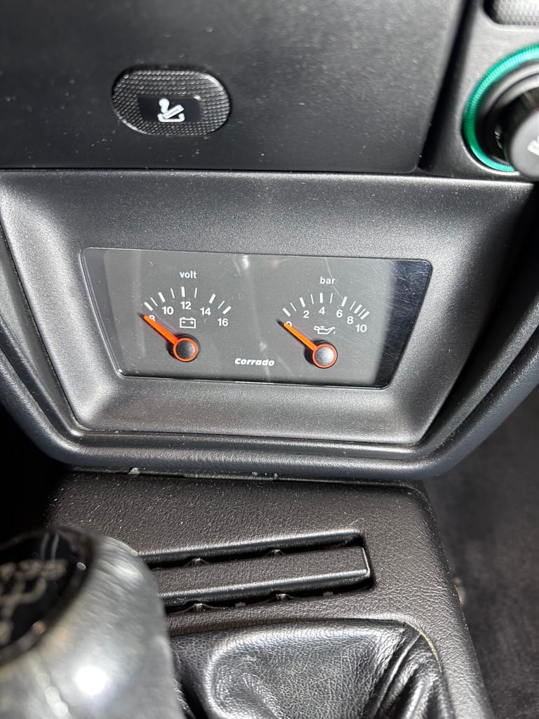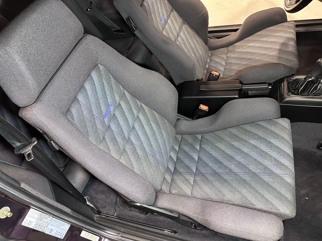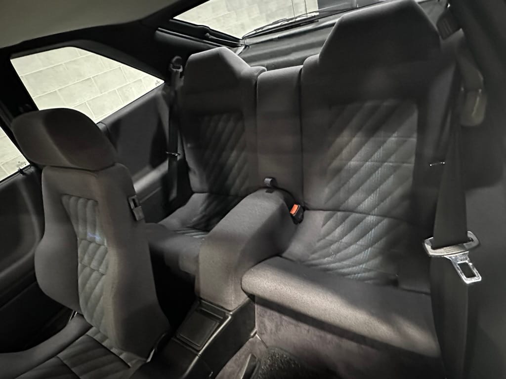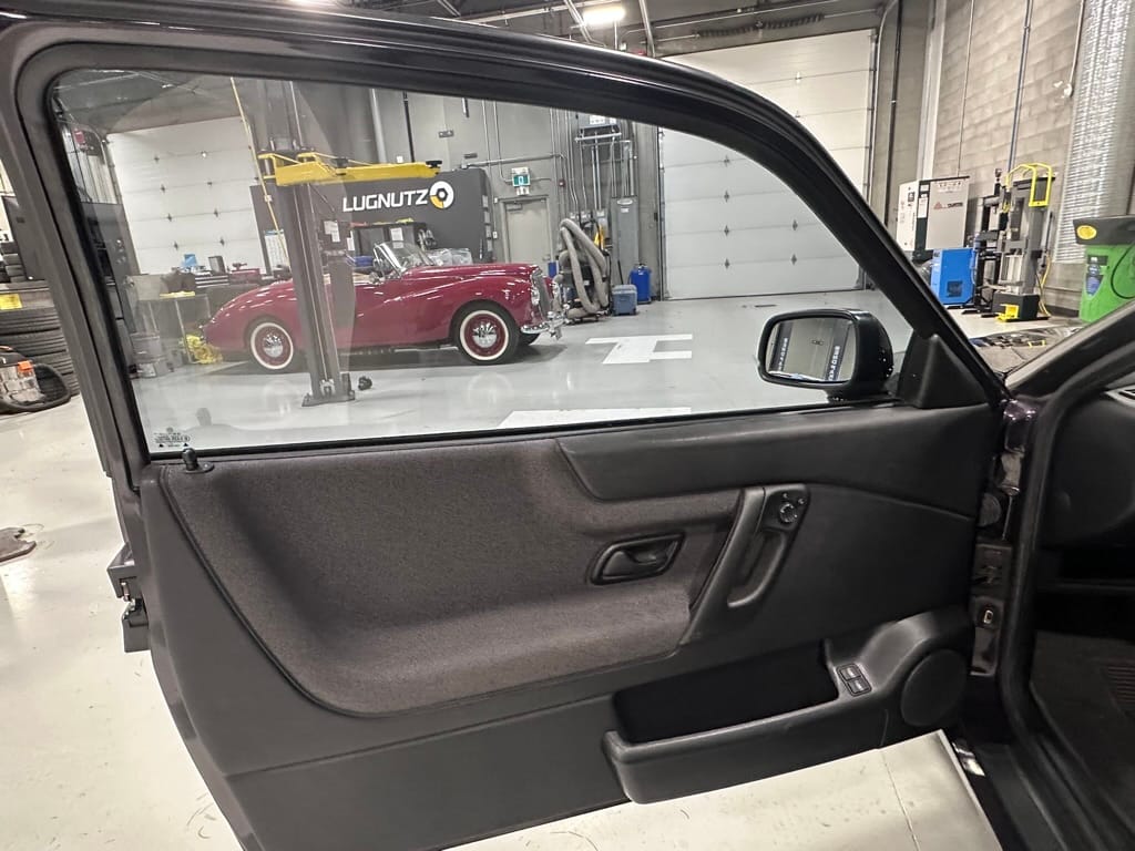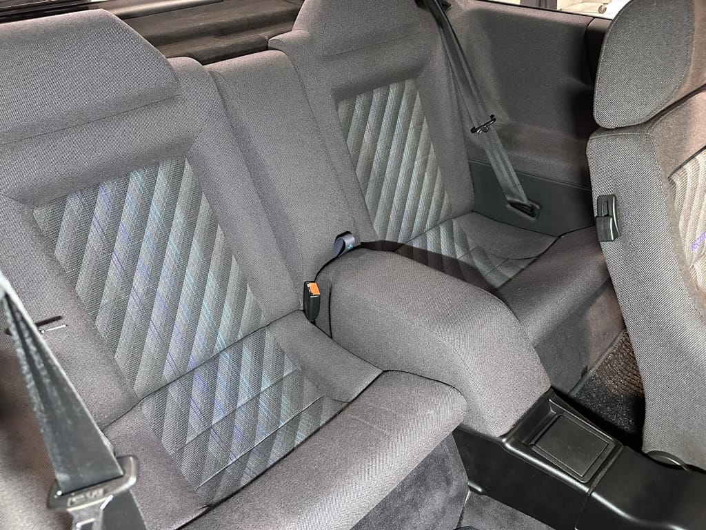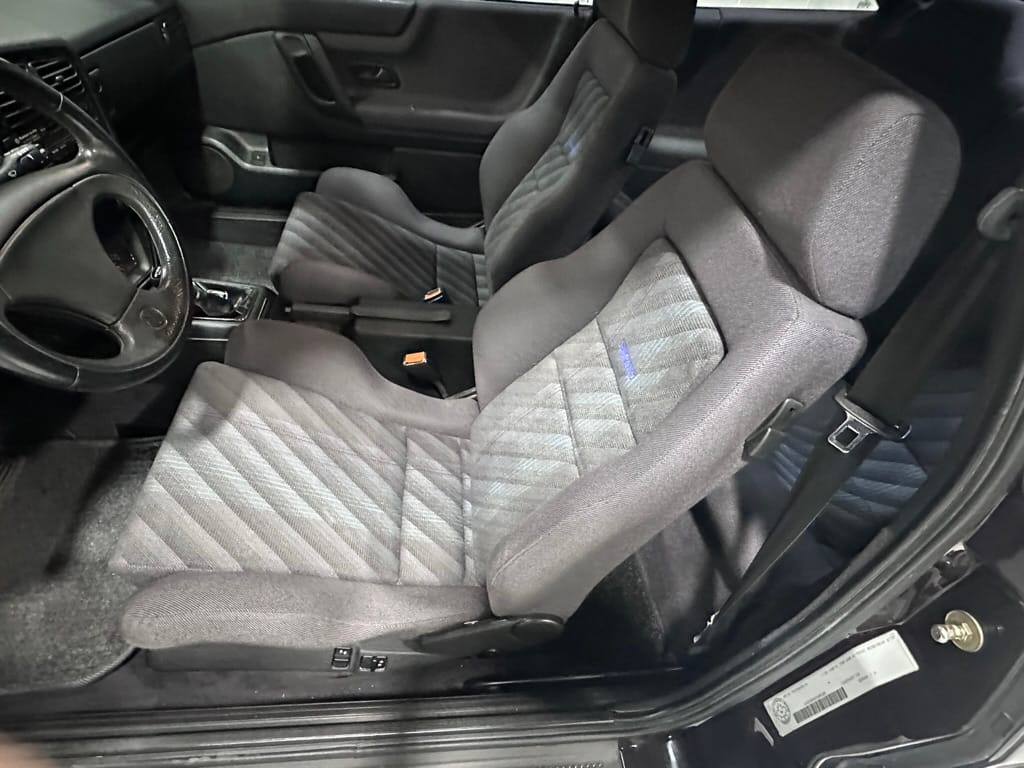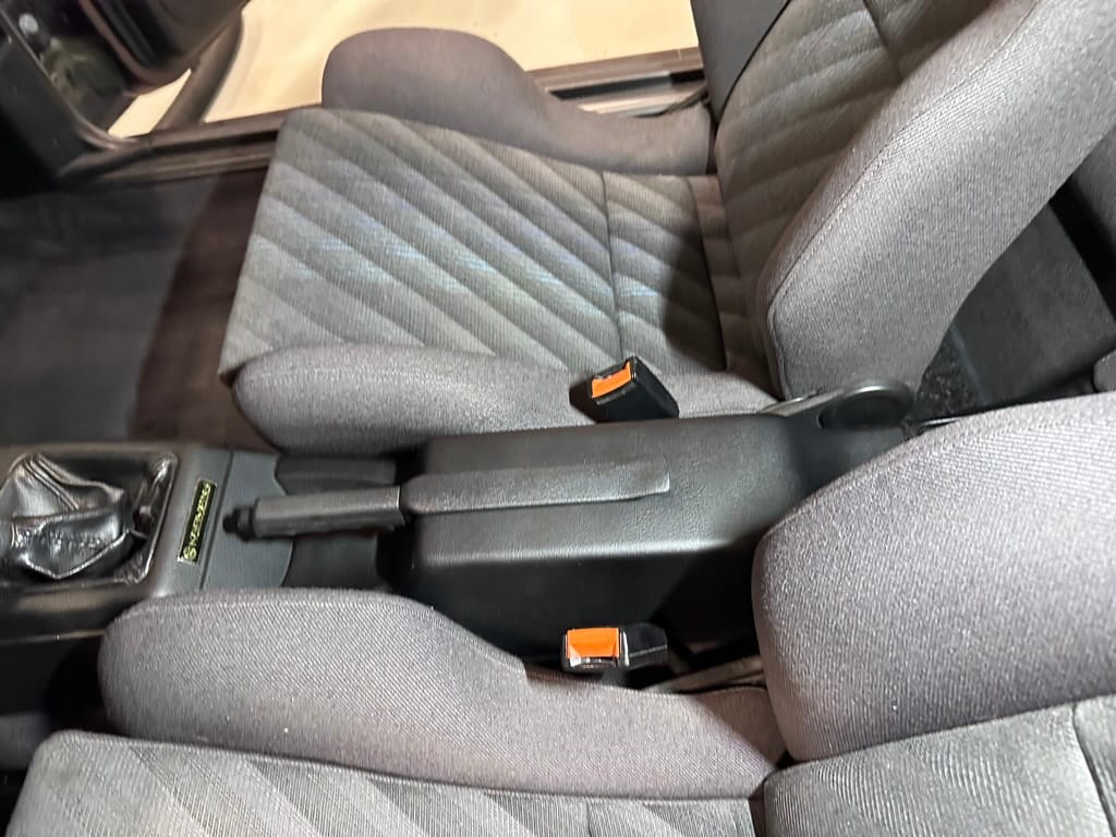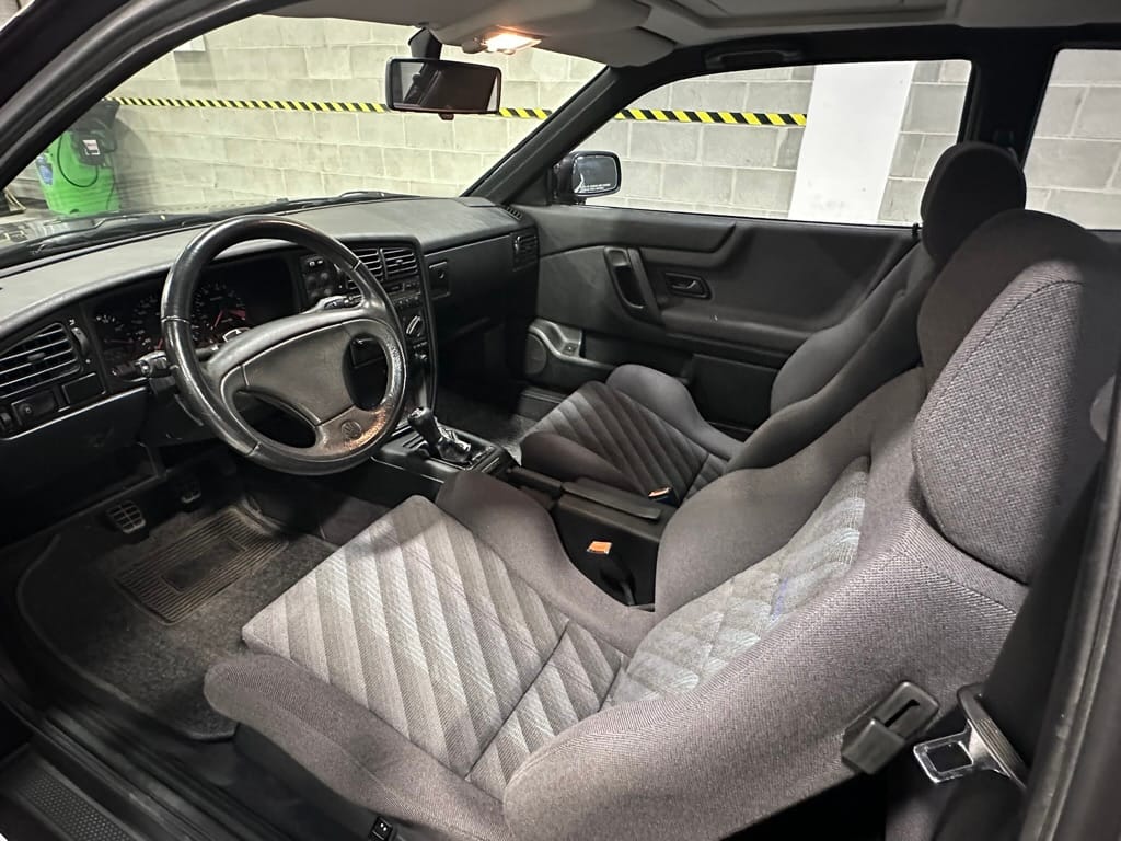 The Recaro sports seats are in excellent condition, with an almost undetectable amount of bolster wear. Carpets, headliner, dash and center console are in excellent condition. 'Corrado' carpet floor mats are new. The vinyl on the passenger side door cap has shrunk revealing the fiber from the door card, the passenger electric window is inoperative.