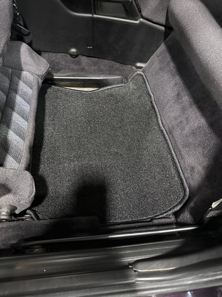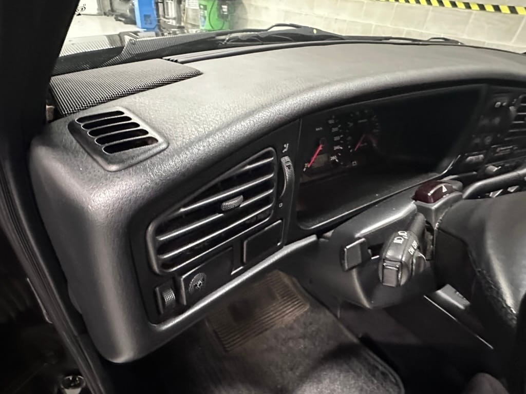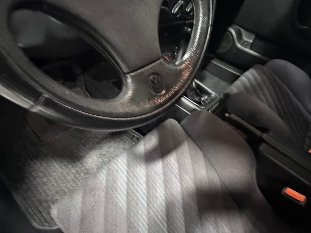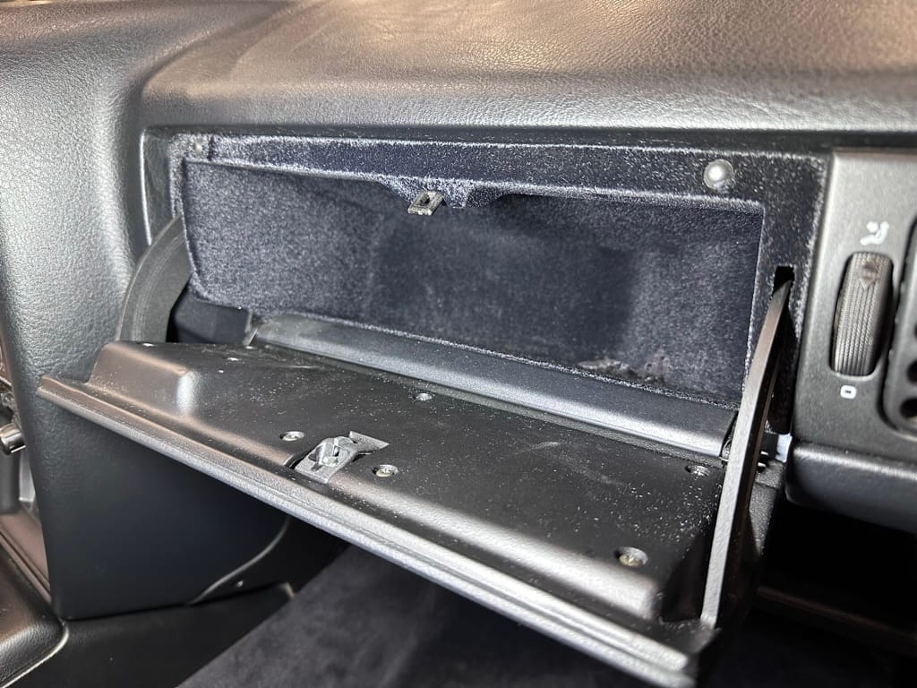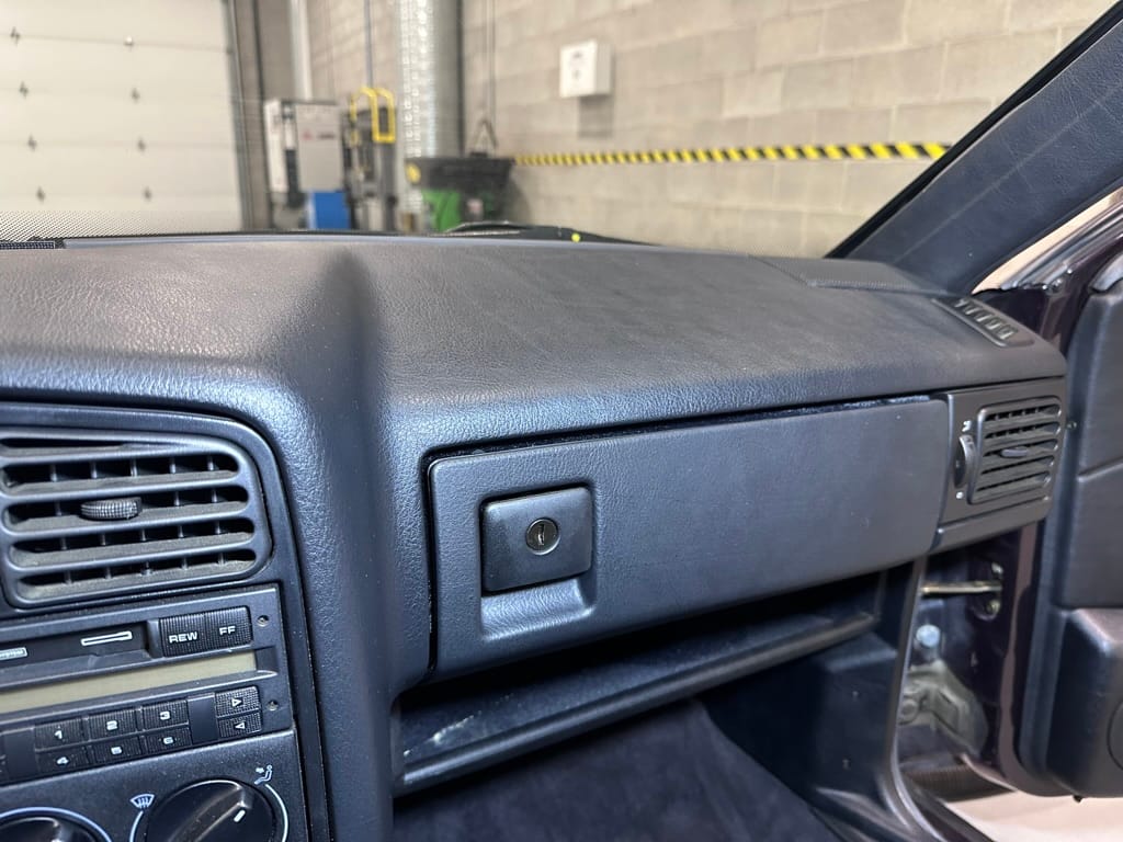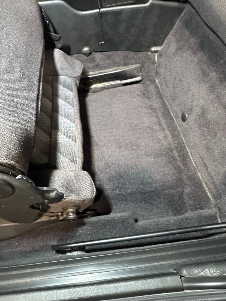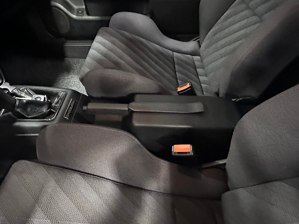 The Recaro sports seats are in excellent condition, with an almost undetectable amount of bolster wear. Carpets, headliner, dash and center console are in excellent condition. 'Corrado' carpet floor mats are new. The vinyl on the passenger side door cap has shrunk revealing the fiber from the door card, the passenger electric window is inoperative.