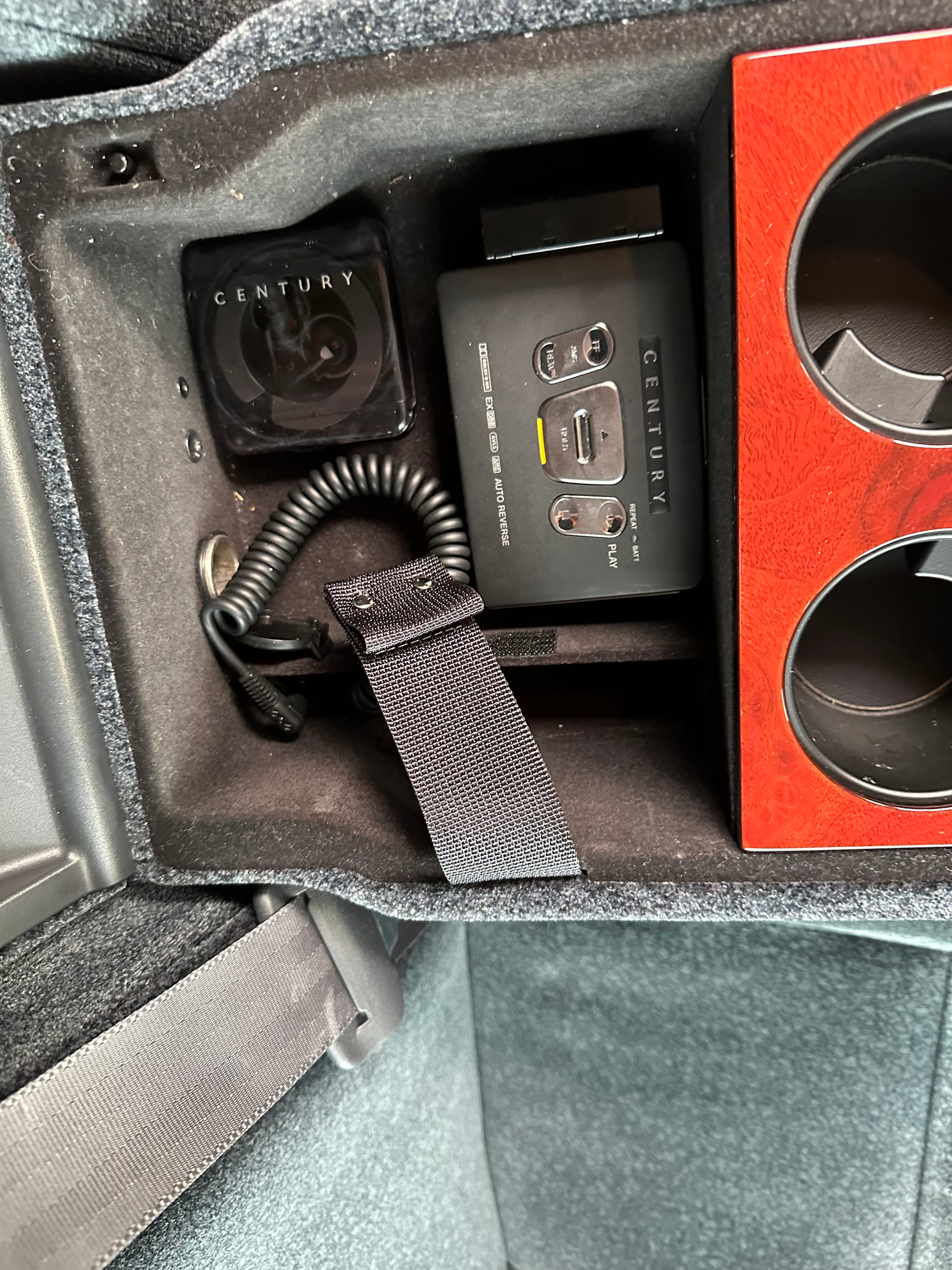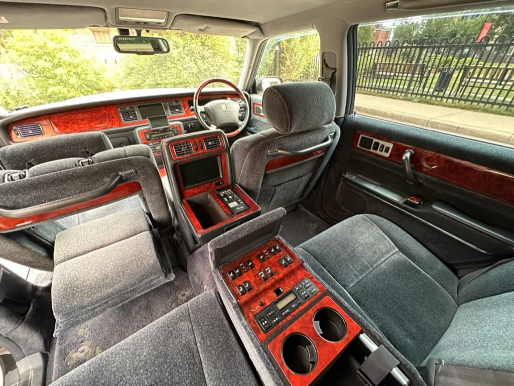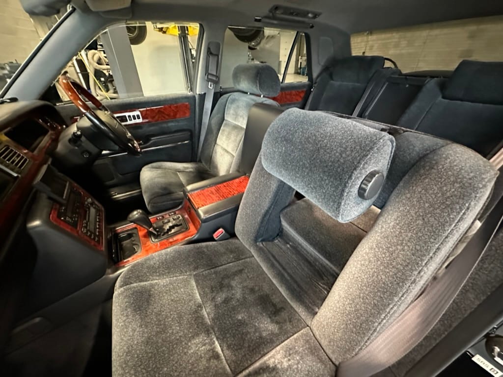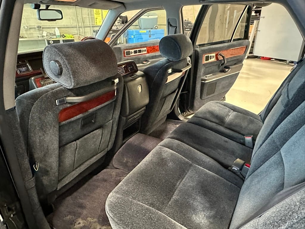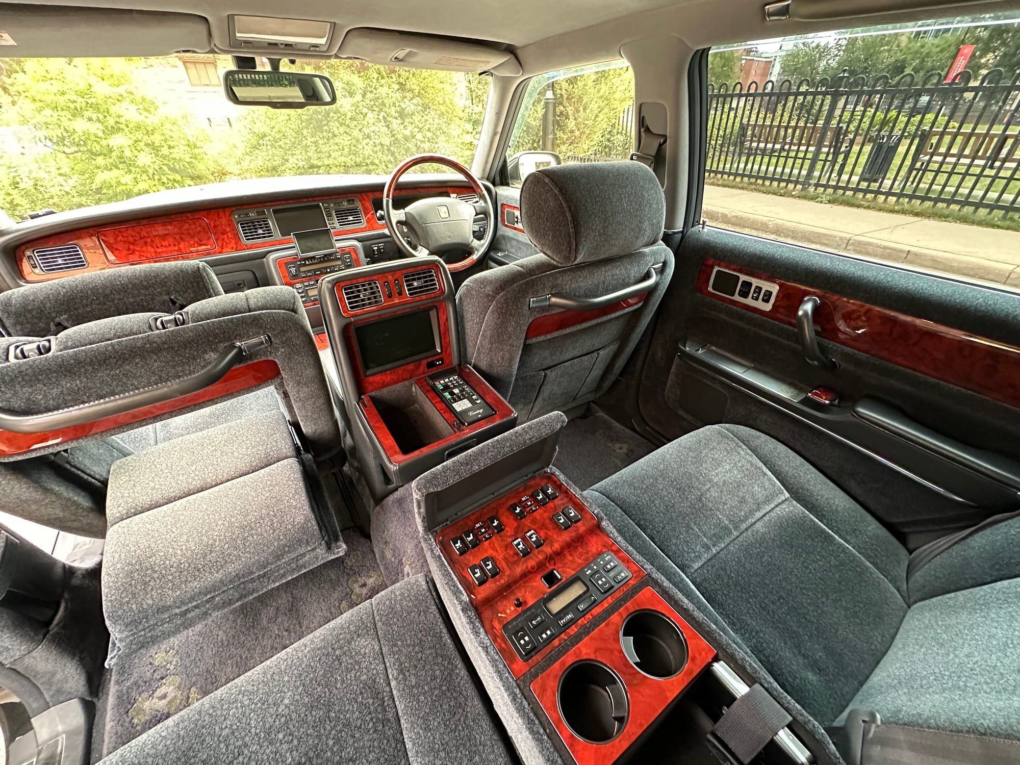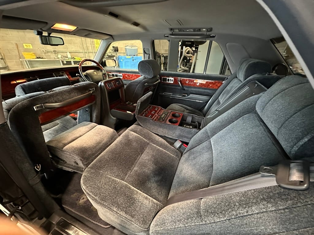 The wool jacquard interior remains in beautiful condition, and all electrical accesories function correctly. It has an aftermarket rear view camera, which is the only modification from stock. The remote control for the 'Dual EMV' screens and the Century branded Sony Walkman are present. There are no rips, tears, burns, stains or scratches on any of the interior trim pieces.