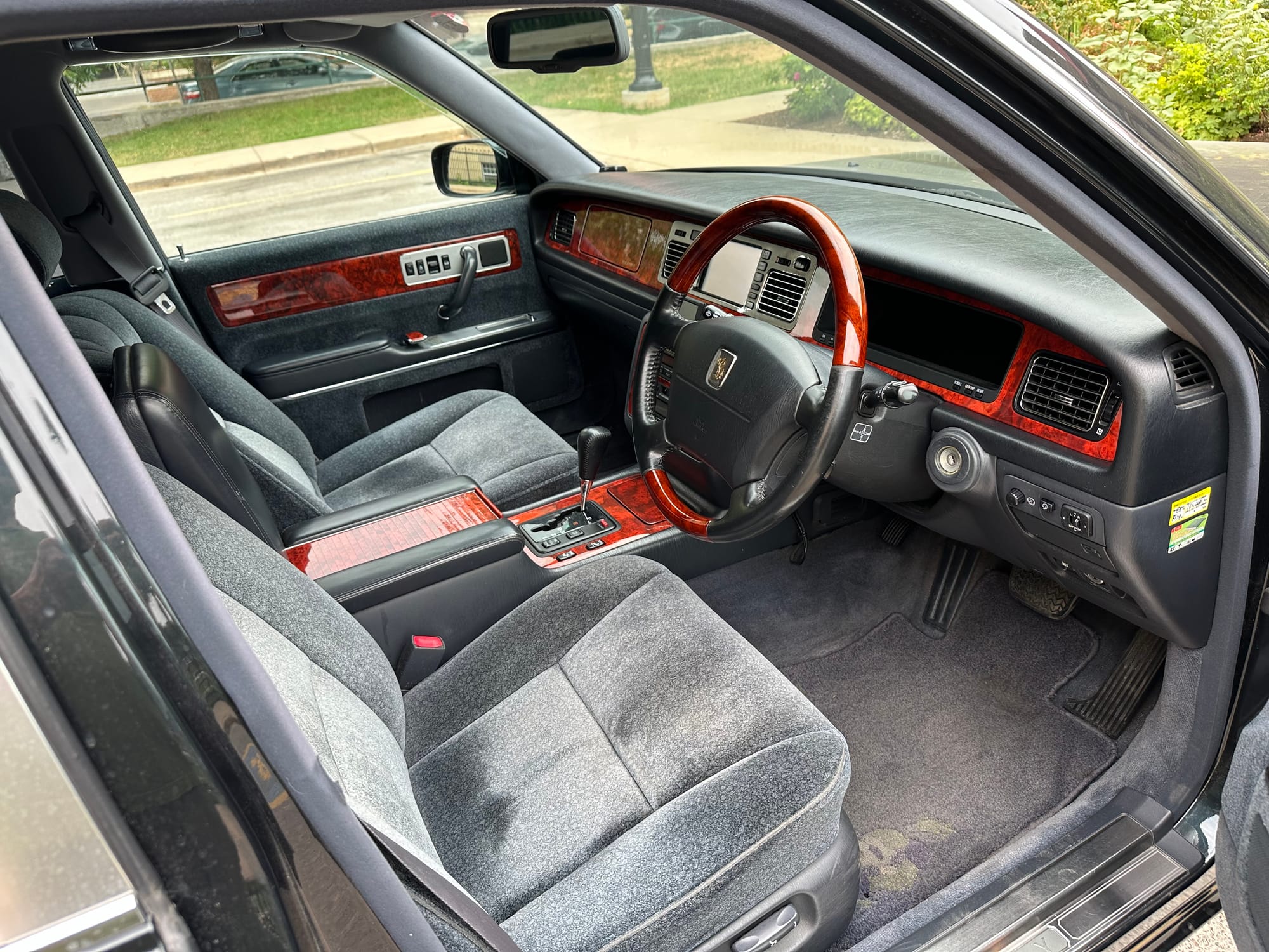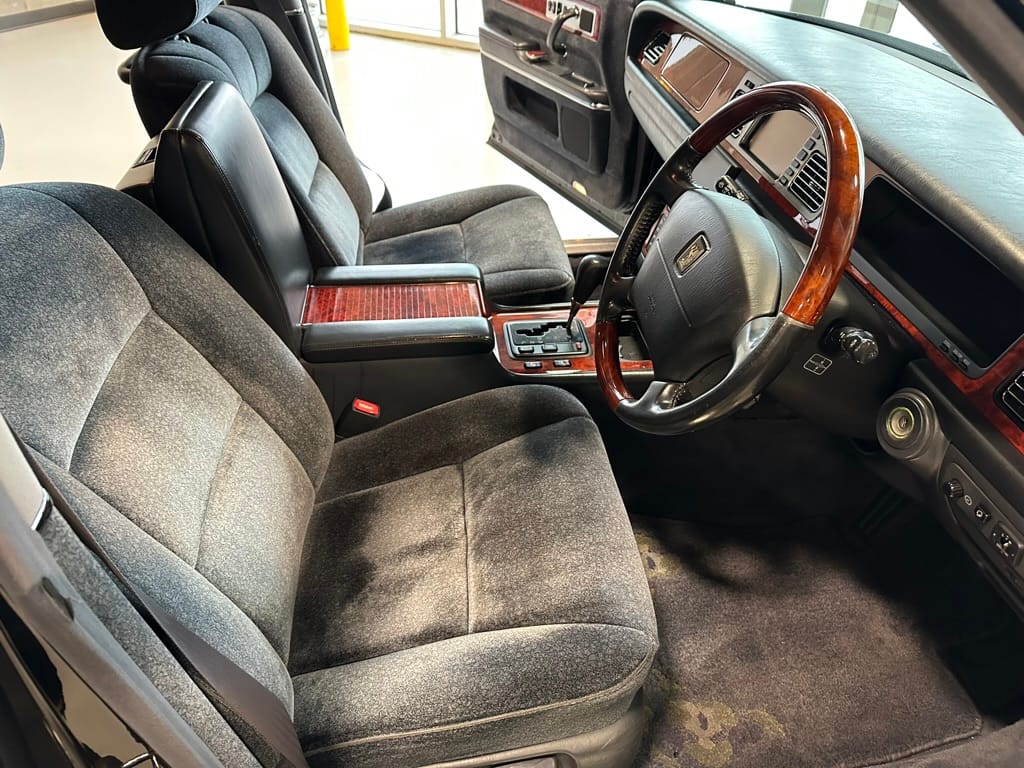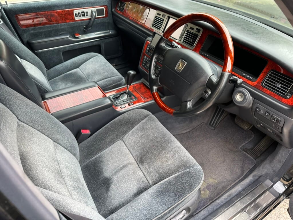 The paint colour, Daigo Wealthy Green Mica (6N9), is one of the rarest colours for a GZG50 Century, with only 343 examples produced - over half the production run of 9,357 was straight black, and another 2337 were dark blue. There were only five interiors options; three wool (Grey, Grey-Blue, and Orchid) and two leather (Grey, Orchid). The Daigo Gree/Blue-Grey is likely one of the rarest, and one of the nicest, combinations.