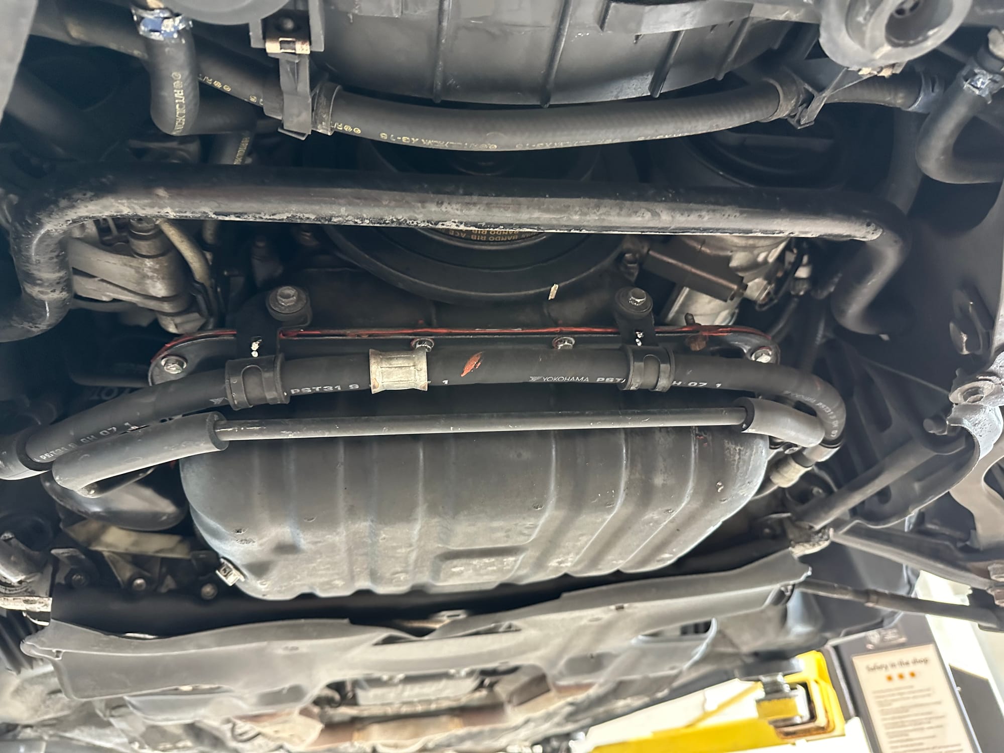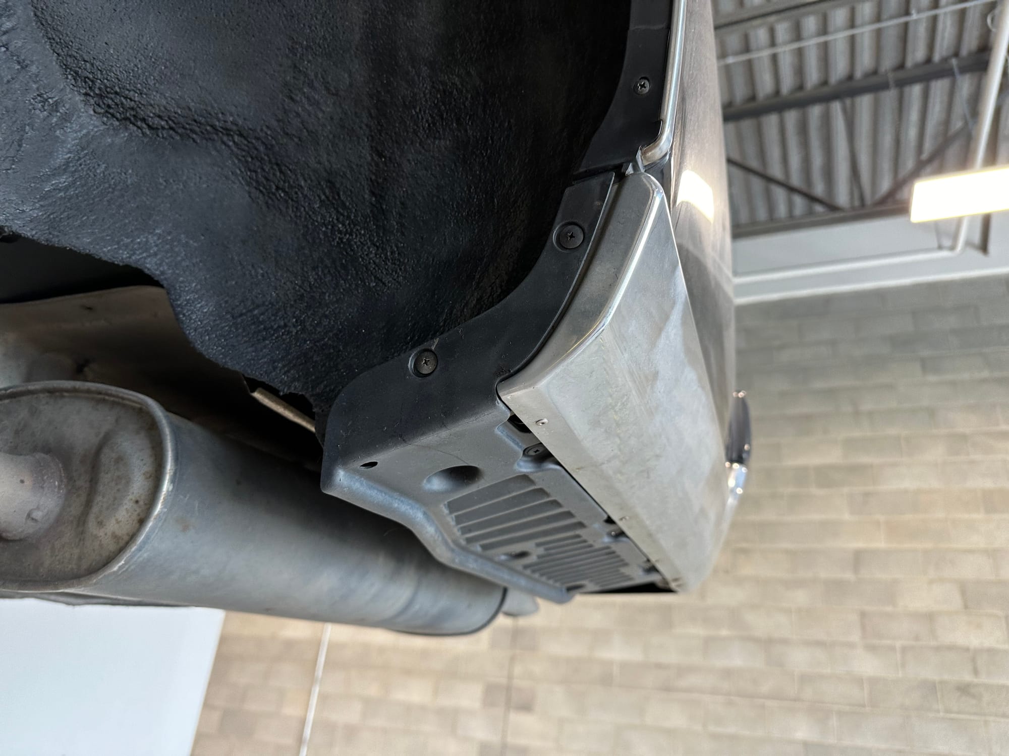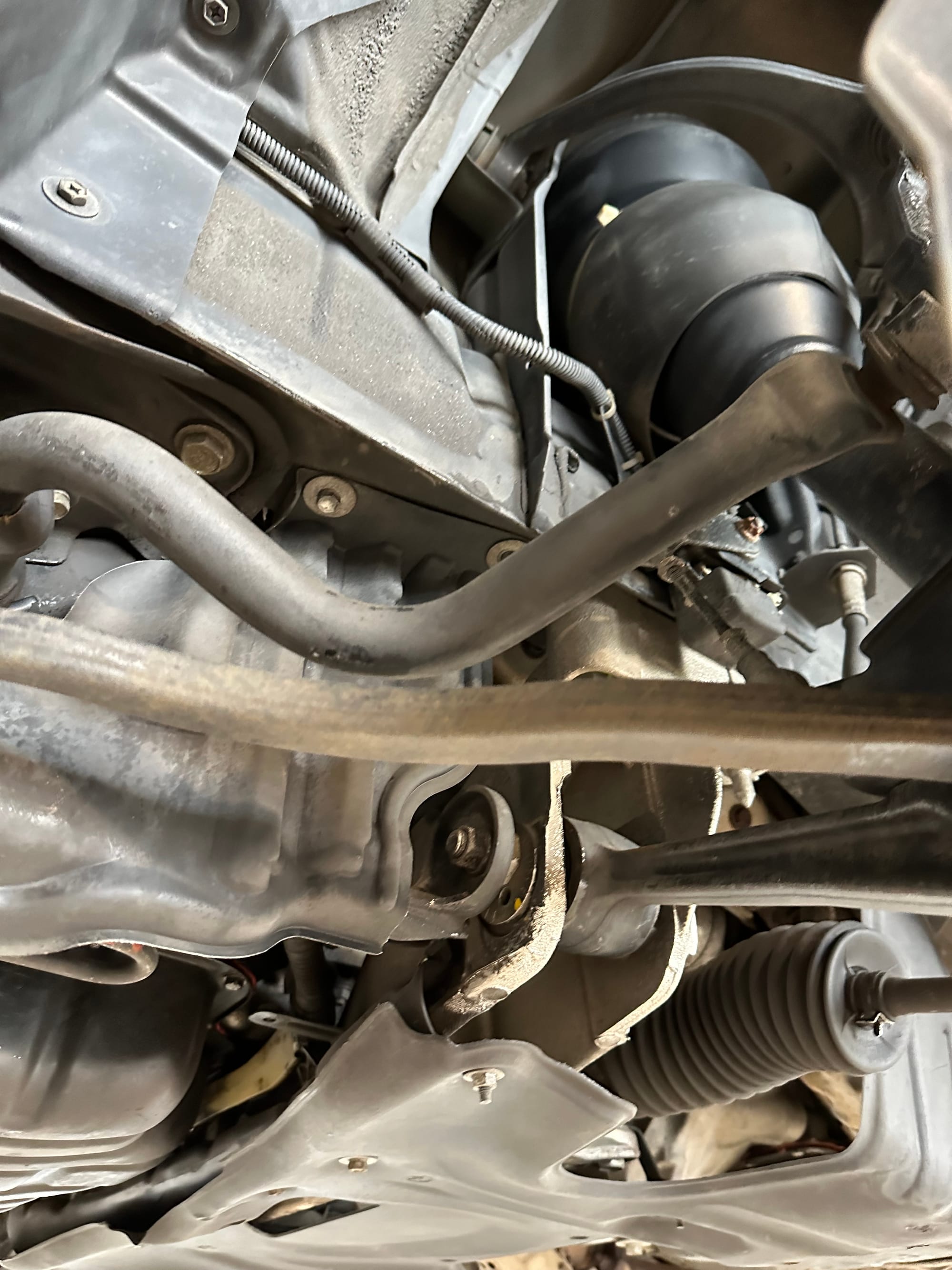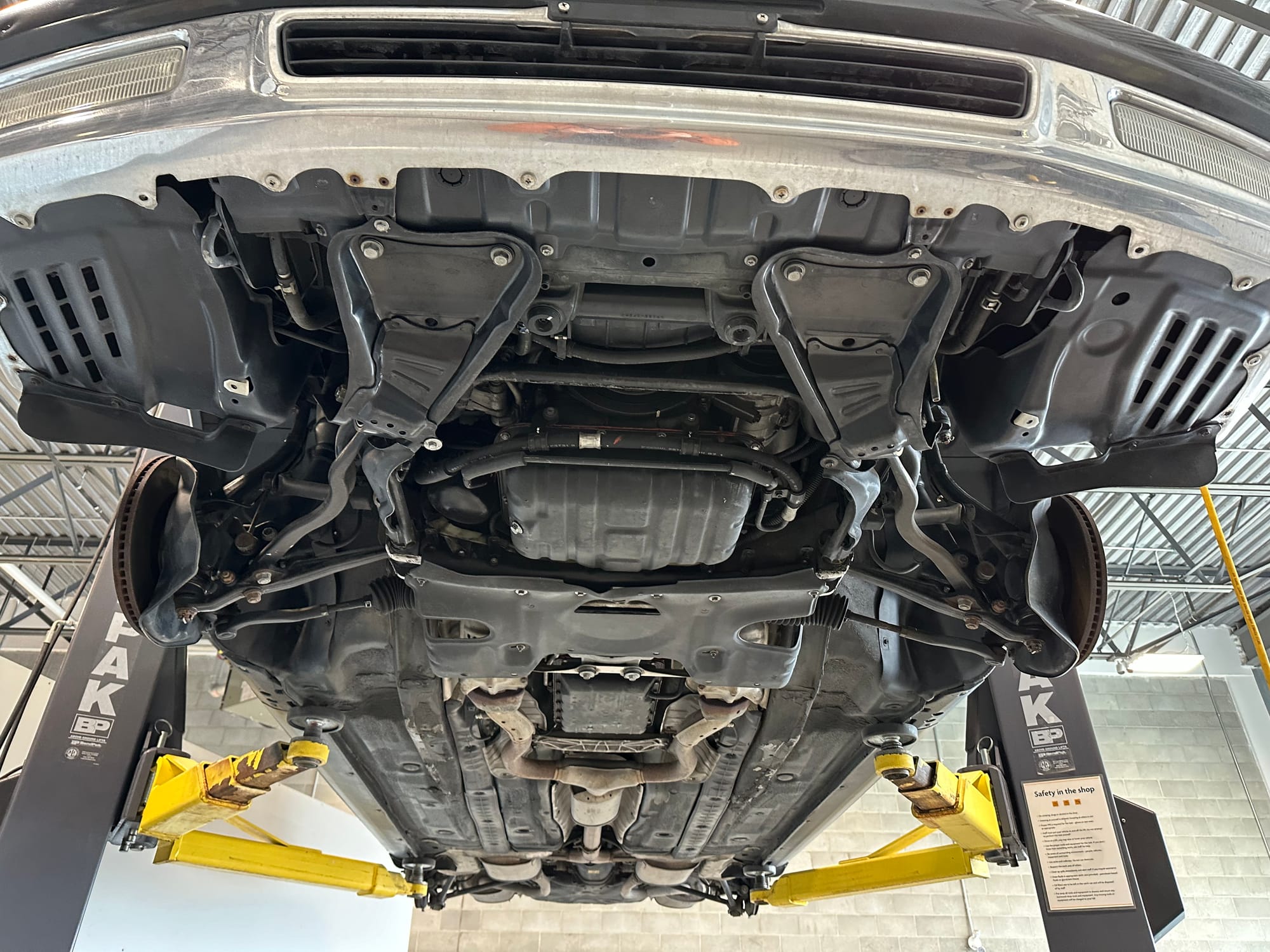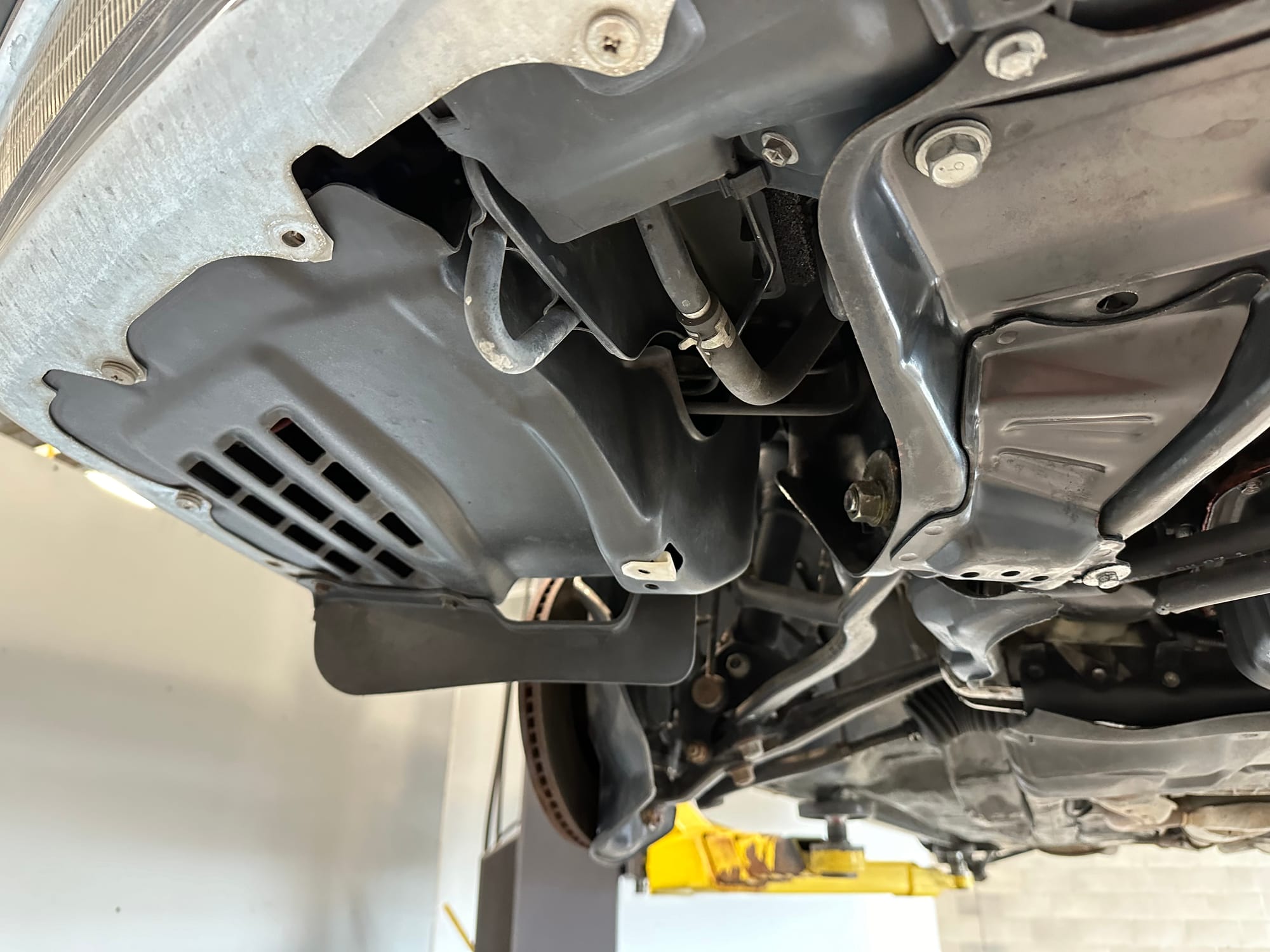 The undercarriage is very clean and corrosion free. The underbody panels, and their fasteners are all undamaged and intact. The vehicle has never been driven on salted roads.