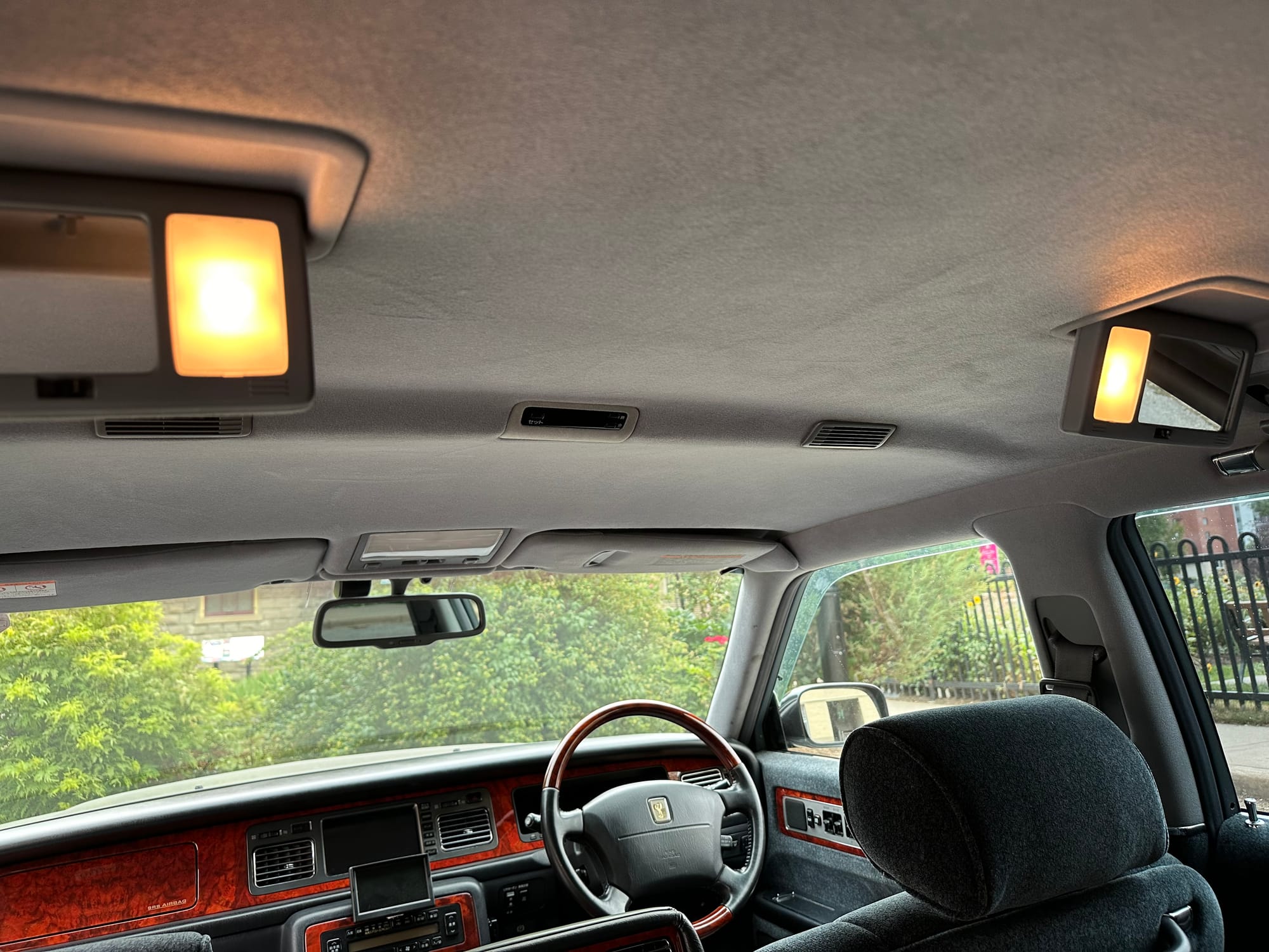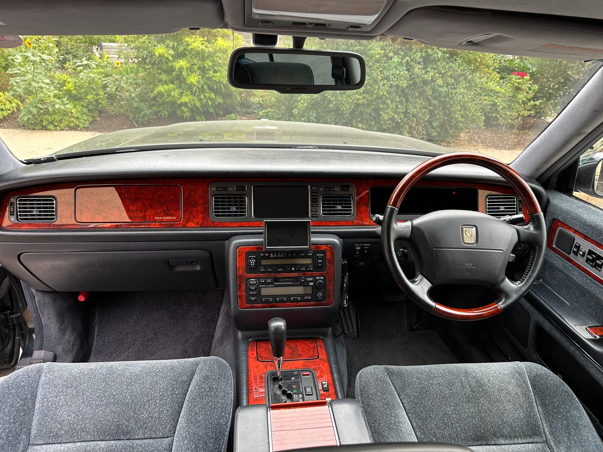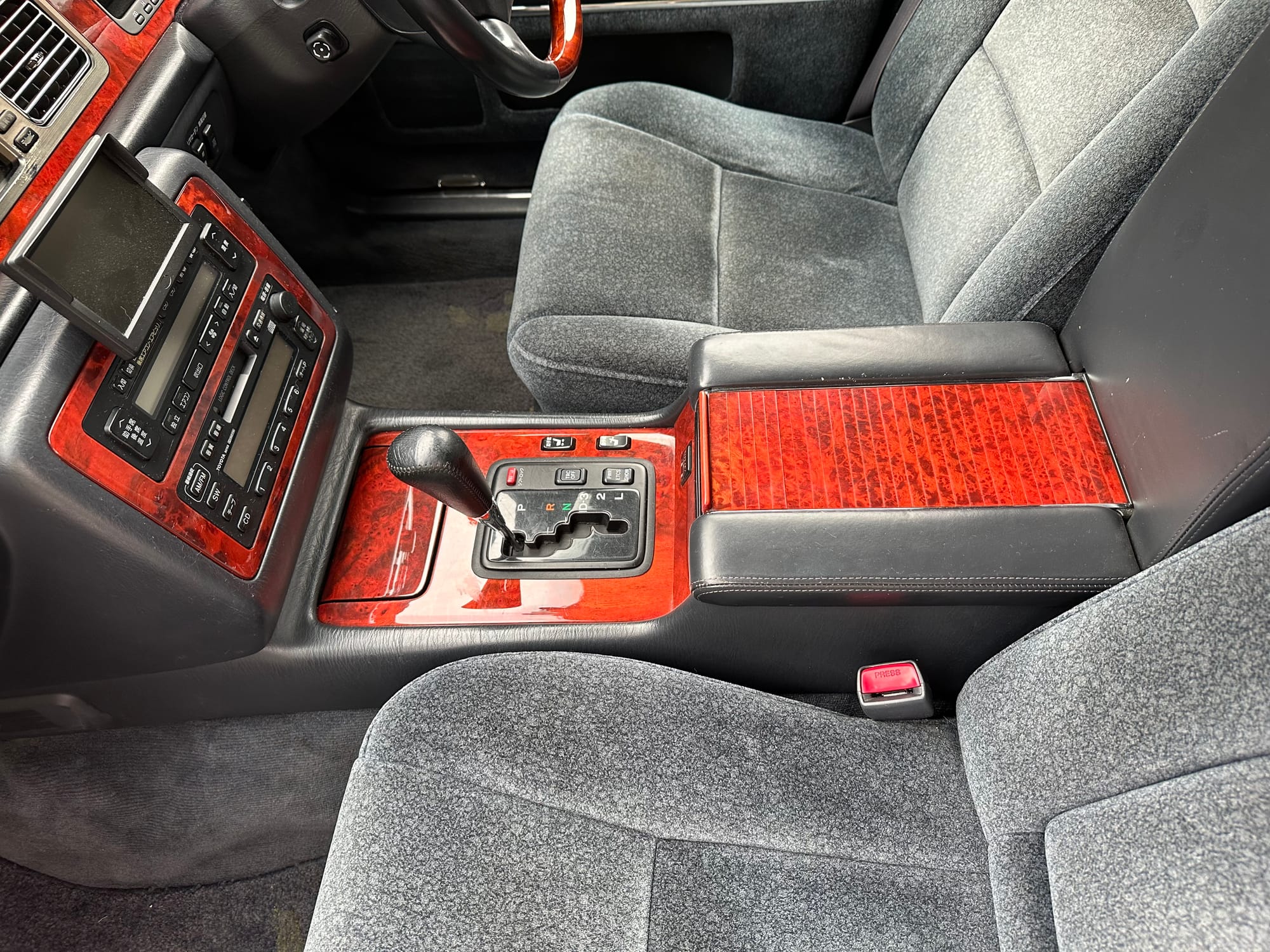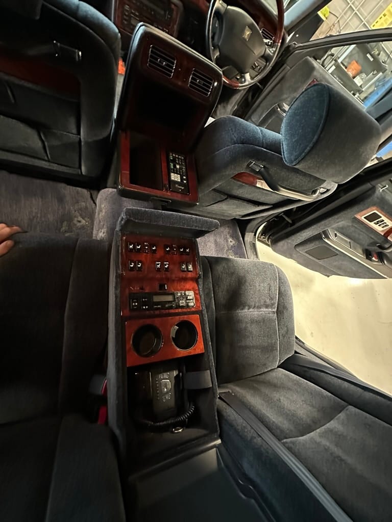 There are buttons everywhere. The rear passengers can control the LHS front seat from the rear central panel. Also there are controls for the rear auxilliary A/C and climate control. There is a button for a dictaphone and a Century branded Sony Walkman lives in the center console. A remote control operates one of the 'Dual EMV' screens which can display audio or navigation, and also play the optional VHS machine. The 6-CD cartridge lives in the front glove box, in front of the 'assistant's' seat, which was designed to that the occupant could easily give attention to the rear occupants. There is a sophisticated air filtration system with a electronic negative ion filter.