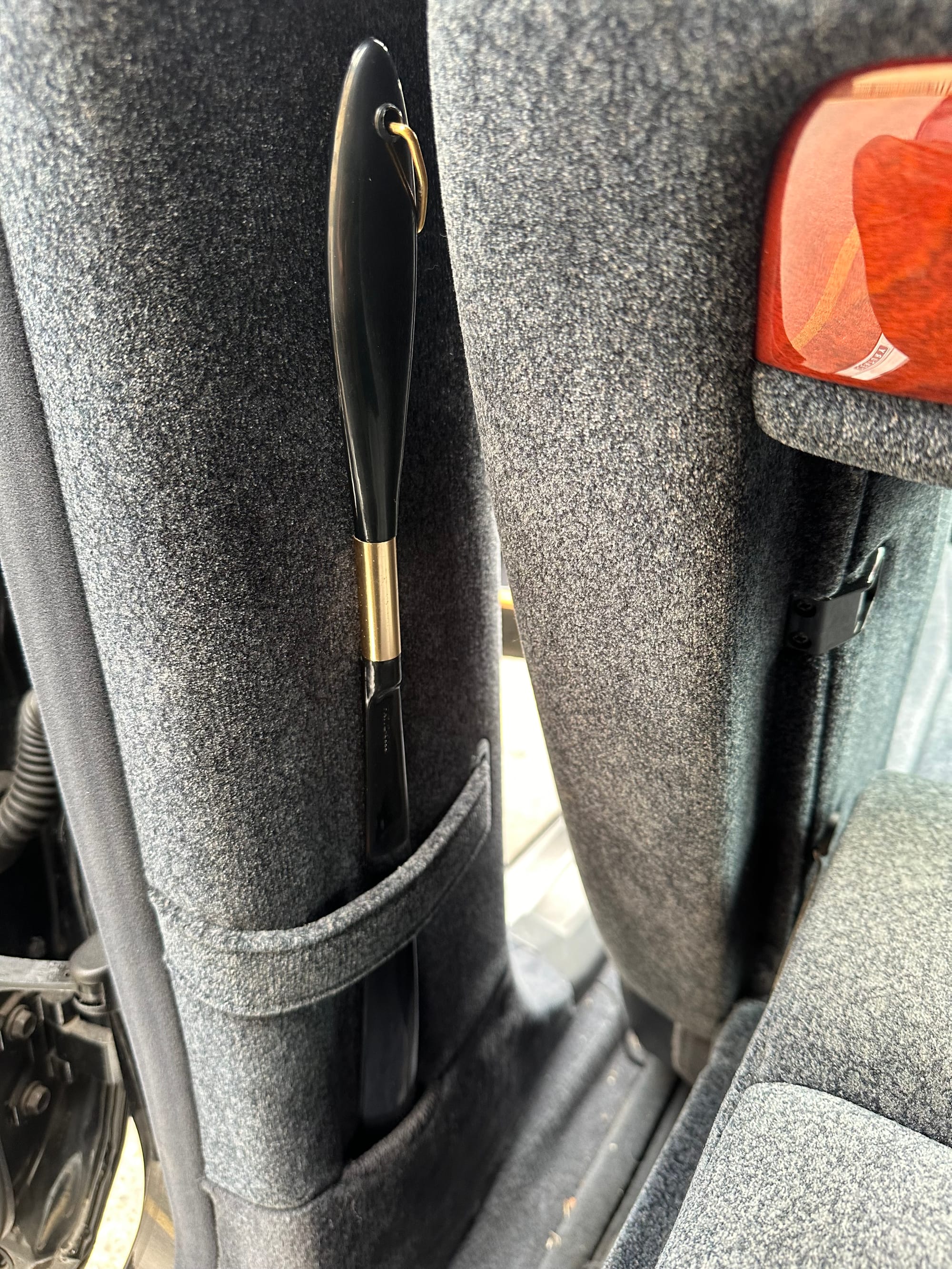 The rear seating area is lavishly equipped as you would expect. With the push of a button, the rear seats slide out into lounge chairs, the headrests rotate and move up and down electrically, and a manual pass through in the passenger seat back allows the rear lhs passenger to stick his legs through to the front, making something of a bed. All four seats are heated and the rears have a massage function. There are dimmer switches on the overhead lights, separate vanity mirrors and a bank of ventilation vents built into the headliner. A long shoe horn lives in the base of the B piller. An Ostrich feather duster lives in the trunk.